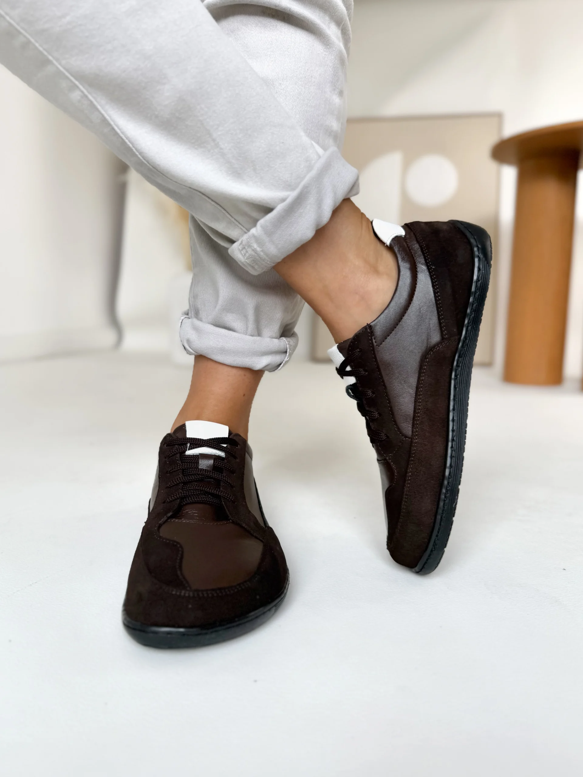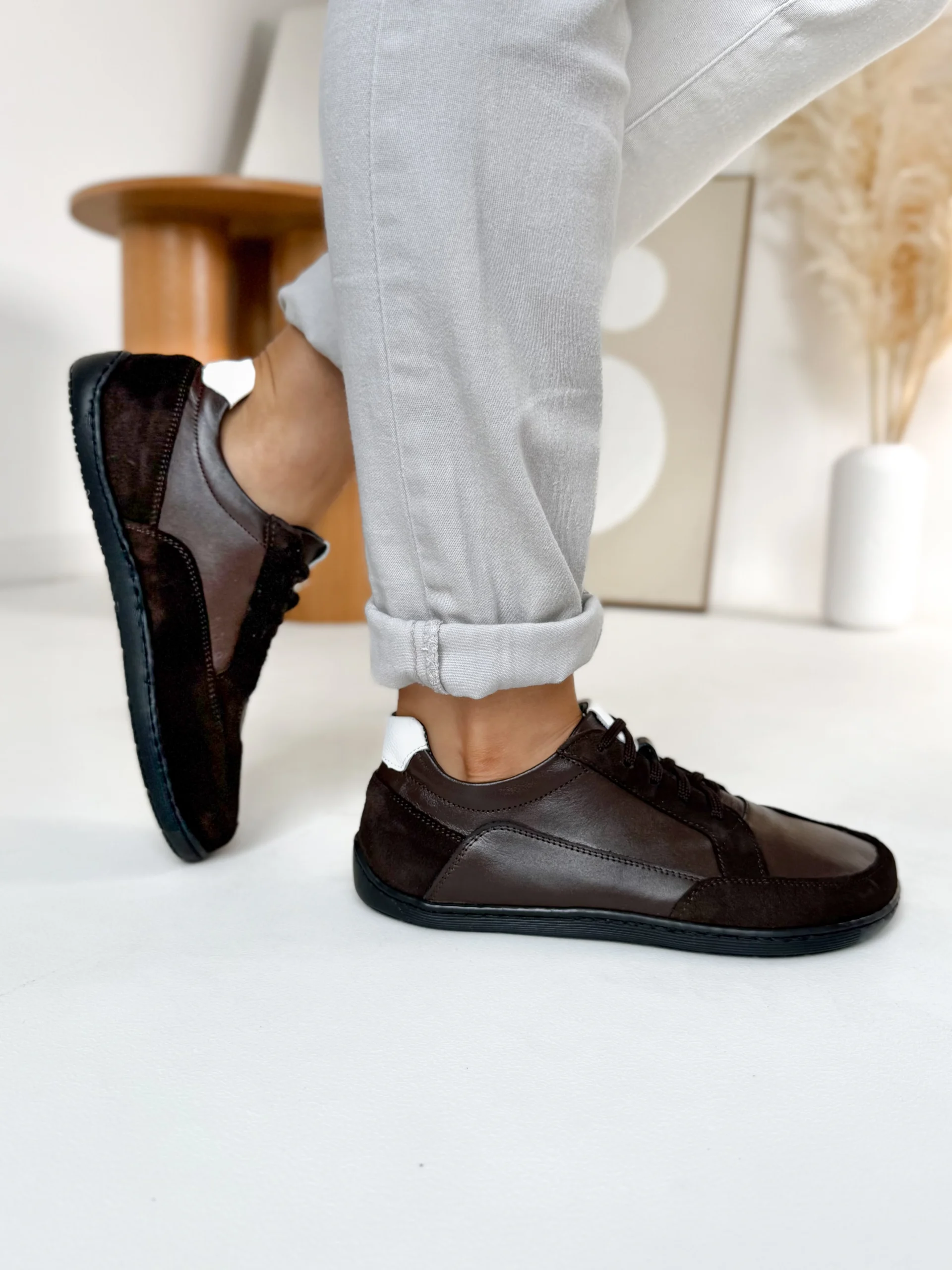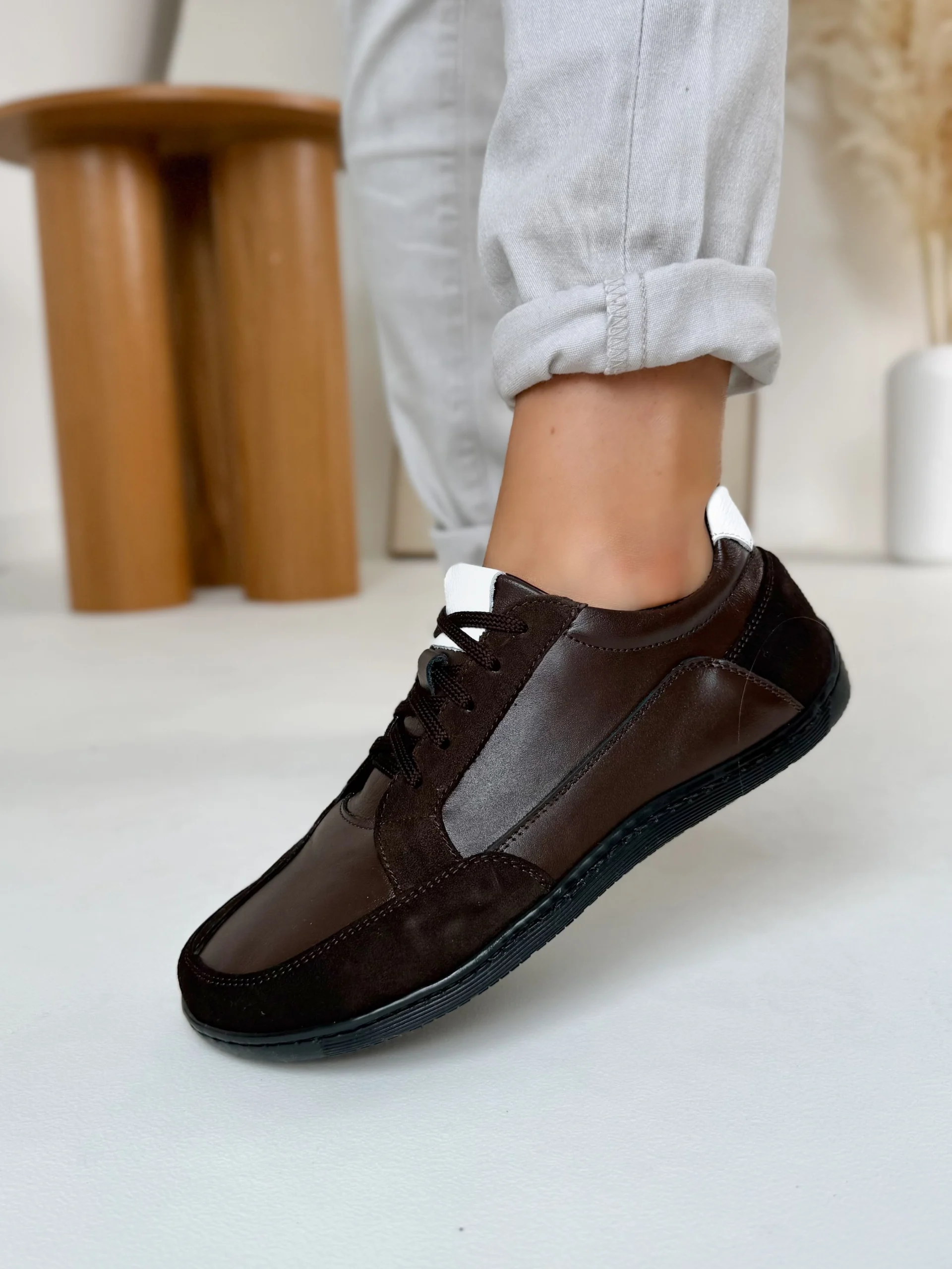 Skórzane adidasy barefoot LULA 137 – brązowe, czekoladowe, polska produkcja, jakość premium