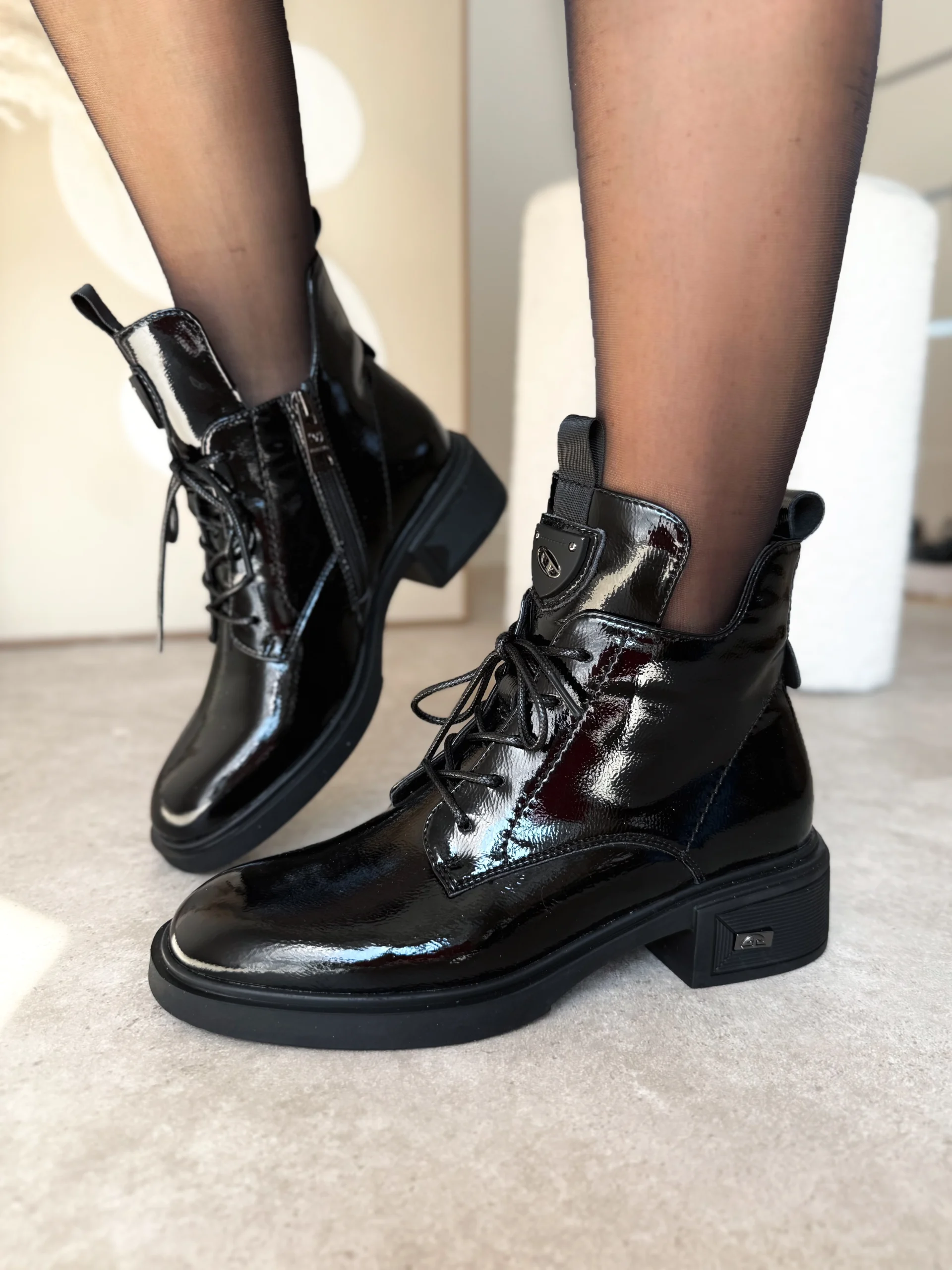 Botki lakierowane czarne LULA 110 – botki ze skóry naturalnej