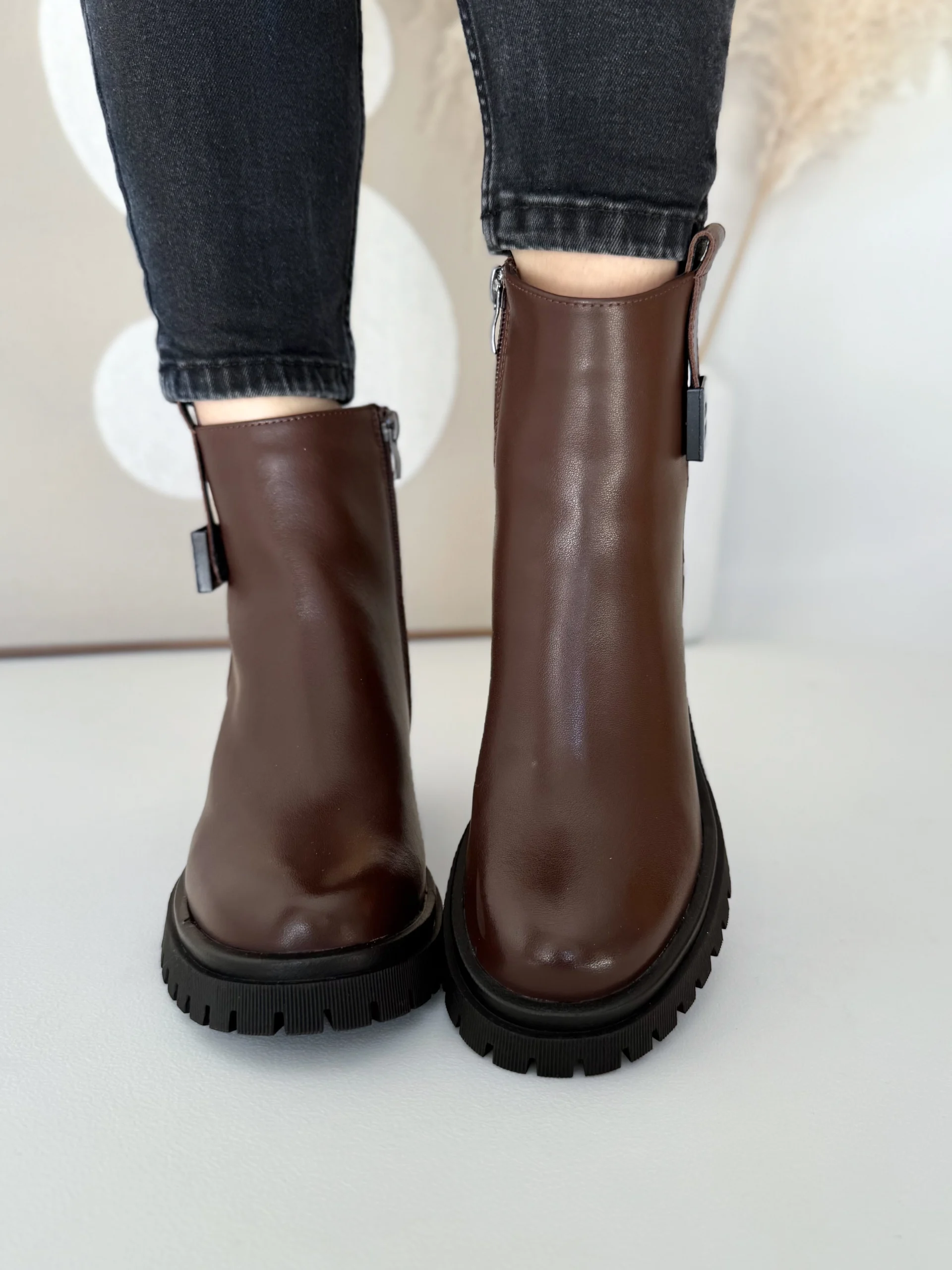 Brązowe skórzane botki damskie LULA 159 – modne i wygodne buty na jesień i zimę