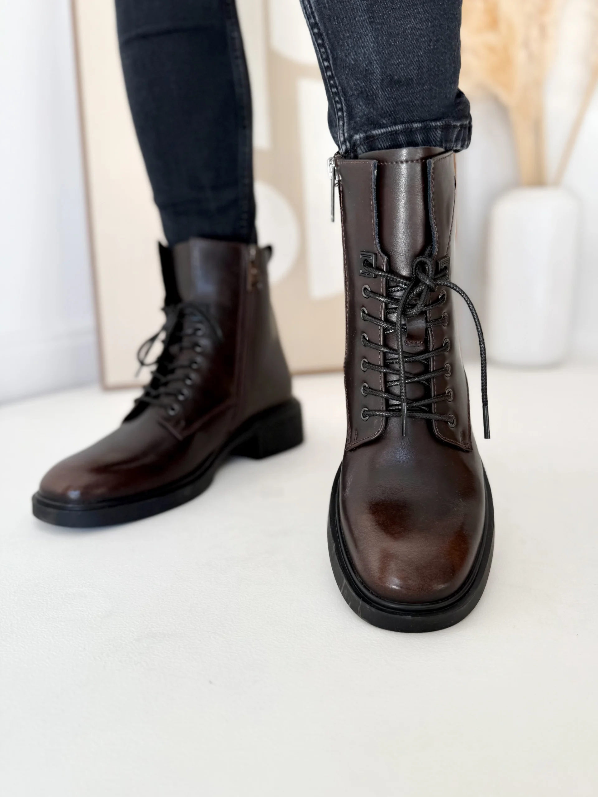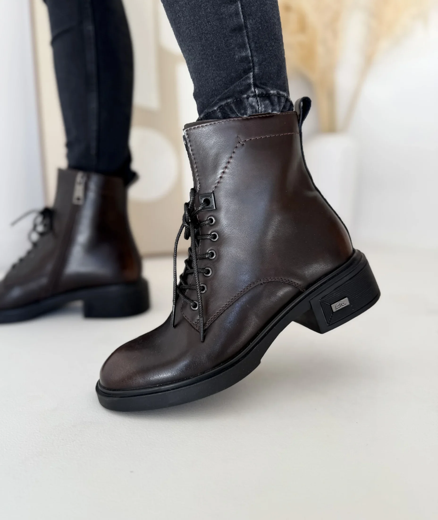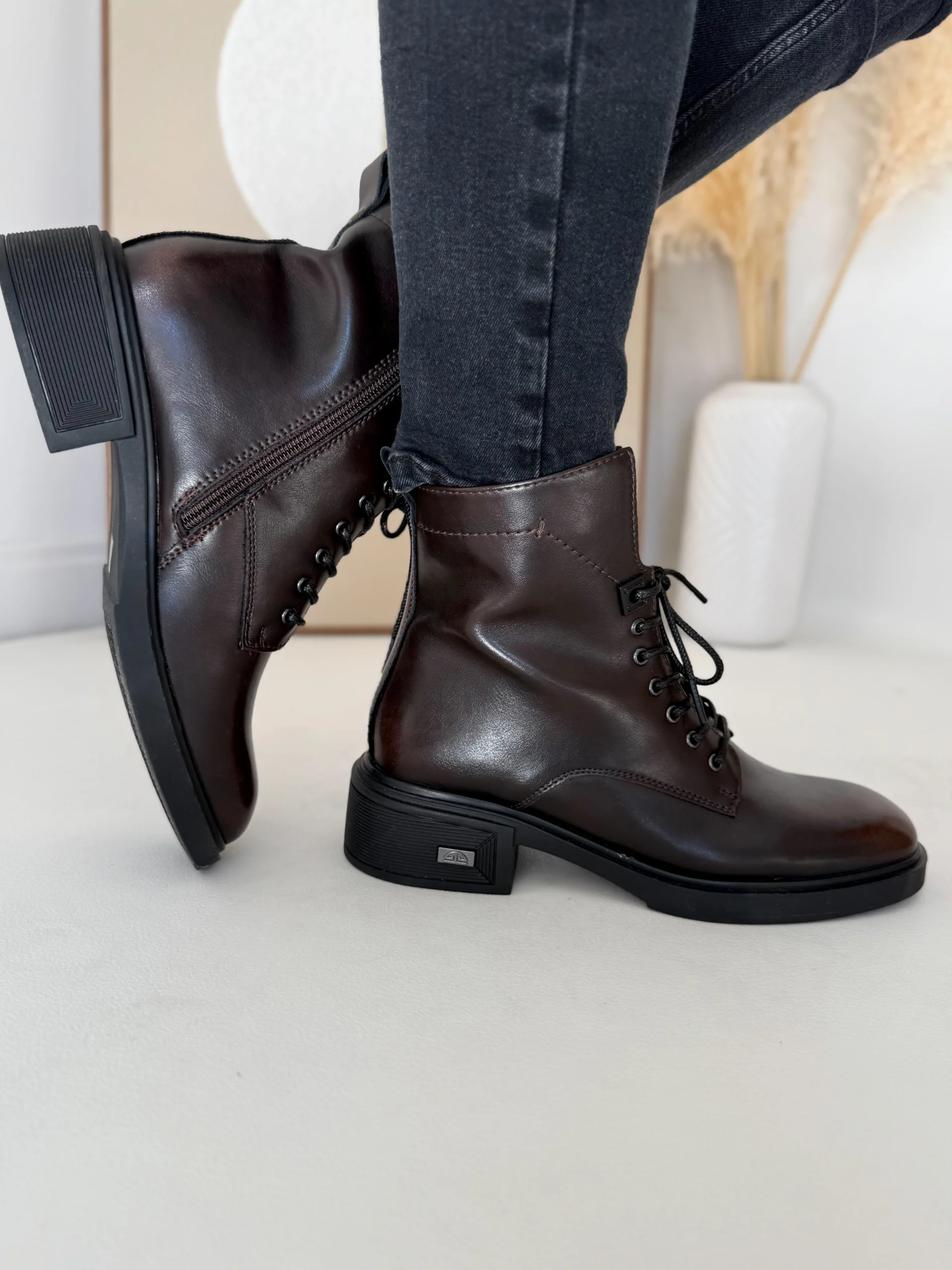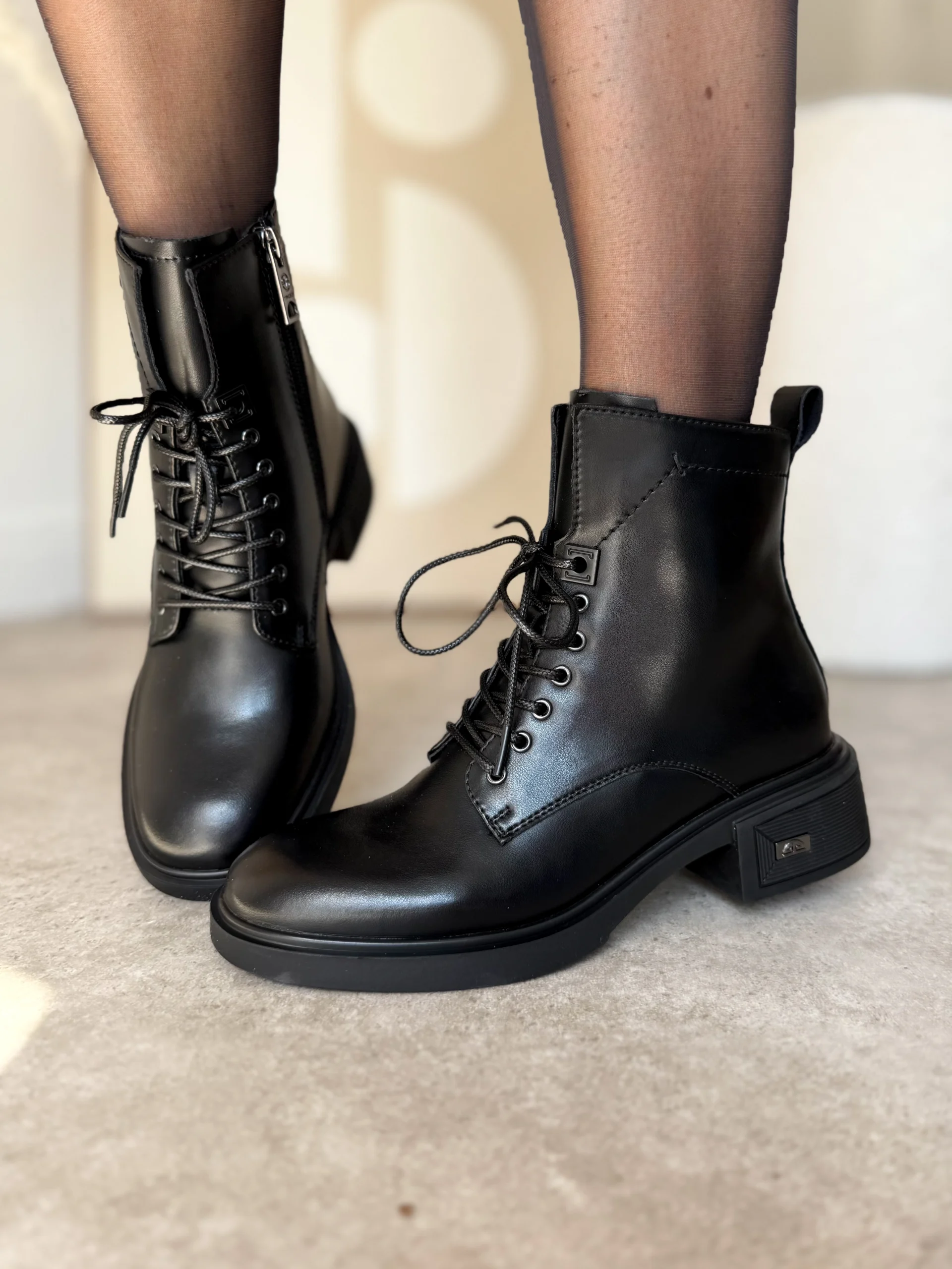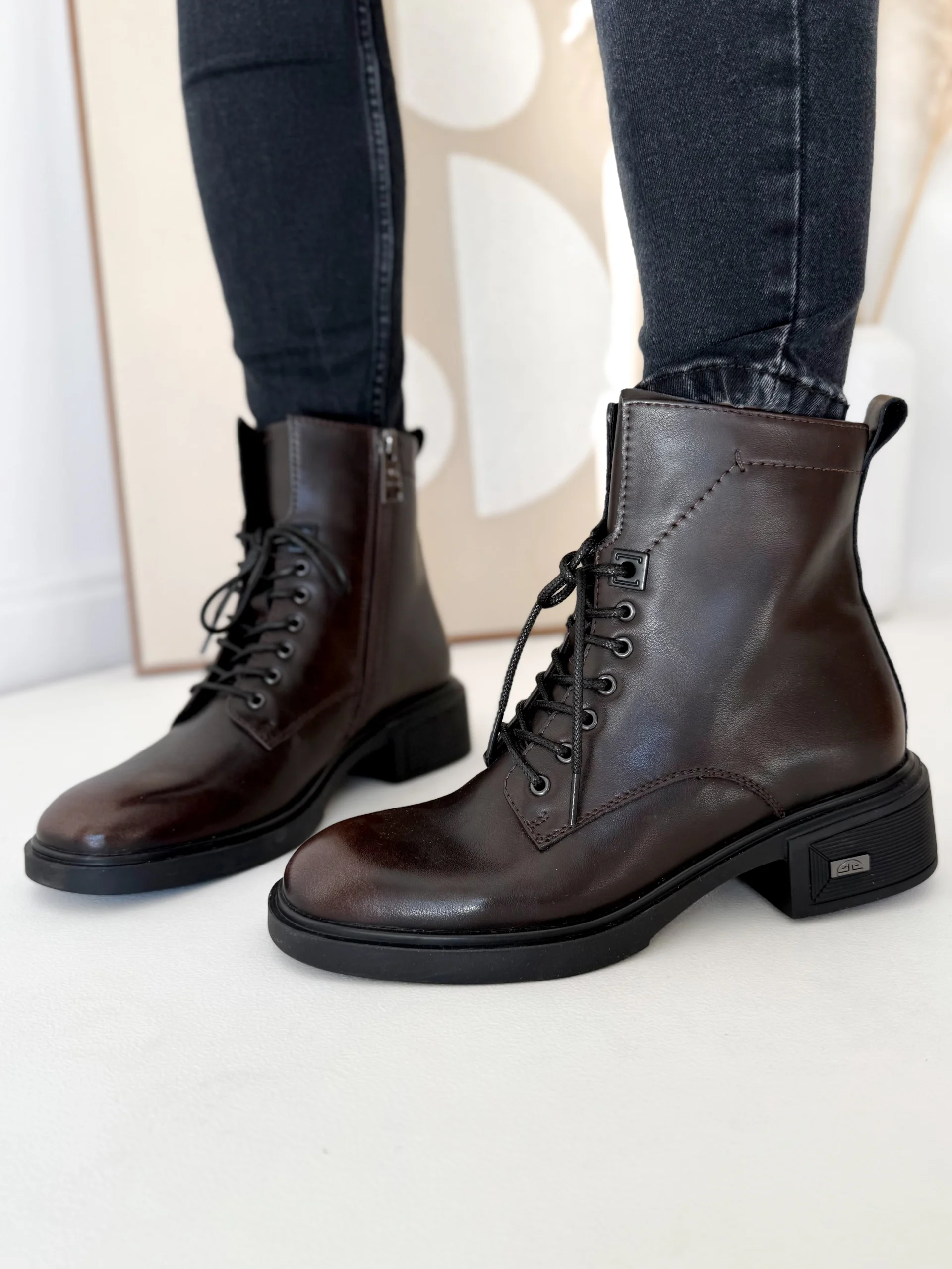 Model LULA 109 wyróżnia się praktycznym połączeniem sznurowania i zamka. Sznurowadła z przodu pozwalają dopasować botki do indywidualnego kształtu stopy i łydki. Z kolei zamek błyskawiczny z boku umożliwia szybkie zakładanie i zdejmowanie butów. W rezultacie codzienne użytkowanie staje się łatwiejsze, a sam design zachowuje nowoczesny charakter.