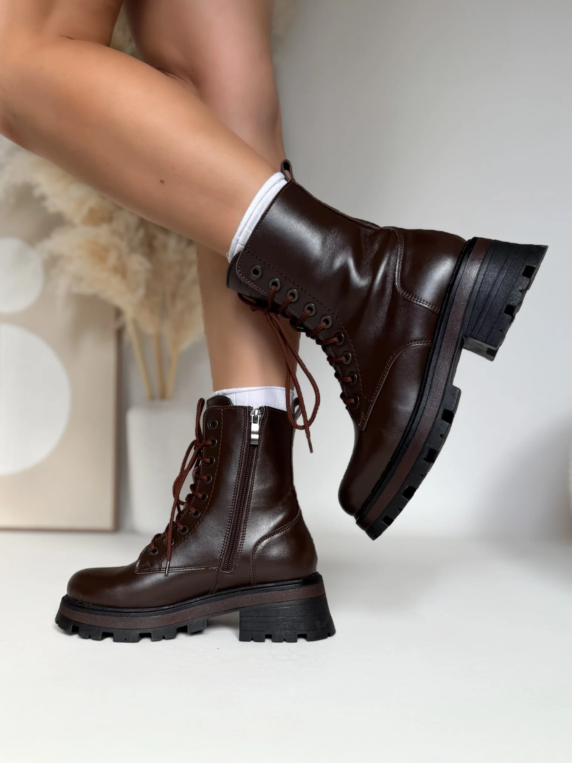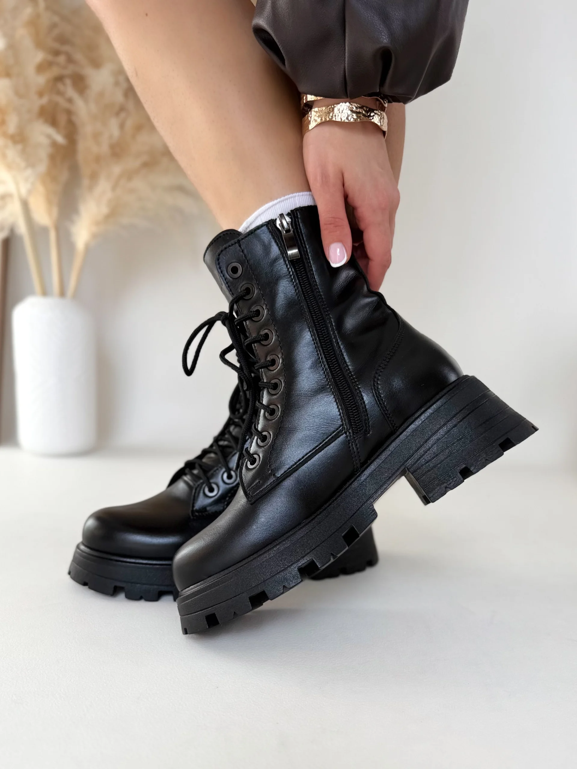 Buty posiadają solidną, antypoślizgową podeszwę o wysokości 3–6 cm, która zapewnia stabilność i bezpieczeństwo podczas chodzenia. Zamek błyskawiczny po wewnętrznej stronie ułatwia zakładanie, natomiast wiązanie z przodu pozwala dopasować szerokość cholewki. Dzięki temu trapery są nie tylko stylowe, ale też niezwykle wygodne.