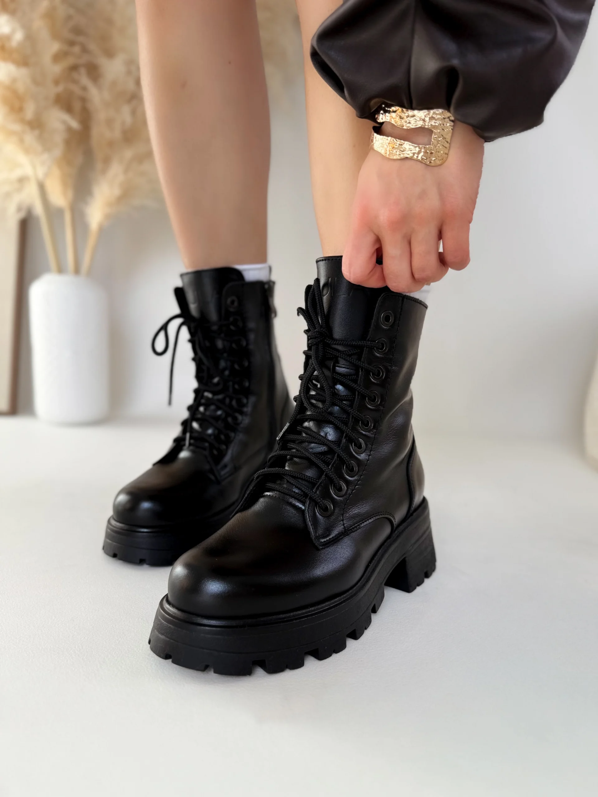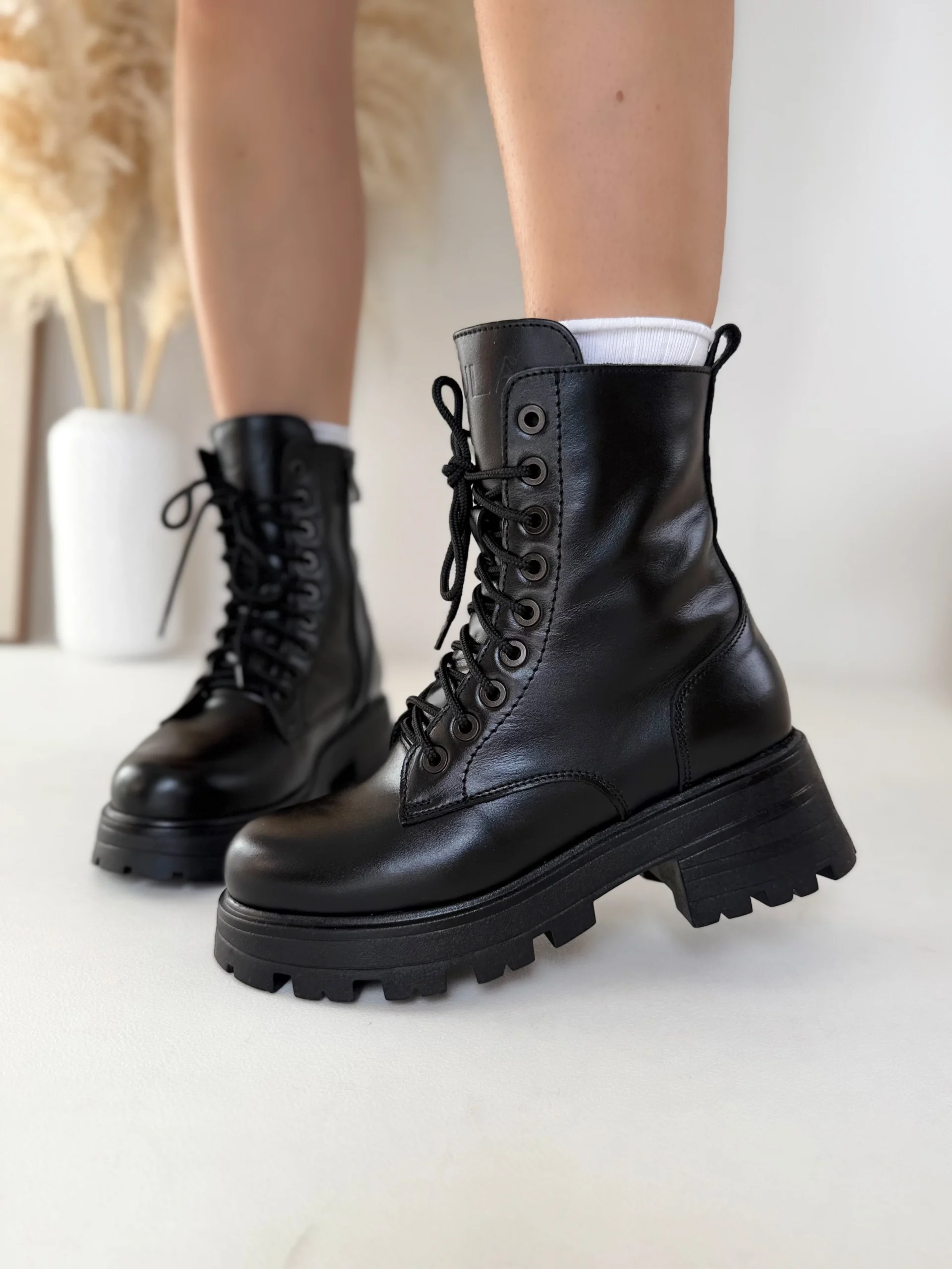 Czarne trapery skórzane to wybór, który nigdy nie zawodzi. Pasują do wszystkiego, dlatego stanowią niezastąpiony element jesienno-zimowej garderoby. Gruba podeszwa i lekko błyszcząca skóra nadają im nowoczesnego charakteru, a jednocześnie gwarantują trwałość i odporność na codzienne użytkowanie.
