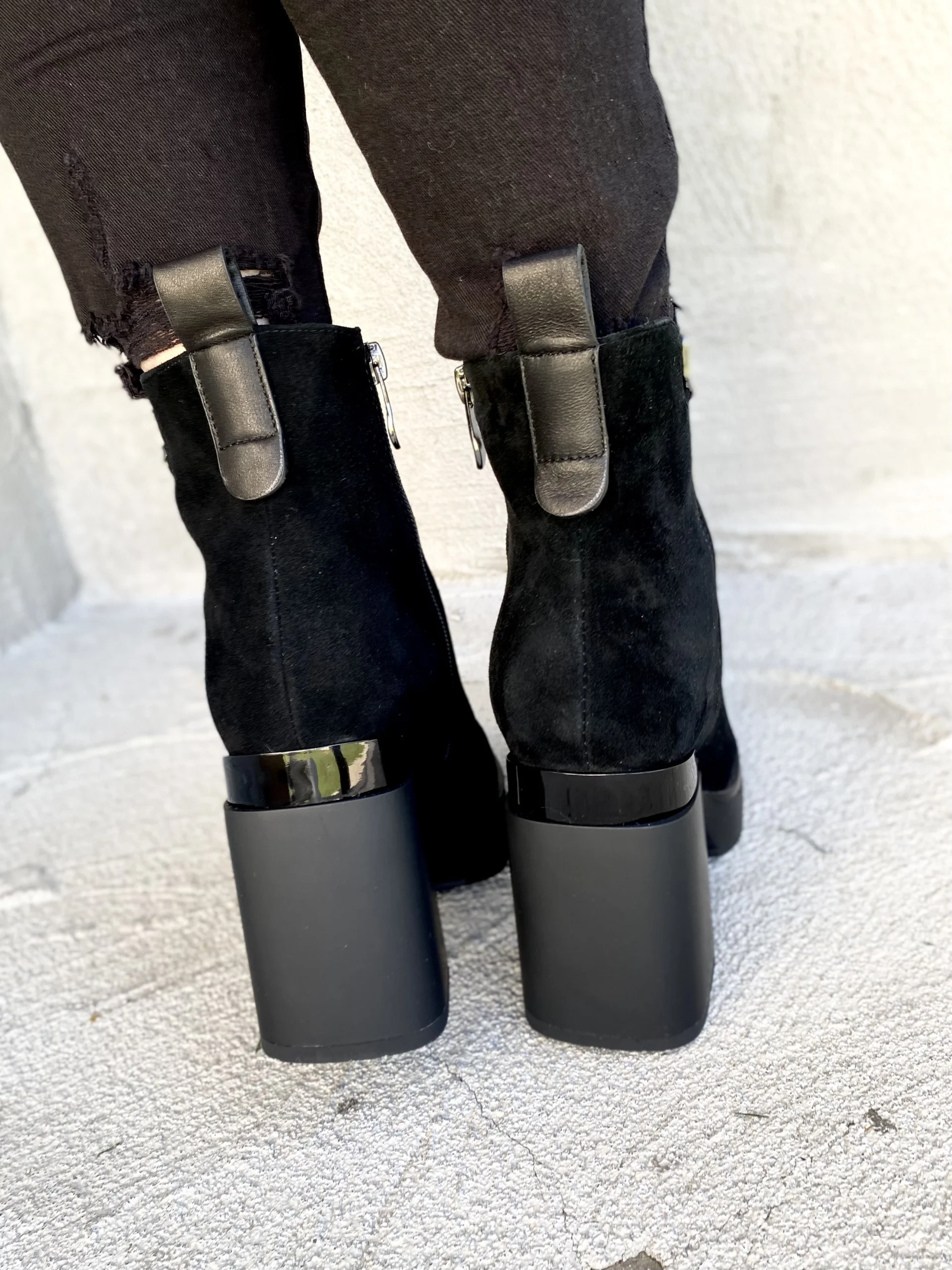 Wykonany z wysokiej jakości zamszowej skóry naturalnej w kolorze klasycznej czerni będzie pasował do wielu Twoich formalnych i casualowych stylizacji. Świetnie prezentuje się na nodze do spodni i spódnicy.
