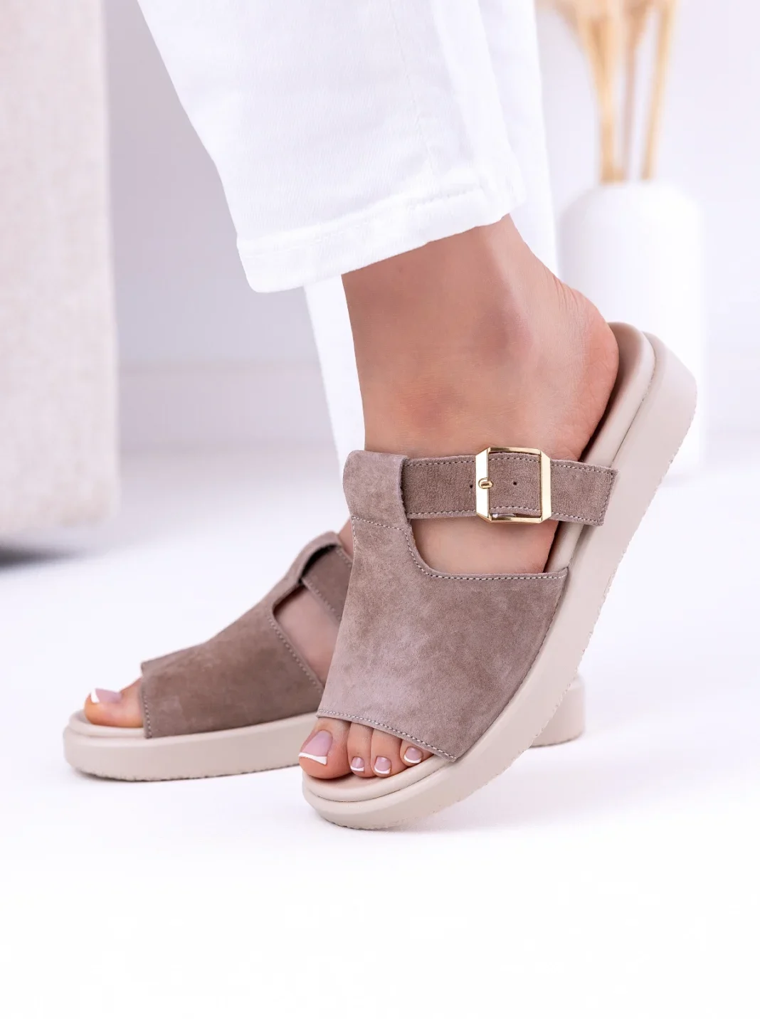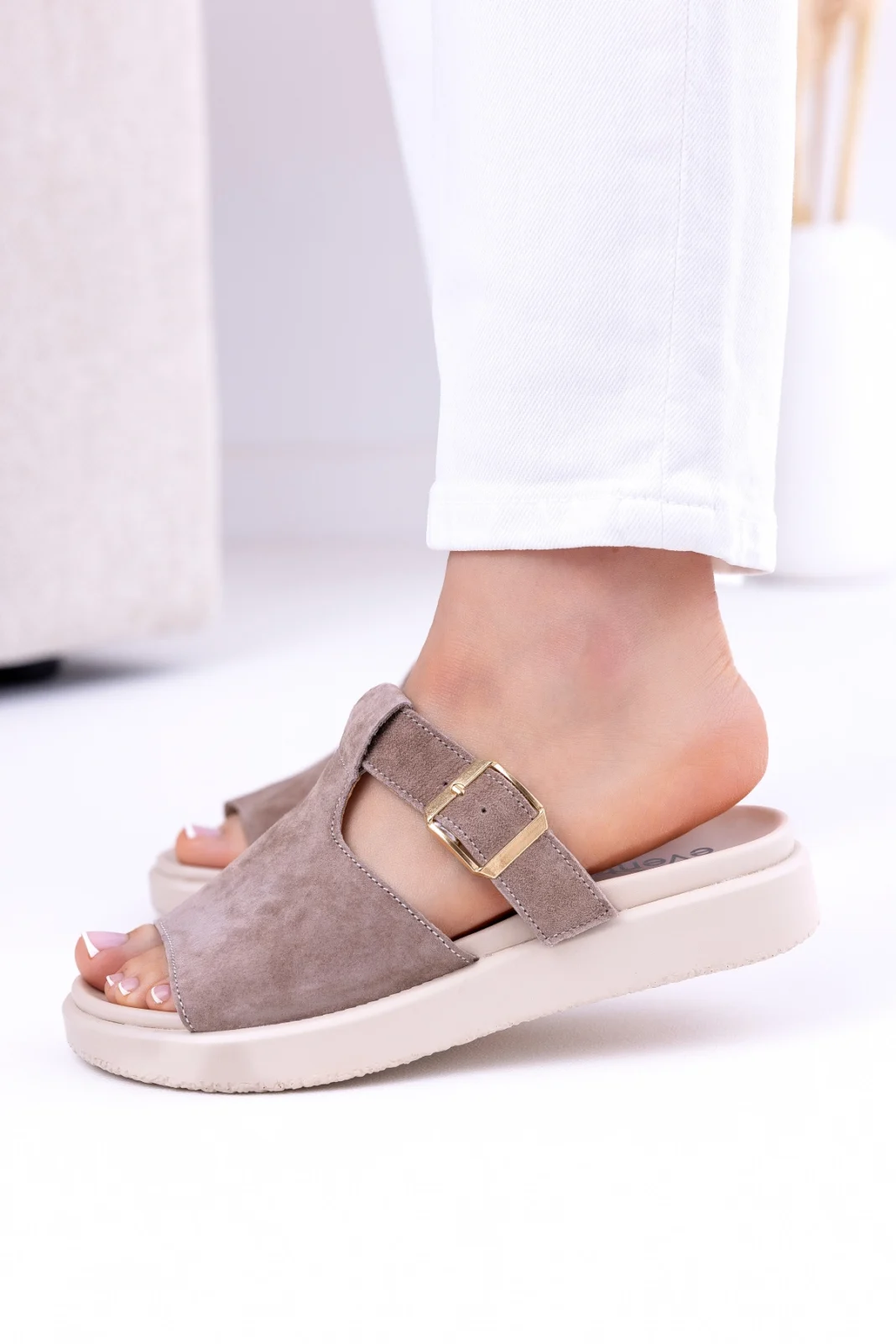 Projektanci wykorzystali wysokiej jakości naturalną skórę zamszową, która nadaje klapkom elegancki wygląd i miękko dopasowuje się do stopy. Wkładka z eko skóry zwiększa komfort i ułatwia codzienne użytkowanie. Jeśli szukasz połączenia trwałości i stylu, skórzane klapki damskie będą doskonałym wyborem.