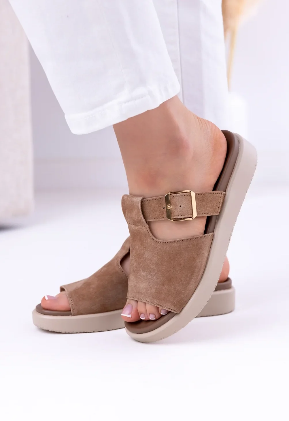 Odcień fango świetnie wpisuje się w aktualne trendy i pasuje do wielu stylizacji. Bez problemu zestawisz te skórzane klapki damskie z jasnymi spodniami, sukienką czy casualowym outfitem. Jeśli preferujesz cieplejsze tonacje, możesz wybrać również wersję w kolorze camel.