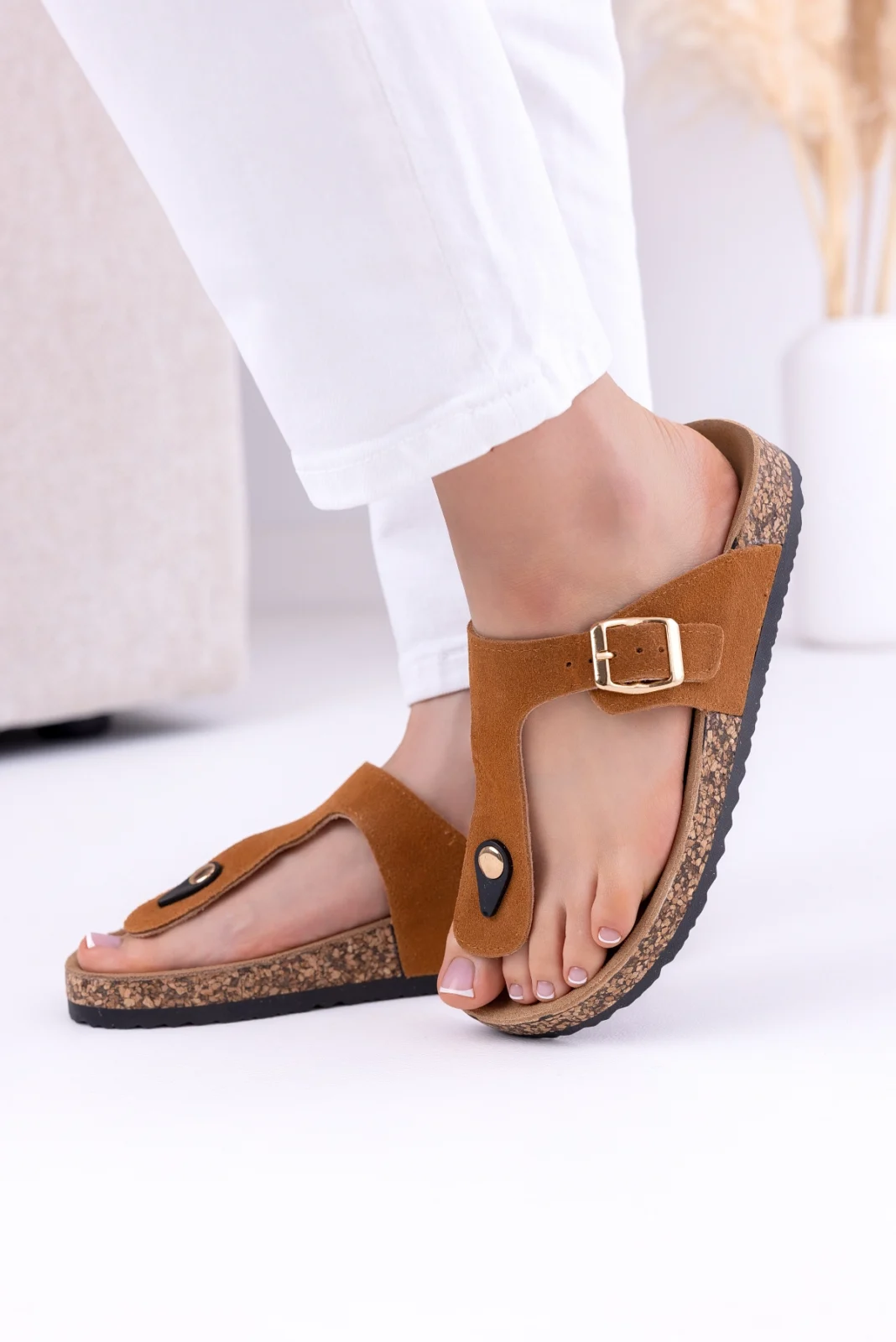 Wkładka ze skóry naturalnej zapewnia wygodę podczas chodzenia i dobrze dopasowuje się do stopy. Dzięki temu możesz nosić klapki przez wiele godzin bez uczucia zmęczenia.