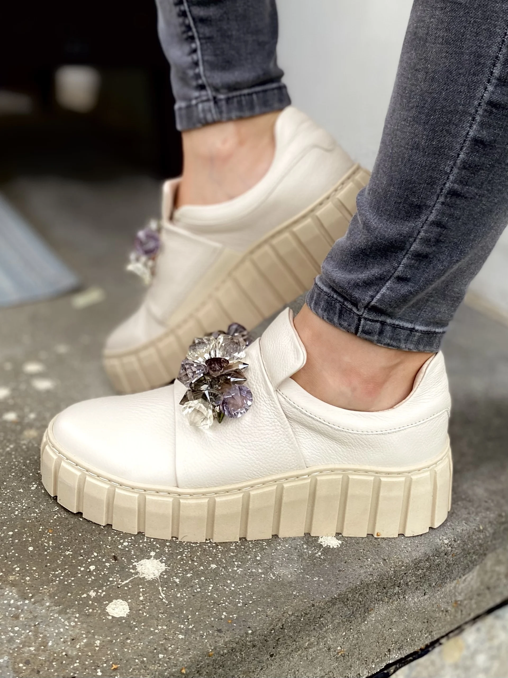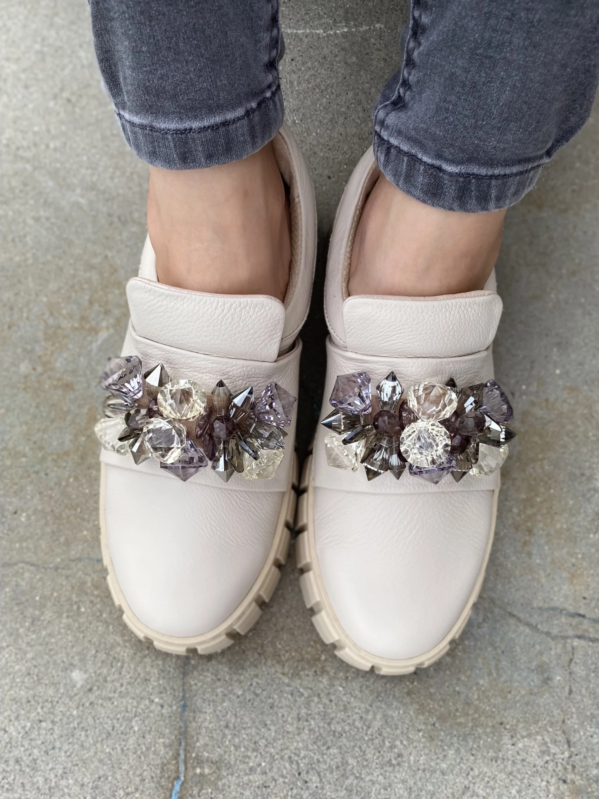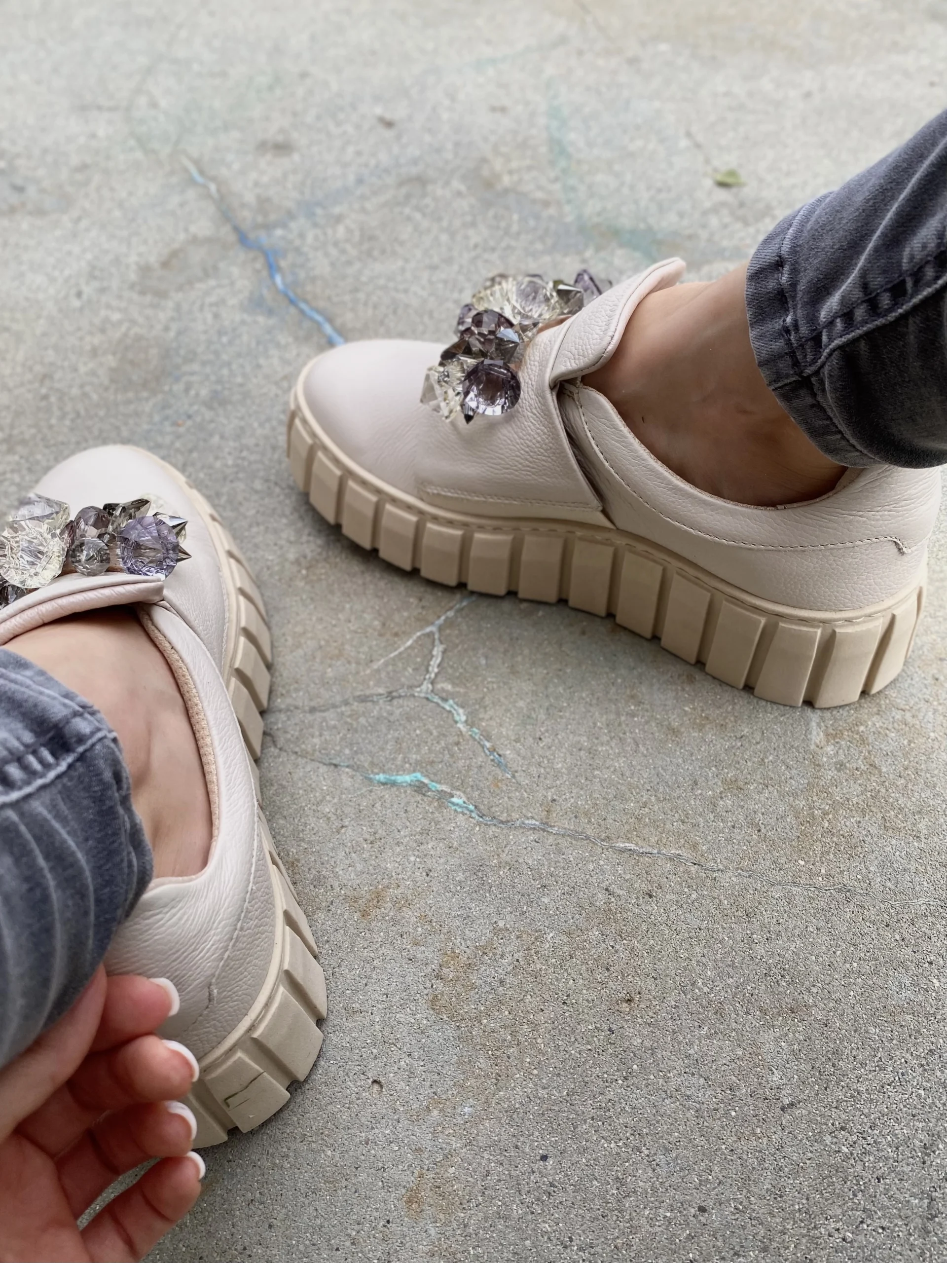 Model LUA 07 przepiękne trampki slip’ony z ozdobą w kolorze modnego beige
