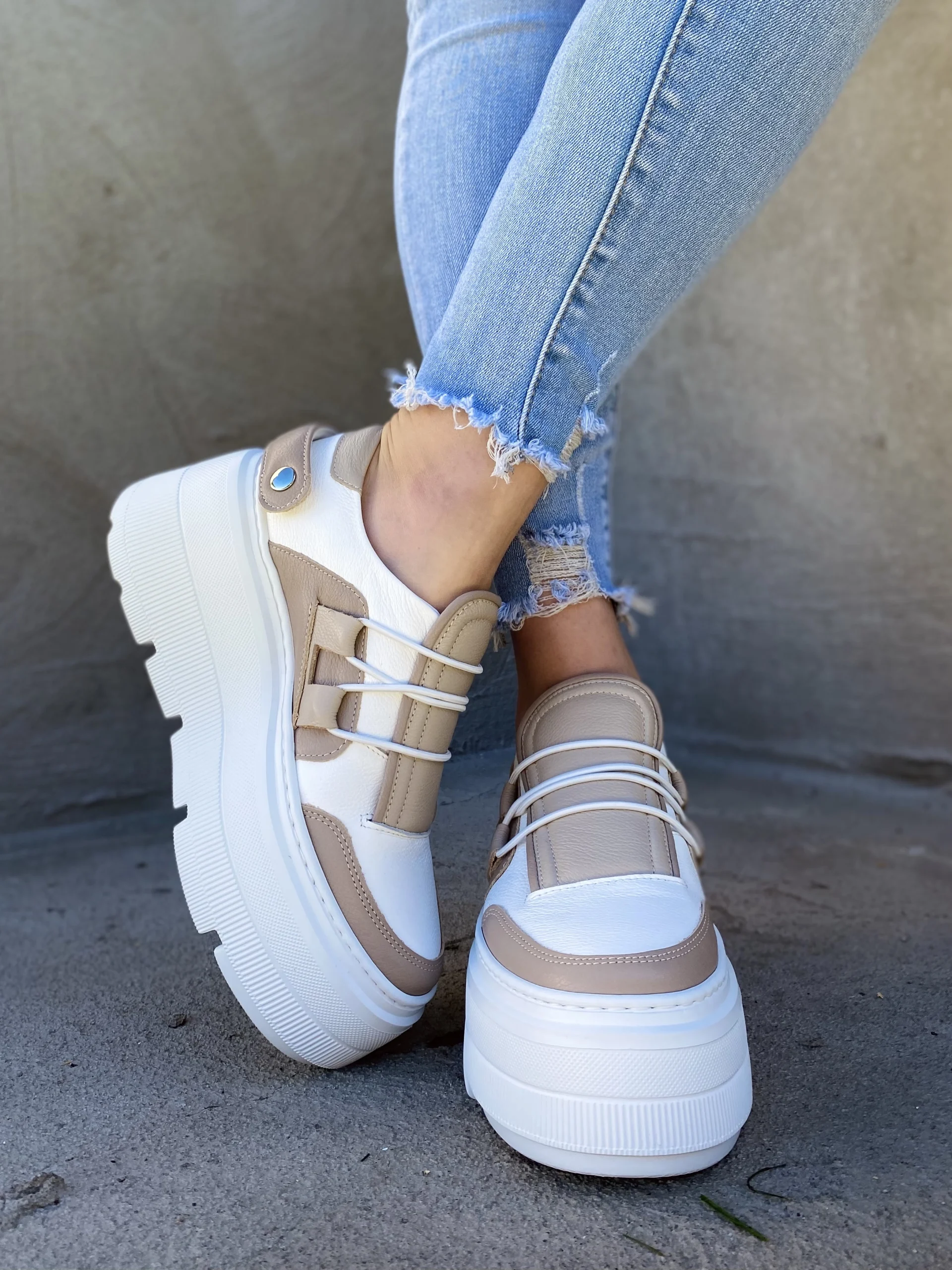 LULA 03 zostały wykonane z dbałością o każdy detal. Ponadczasowe kolory skóry biel i brąz, zostały osadzone na wysokiej, bardzo lekkiej podeszwie, która dodaje im charakteru i wyjątkowego wyglądu.