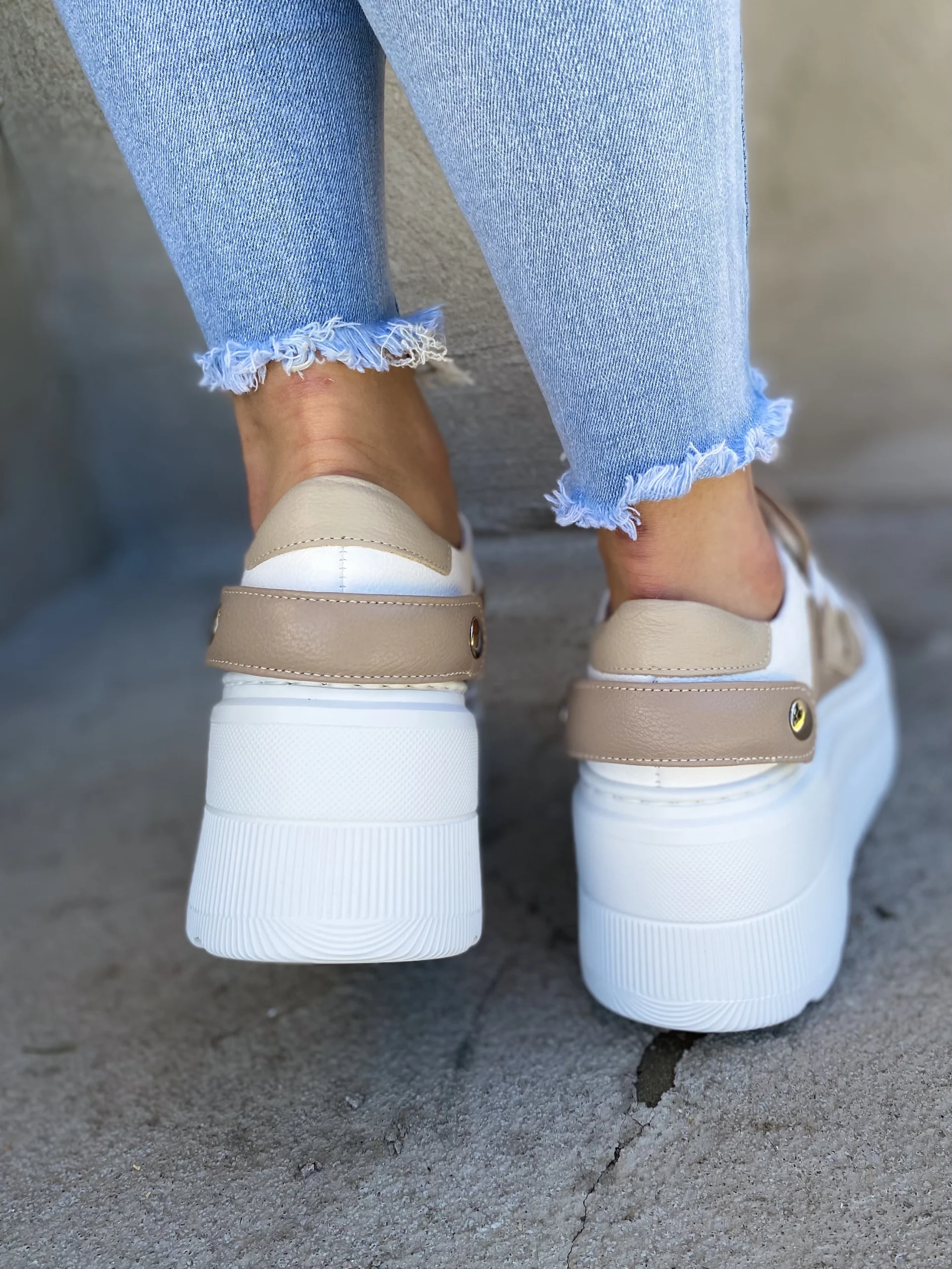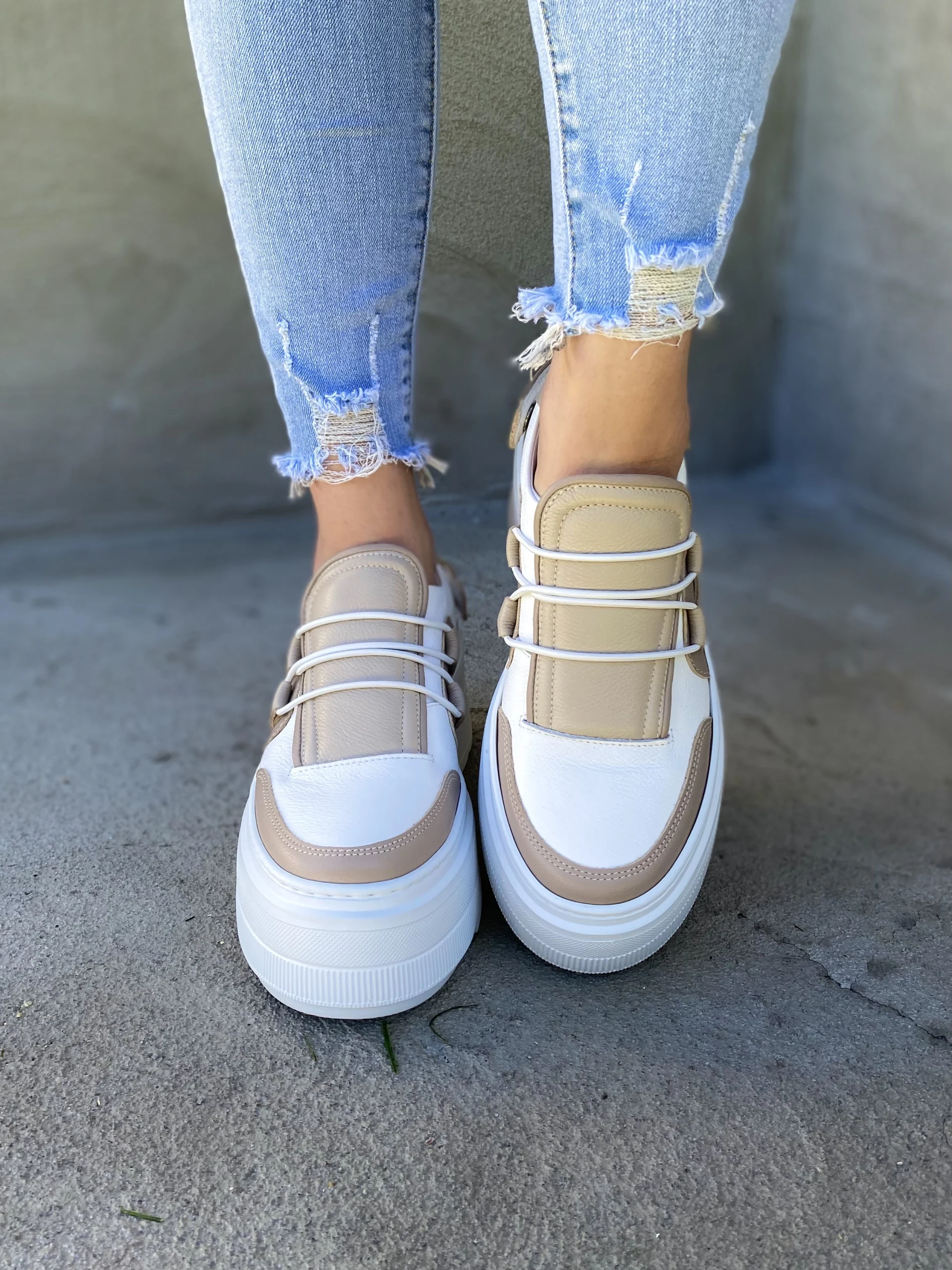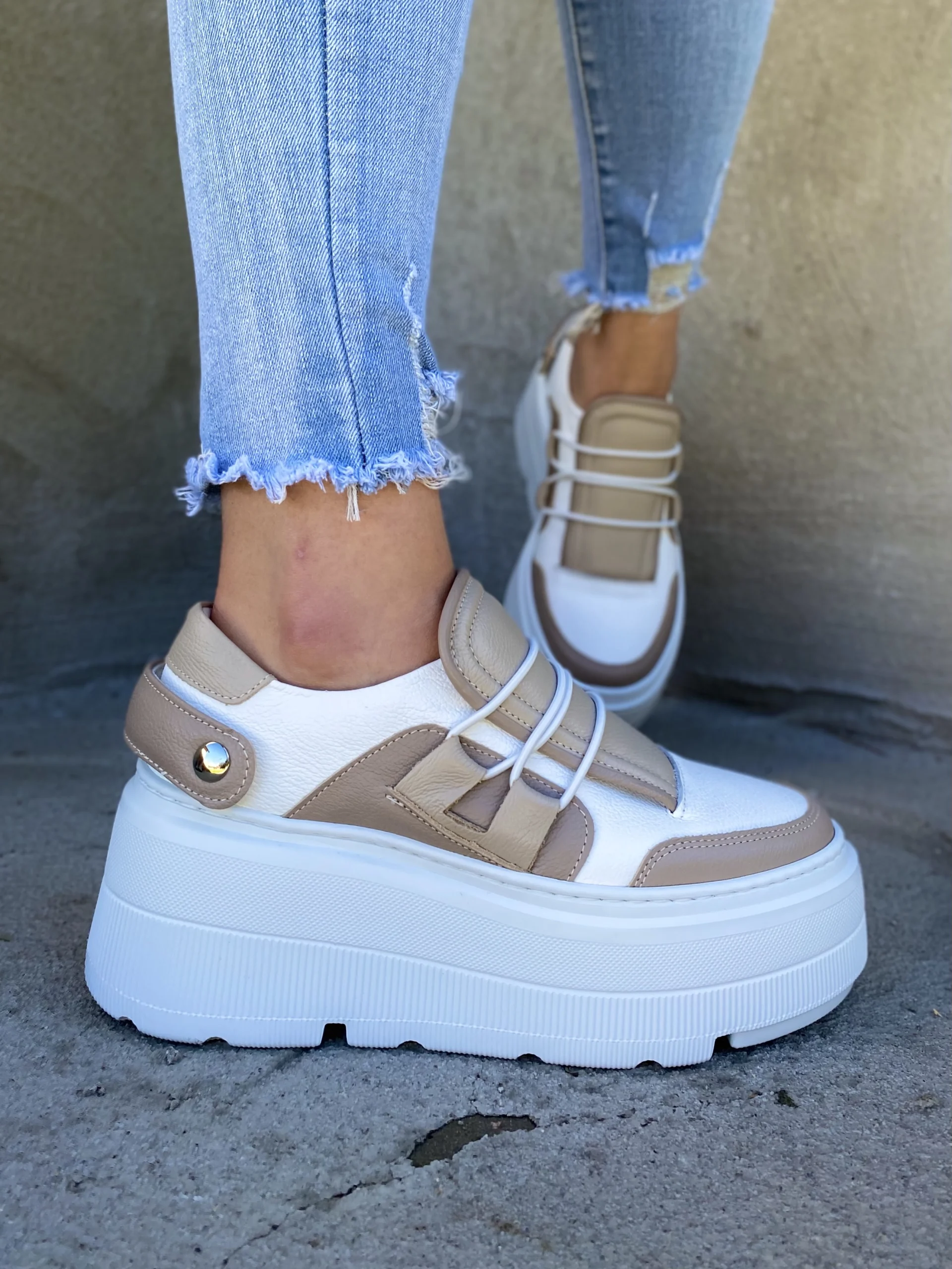 LULA 03 – biało brązowe sneakersy na platformie