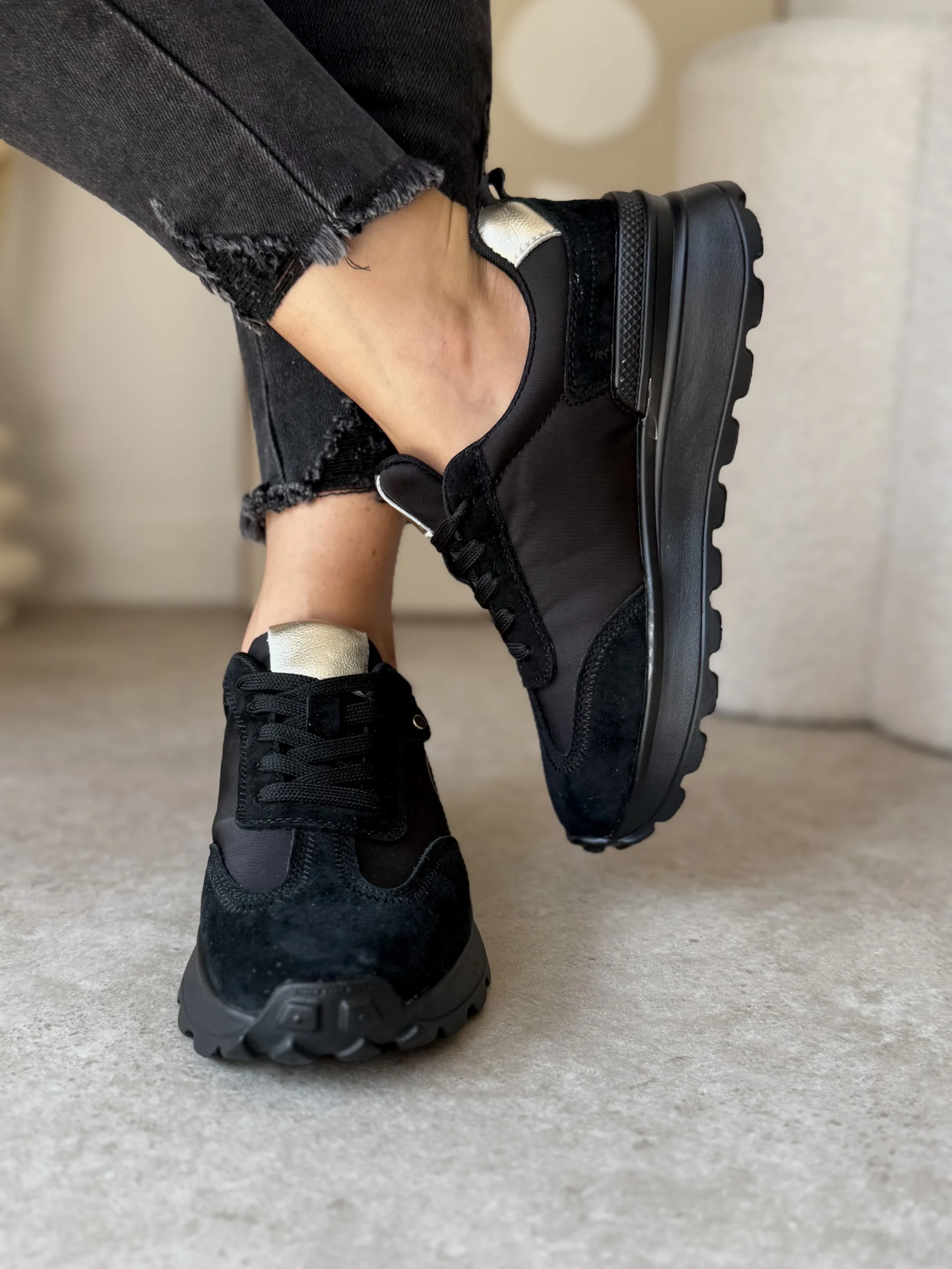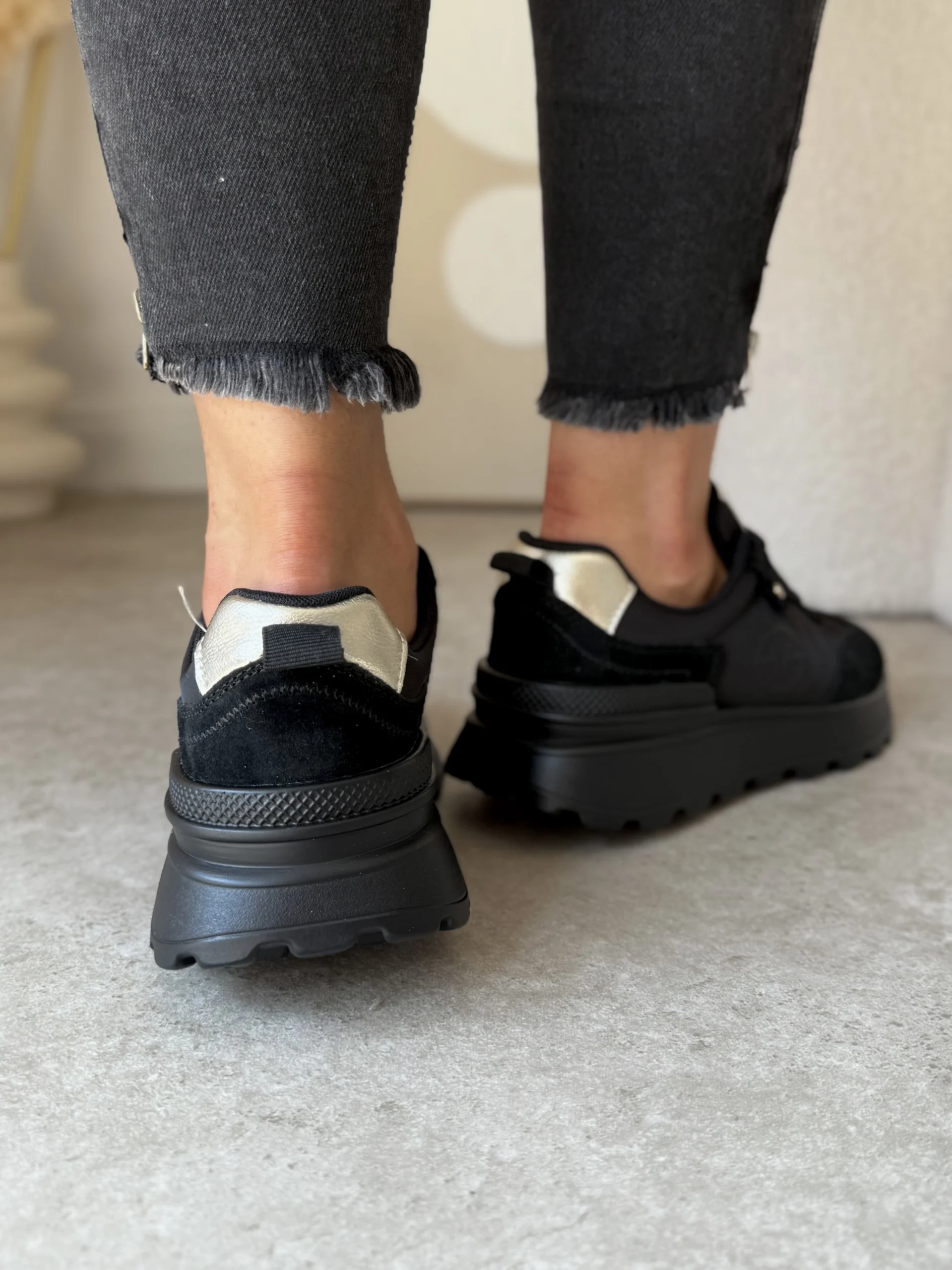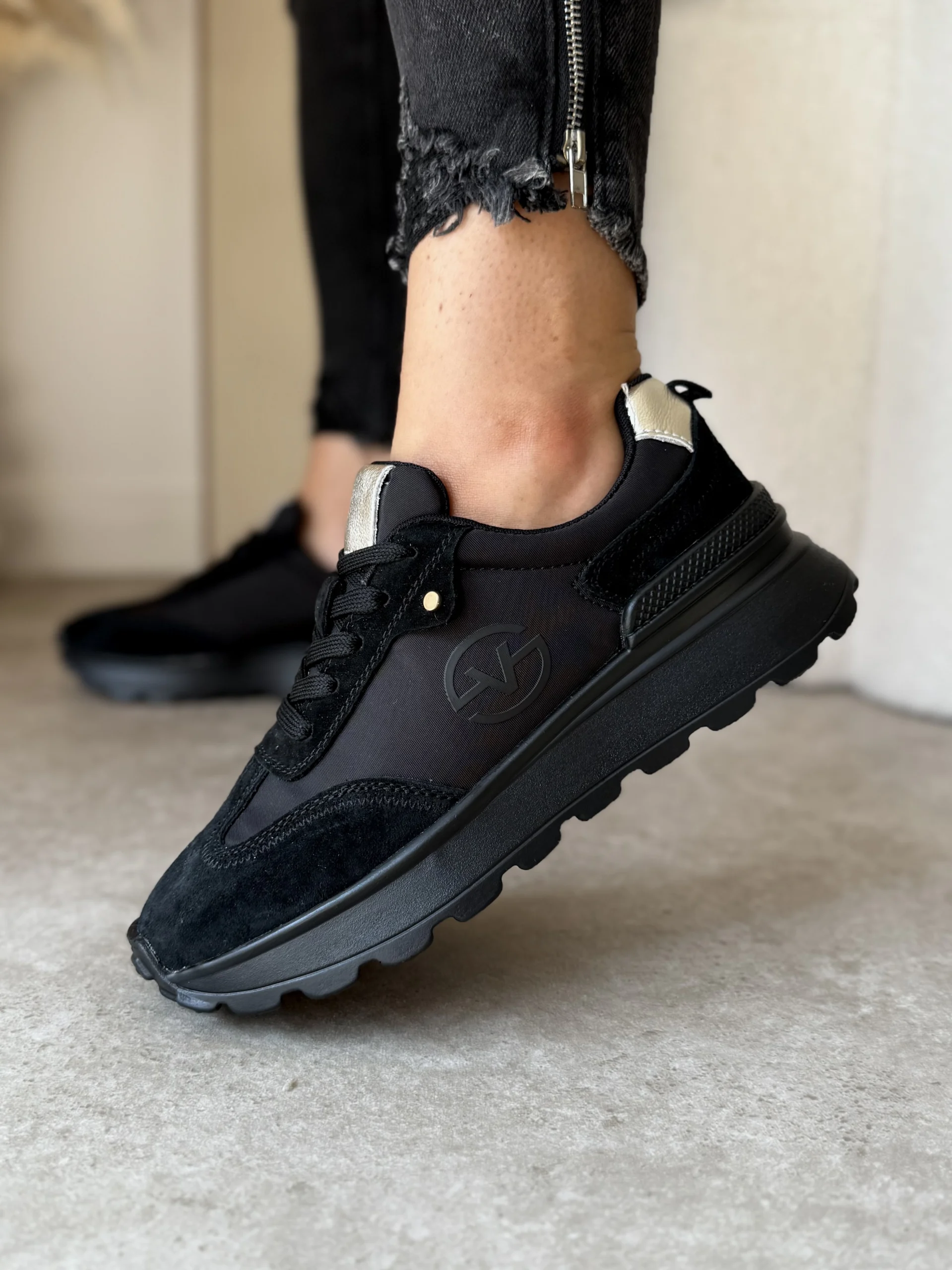Klasyczna czerń z eleganckimi złotymi wstawkami nadaje modelowi wyjątkowego charakteru. Dzięki temu buty pasują zarówno do jeansów i sportowych zestawów, jak i do casualowych sukienek. Jedna para spełnia kilka funkcji – to obuwie na co dzień, ale także modny element stylizacji na spotkania z przyjaciółmi czy weekendowe wyjazdy.