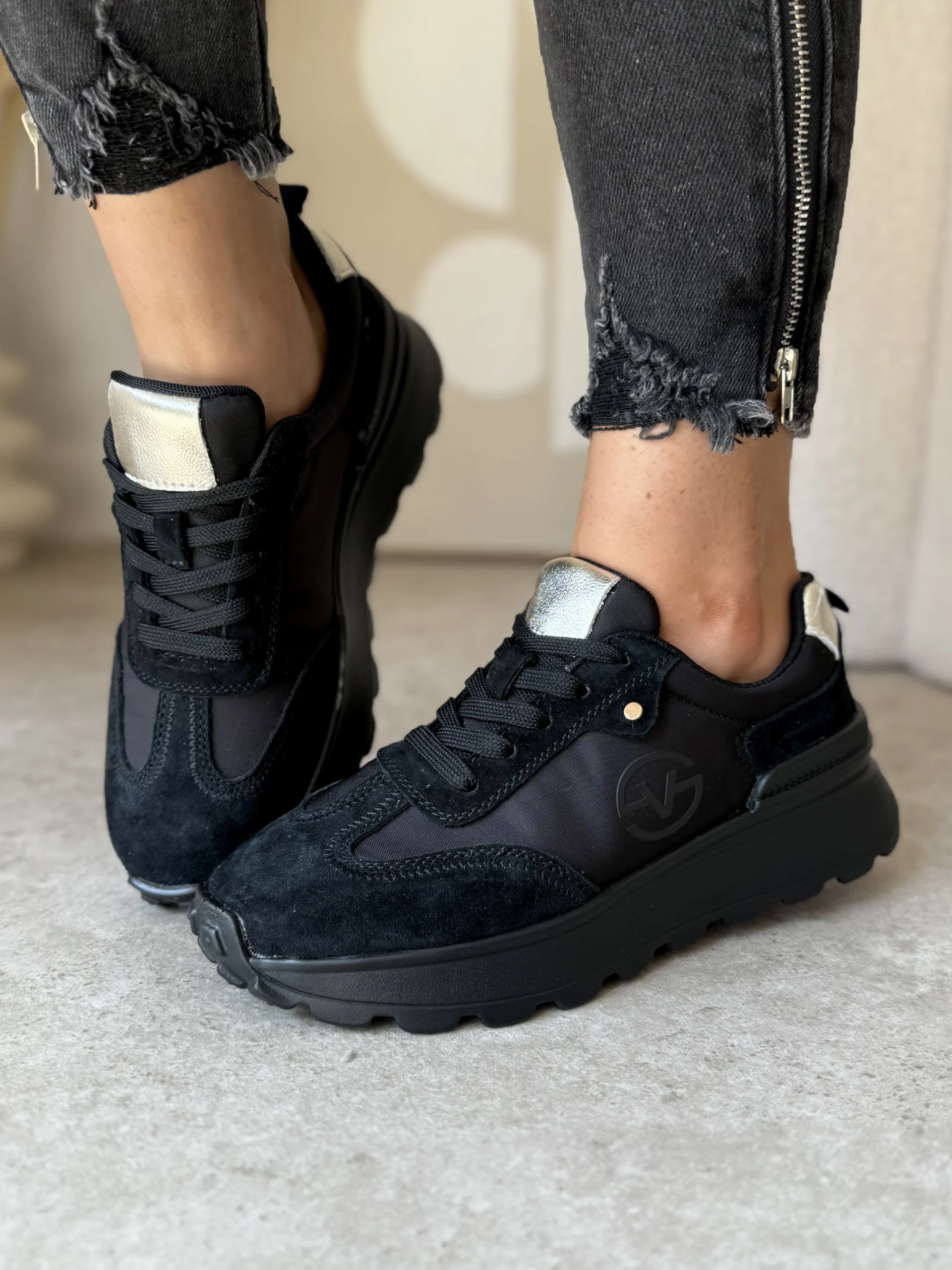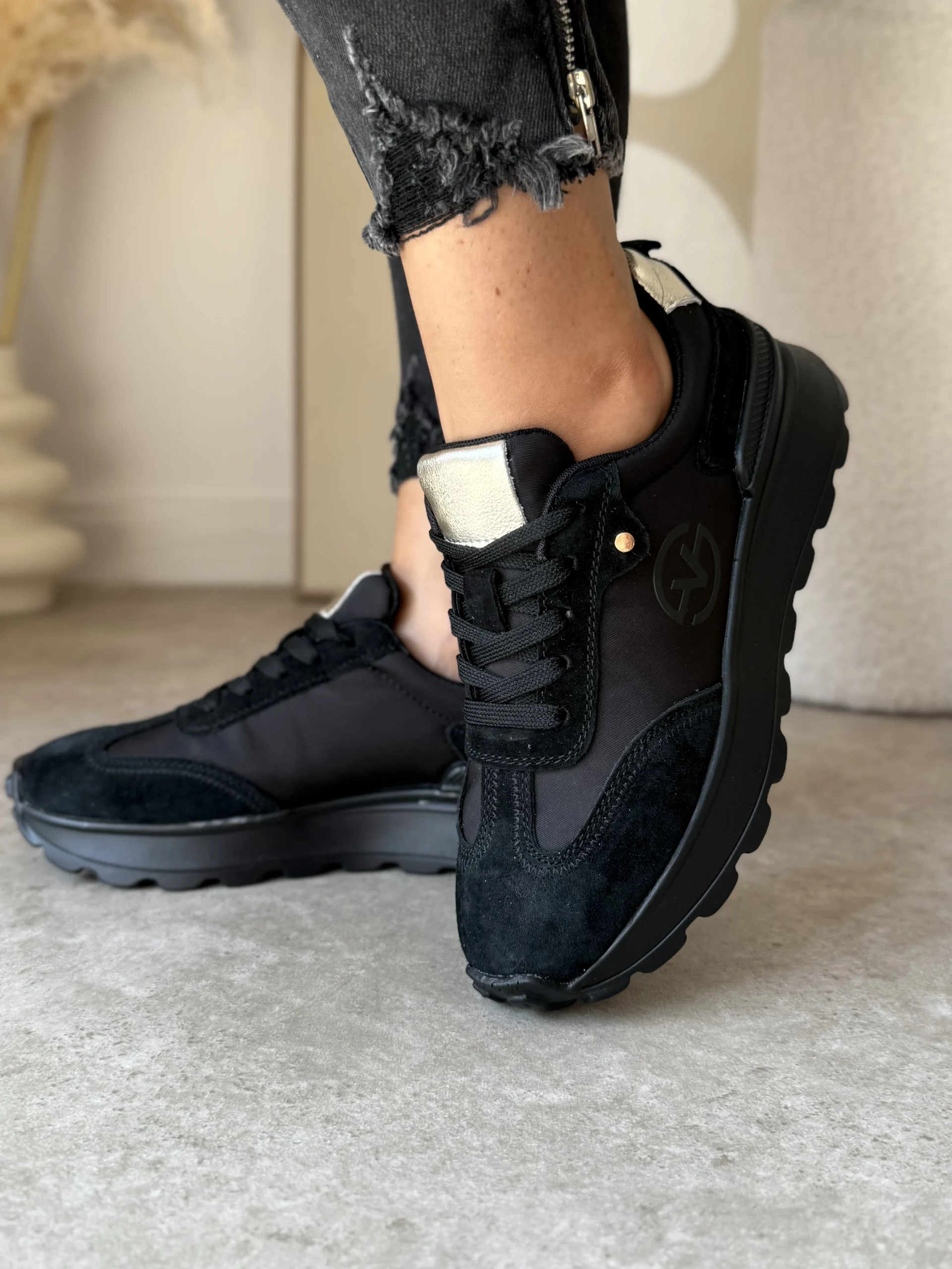 Czarne buty sportowe LULA 101 łączą wygodę z ponadczasowym designem, dlatego idealnie sprawdzają się w codziennym użytkowaniu. Producent połączył naturalną skórę zamszową z przewiewnym materiałem, dzięki czemu buty dopasowują się do stopy, a jednocześnie pozwalają jej oddychać. Co więcej, miękka, skórzana wkładka zapewnia świeżość i wygodę przez cały dzień, niezależnie od pory roku.