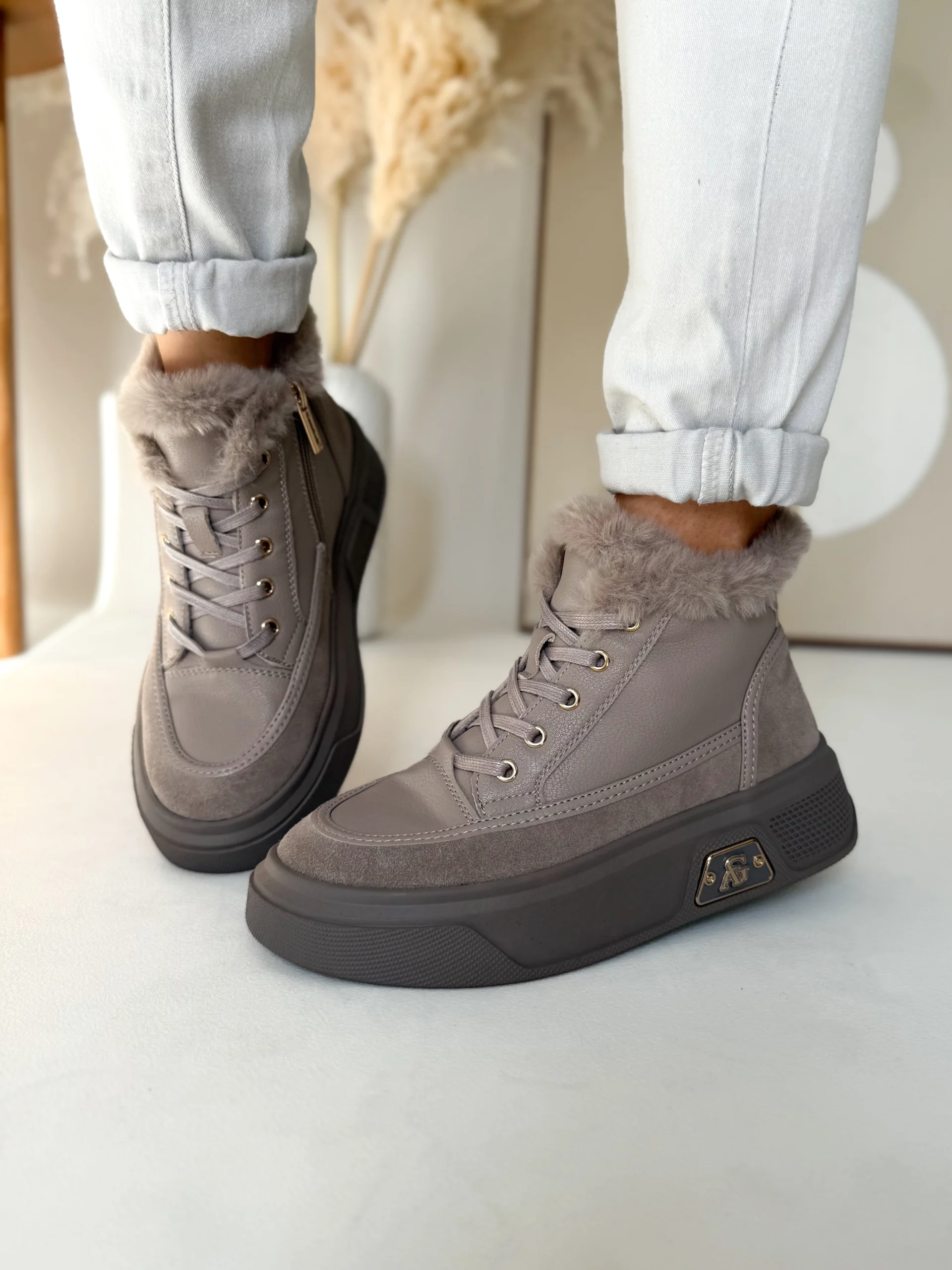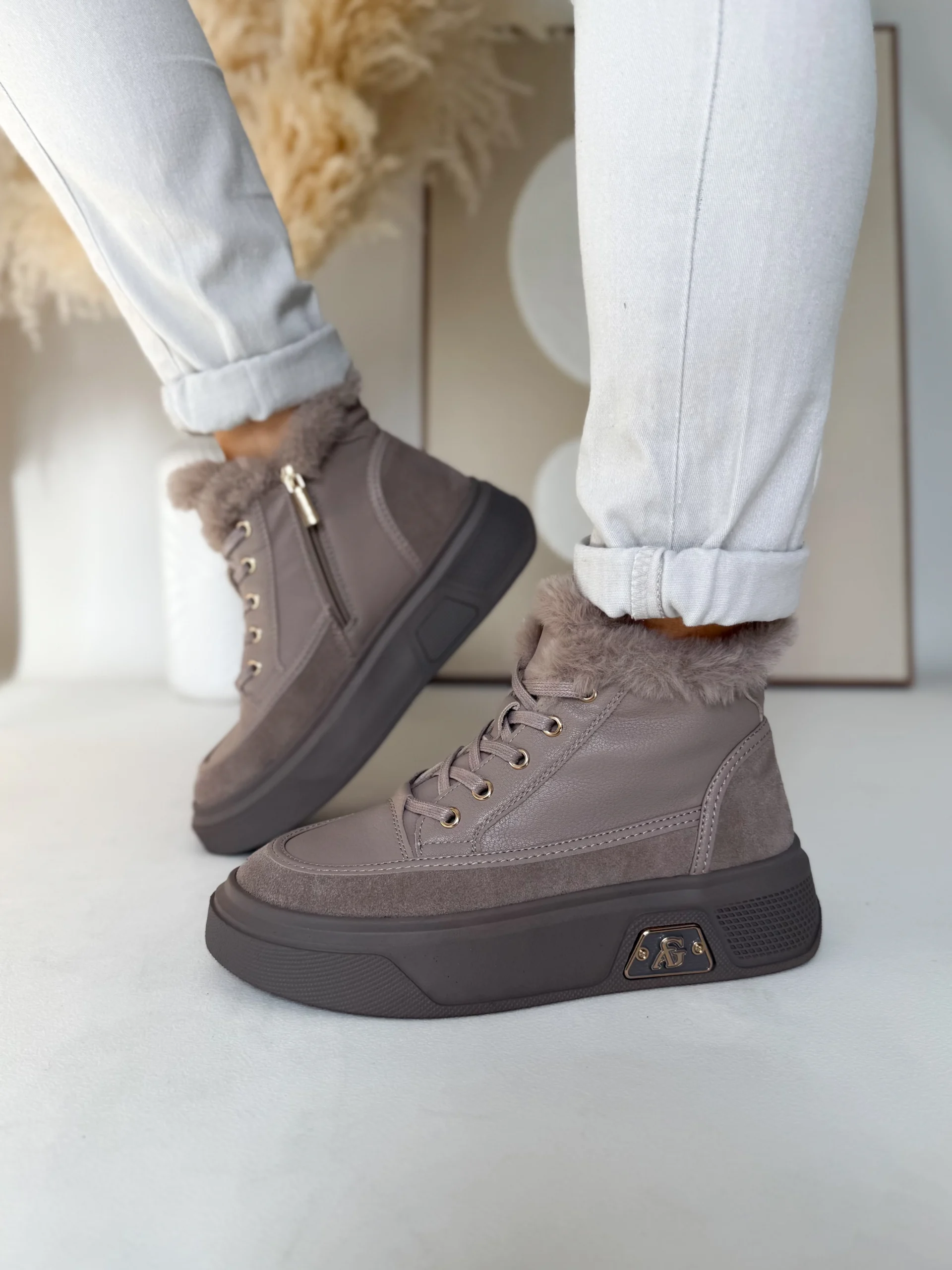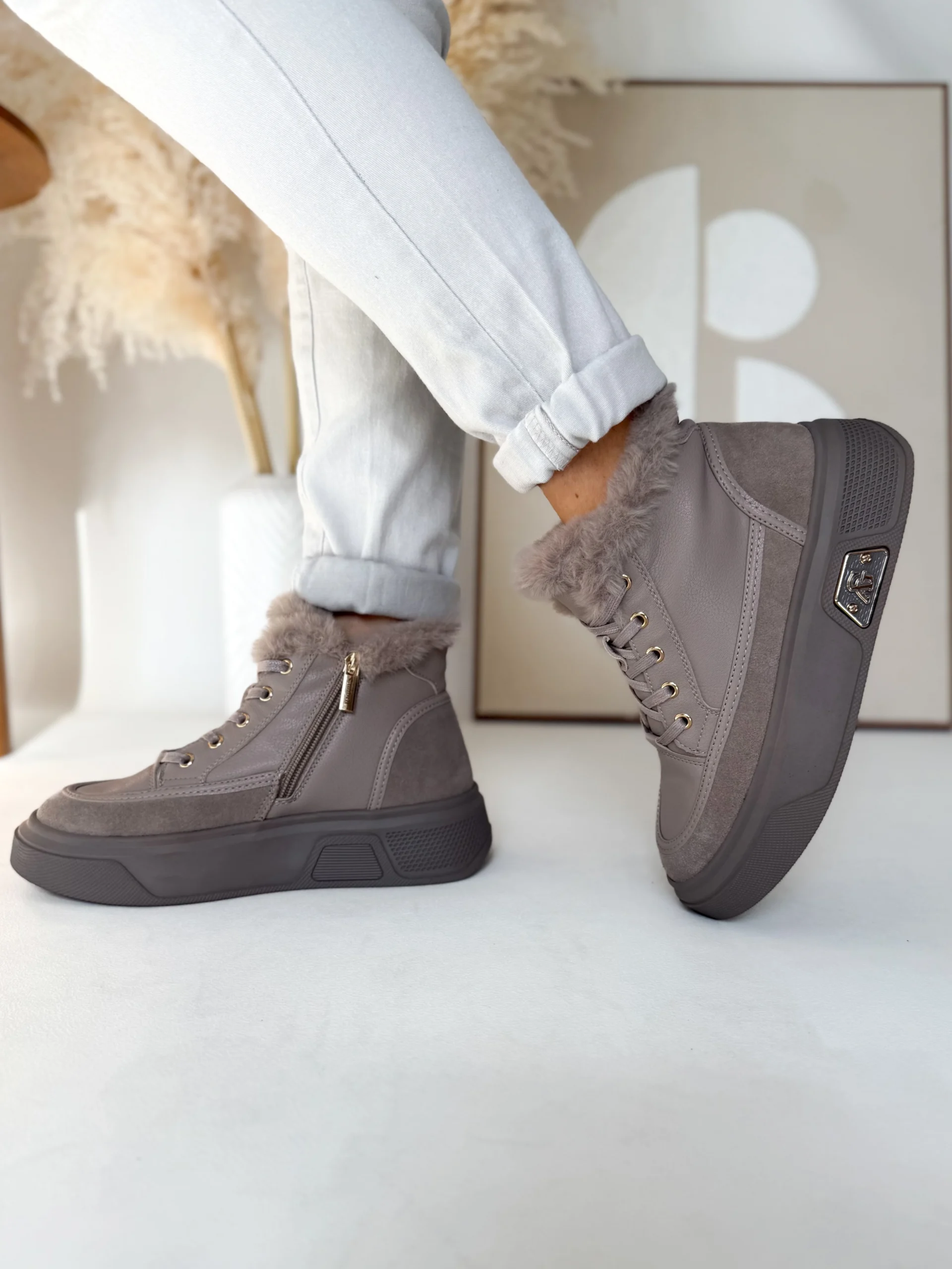Wnętrze buta zostało w całości ocieplone miękkim futerkiem, co zapewnia przyjemne ciepło nawet w chłodniejsze dni. Ten model świetnie sprawdzi się jesienią i zimą, kiedy pogoda nie sprzyja lekkim sneakersom. Komfort noszenia podnosi także gruba, elastyczna podeszwa o wysokości 4 cm, która doskonale amortyzuje każdy krok i izoluje stopy od zimnego podłoża.
