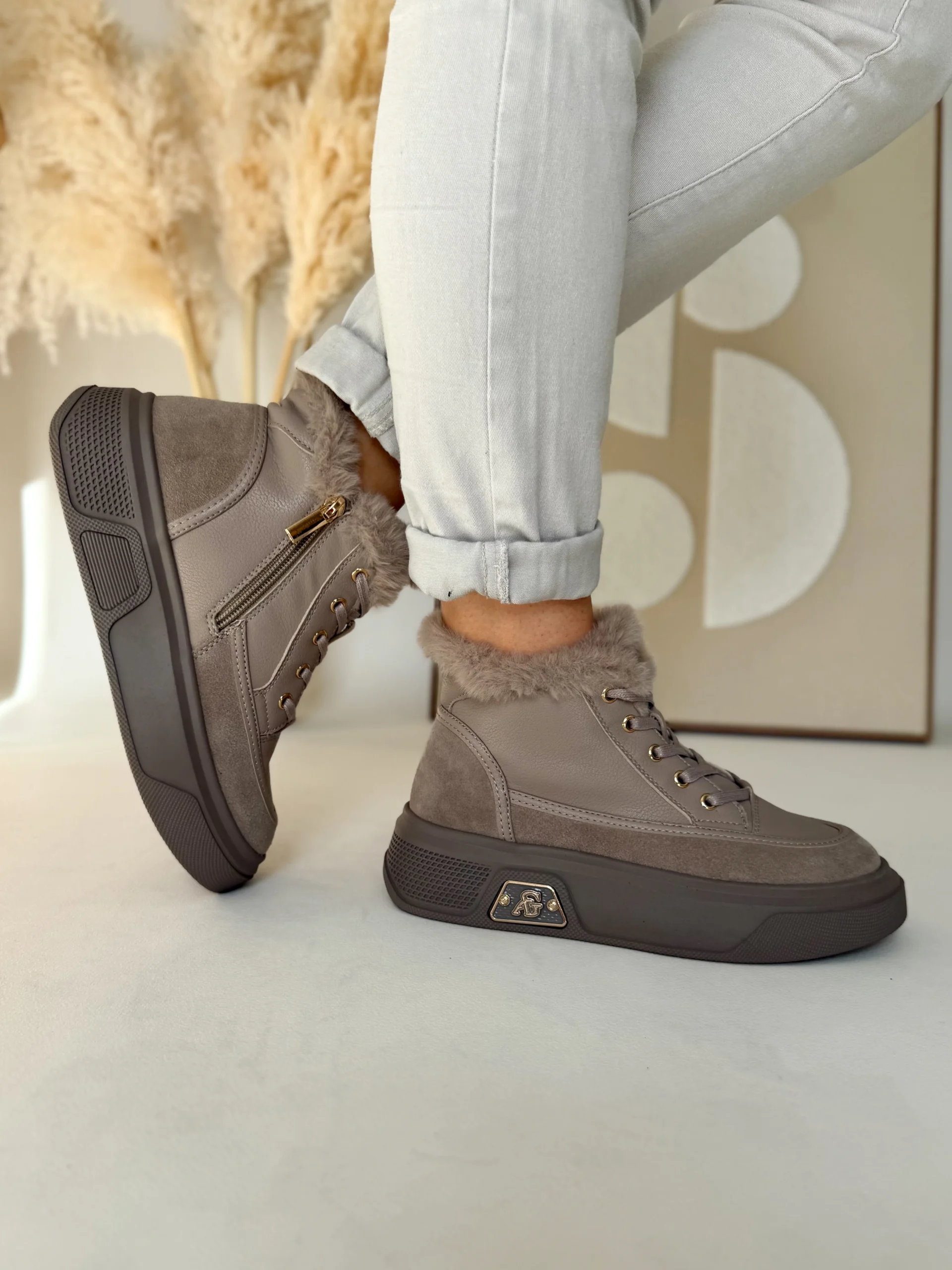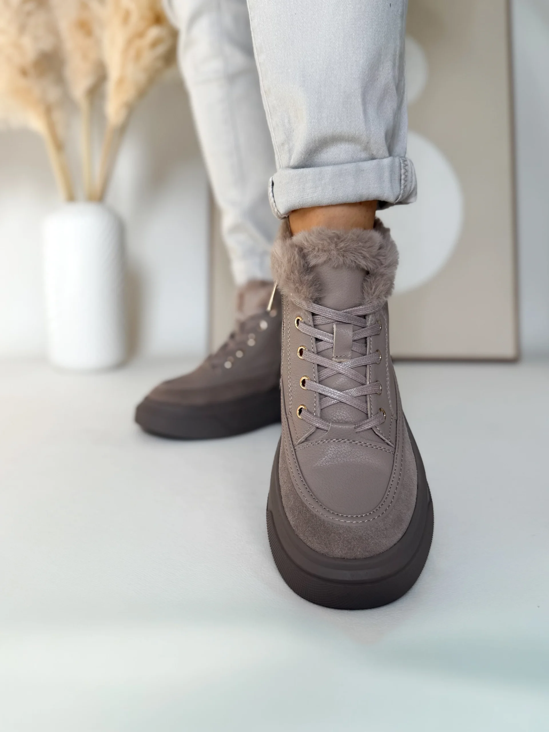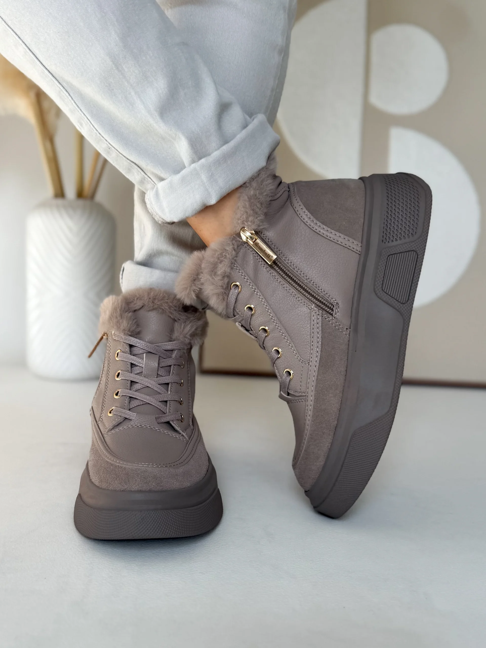 Wnętrze buta zostało w całości ocieplone miękkim futerkiem, co zapewnia przyjemne ciepło nawet w chłodniejsze dni. Ten model świetnie sprawdzi się jesienią i zimą, kiedy pogoda nie sprzyja lekkim sneakersom. Komfort noszenia podnosi także gruba, elastyczna podeszwa o wysokości 4 cm, która doskonale amortyzuje każdy krok i izoluje stopy od zimnego podłoża.