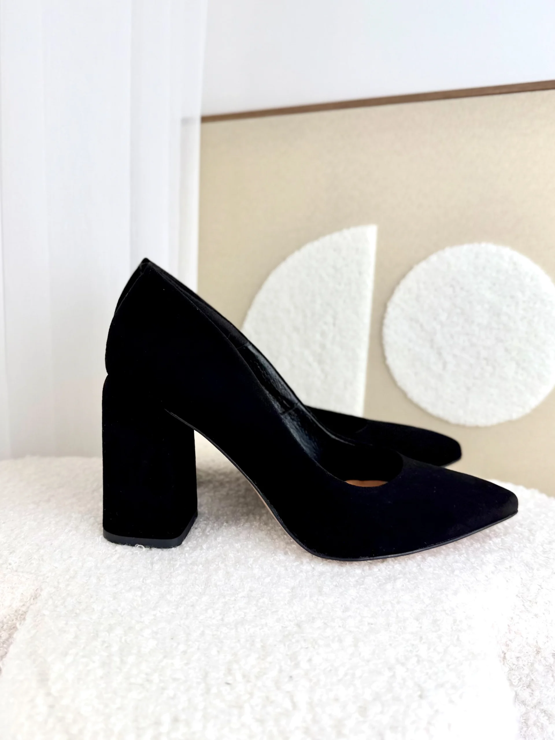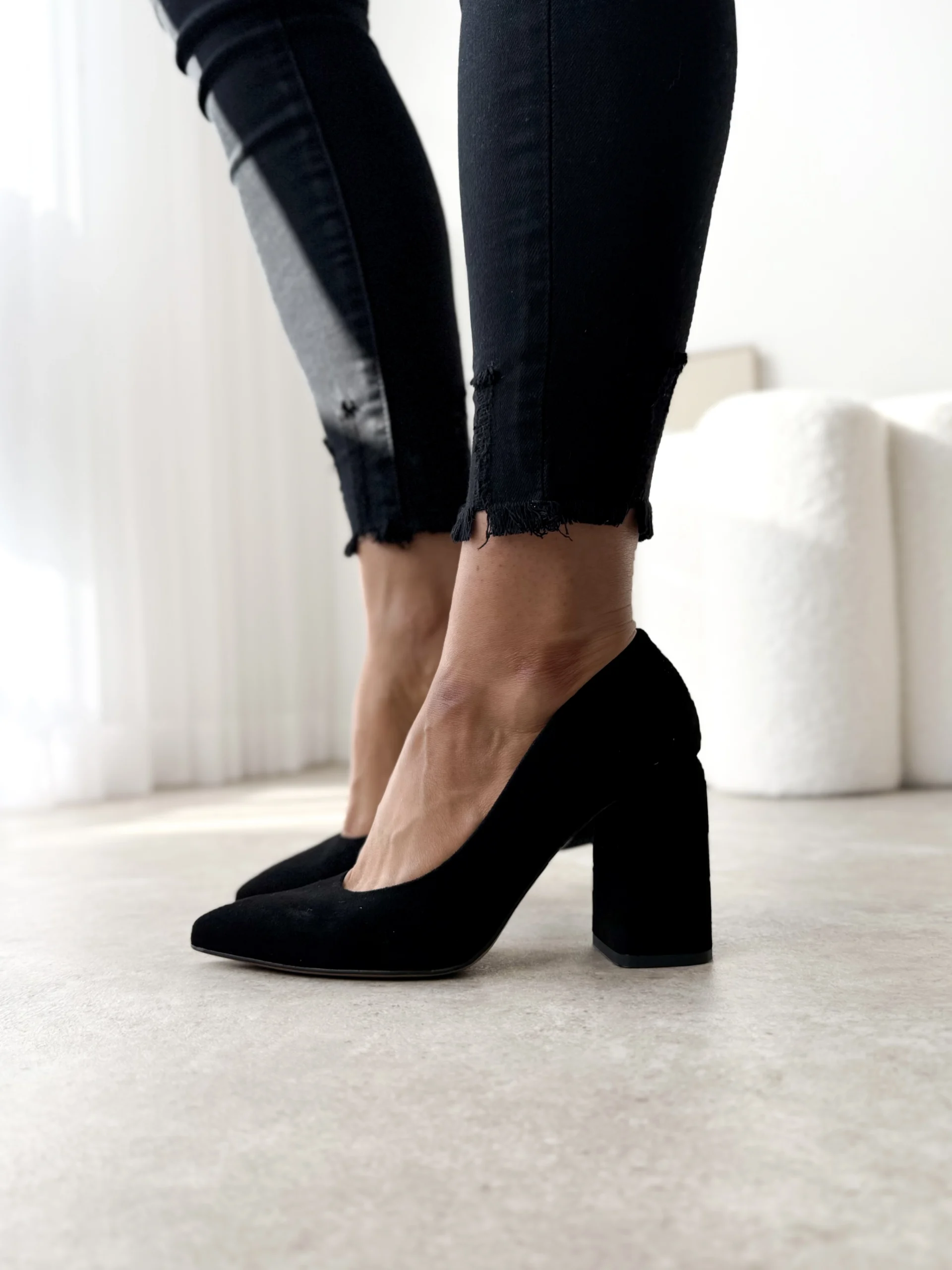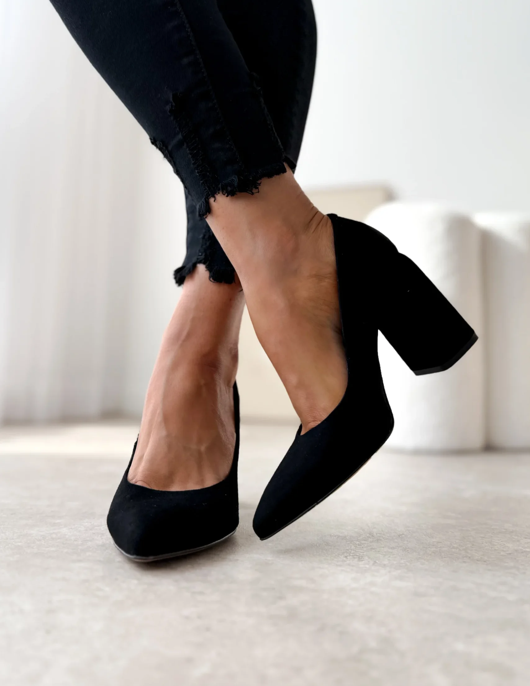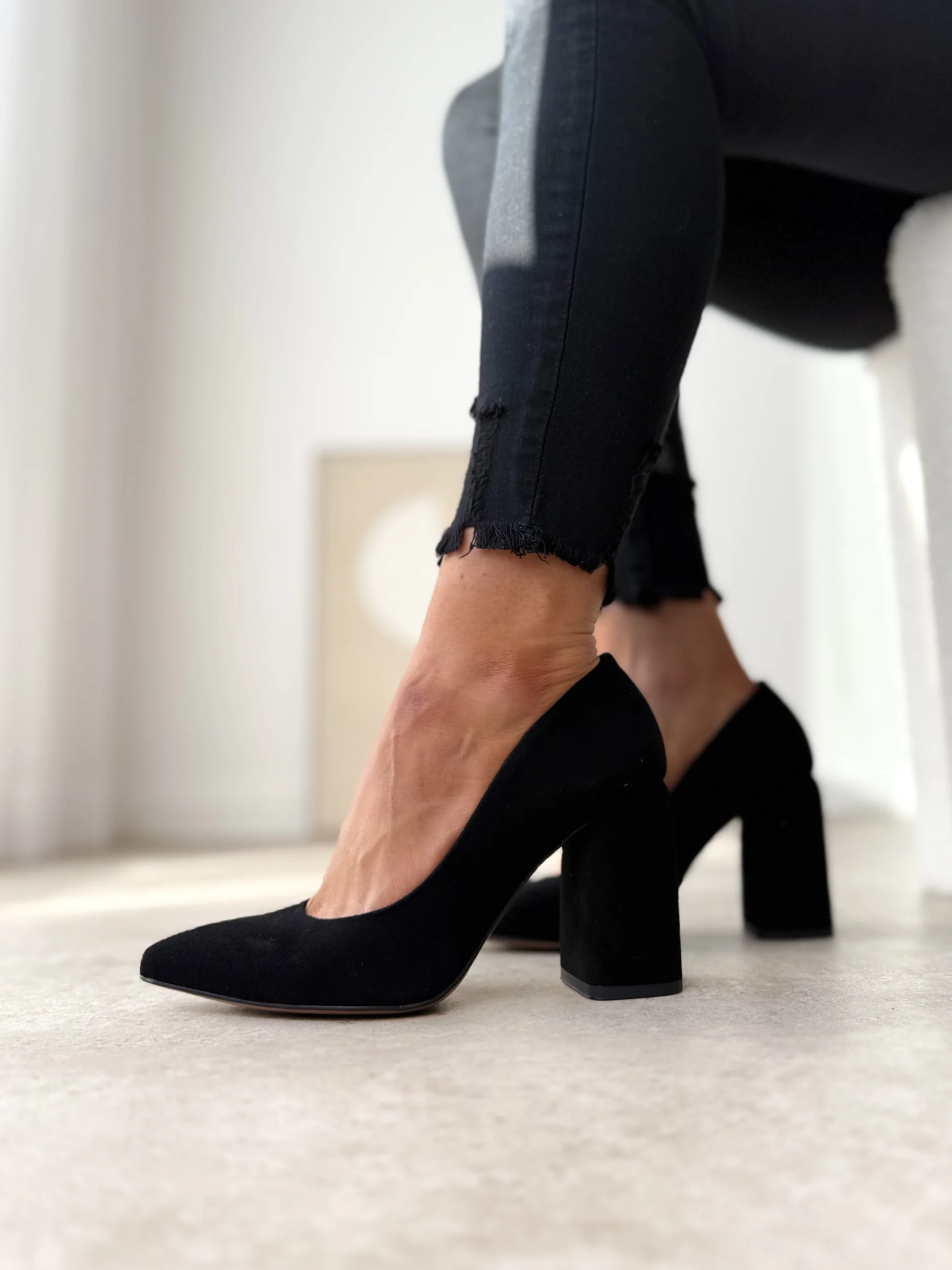 LULA 41 zamszowe czółenka na słupku czarna skóra naturalna