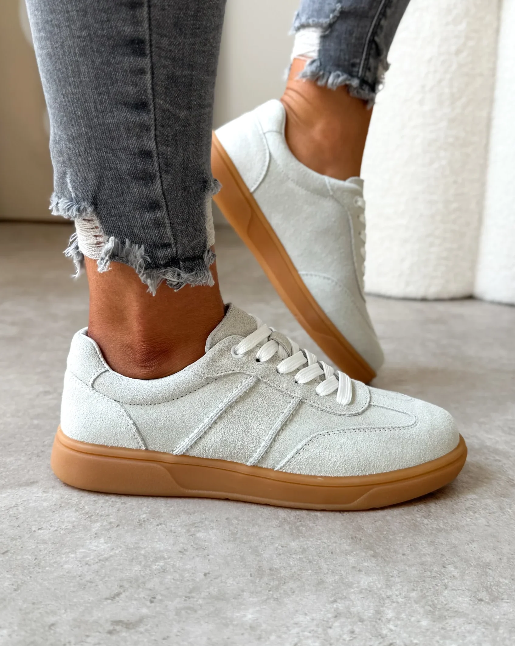 Śmiało założysz je do wielu różnorodnych stylizacji z modnymi jeansami boyfirend, fit mom, dzwony, ale również nadadzą charakteru outfitom causalowym z eleganckimi spodniami. Stonowany kolor szare świetnie połączysz z wieloma zestawieniami kolorystycznymi.