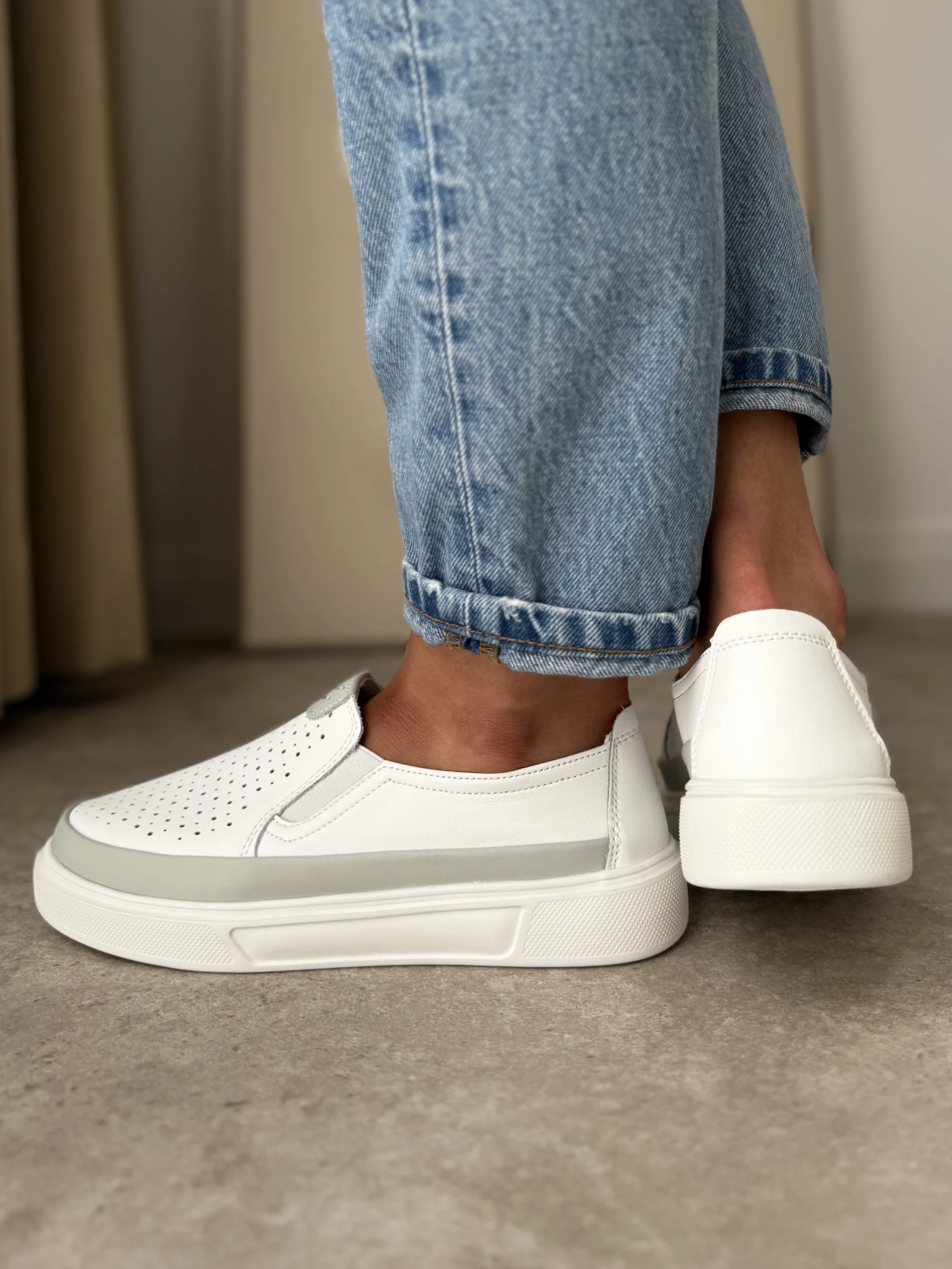 LULA 58 ultralekkie skórzane trampki slip’ony białe