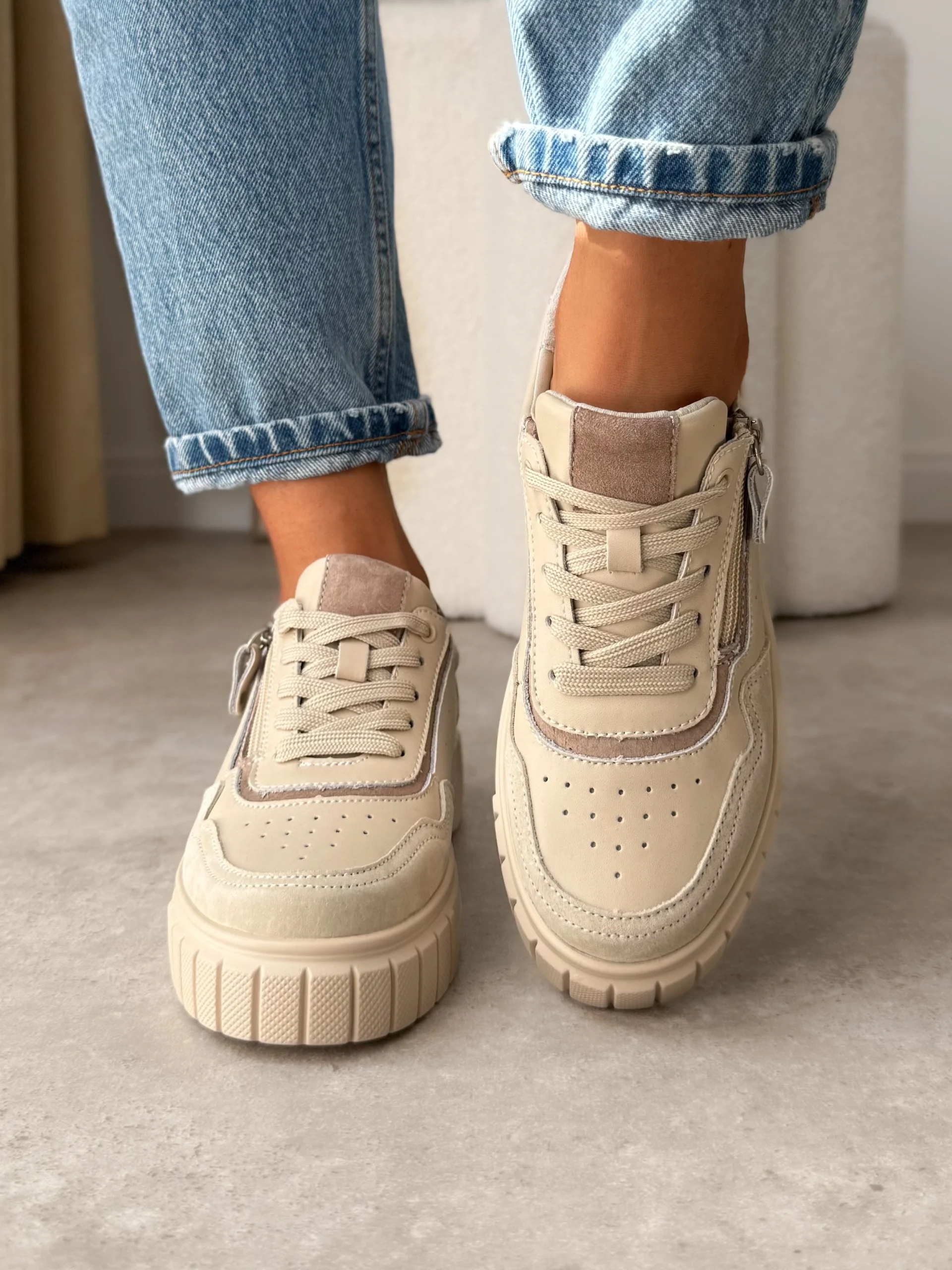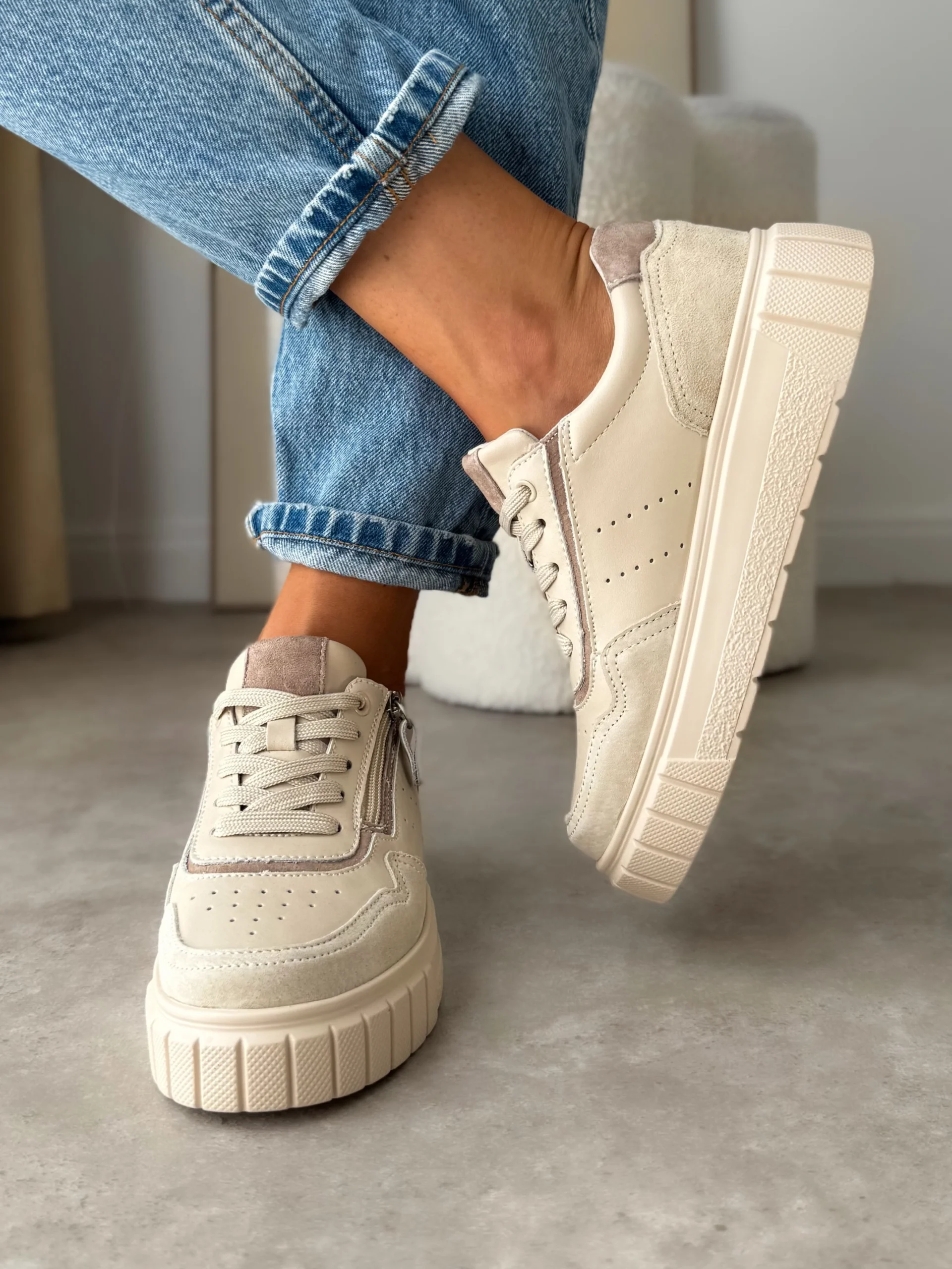 LULA 59 beżowe skórzane sneakersy