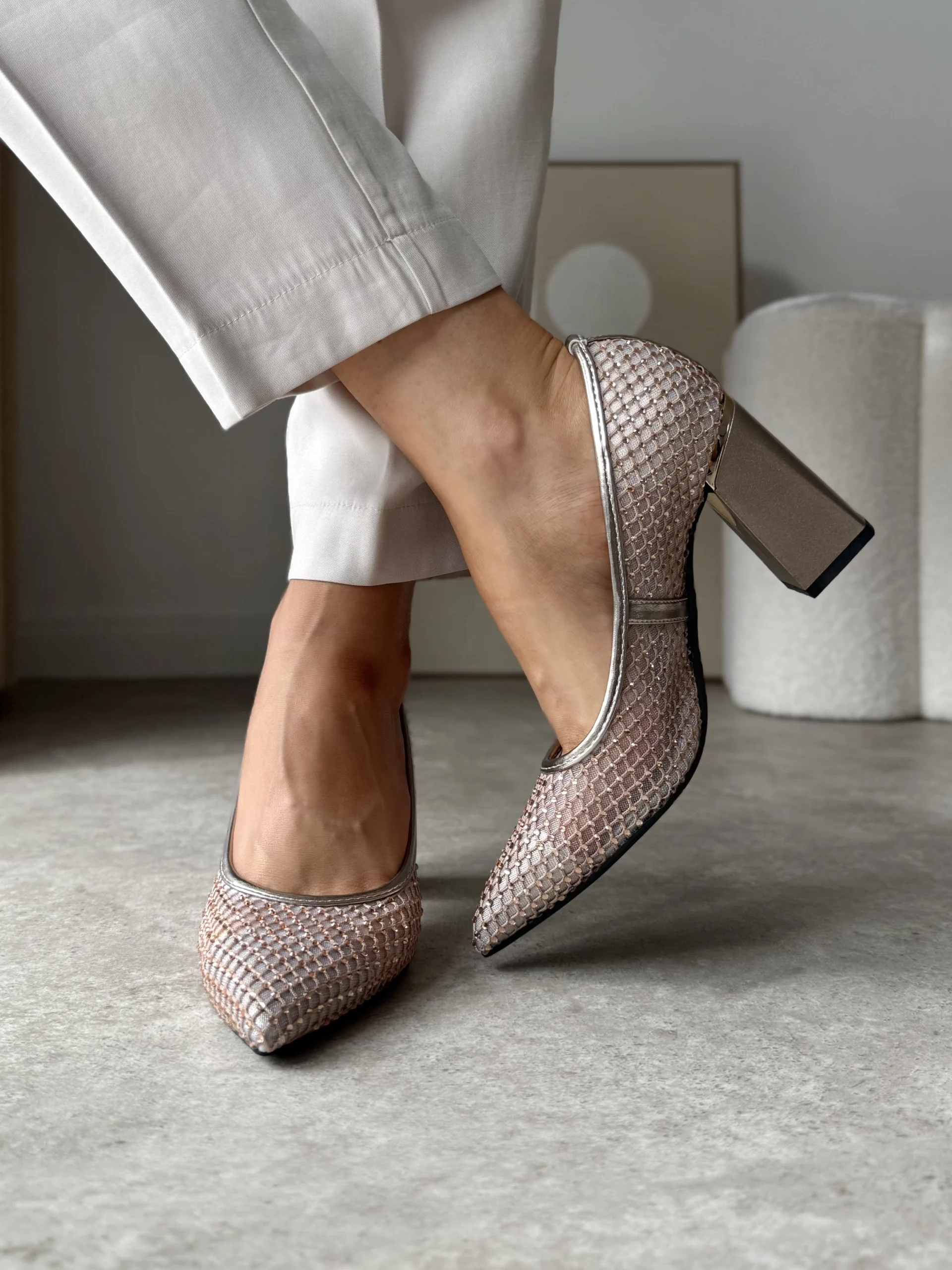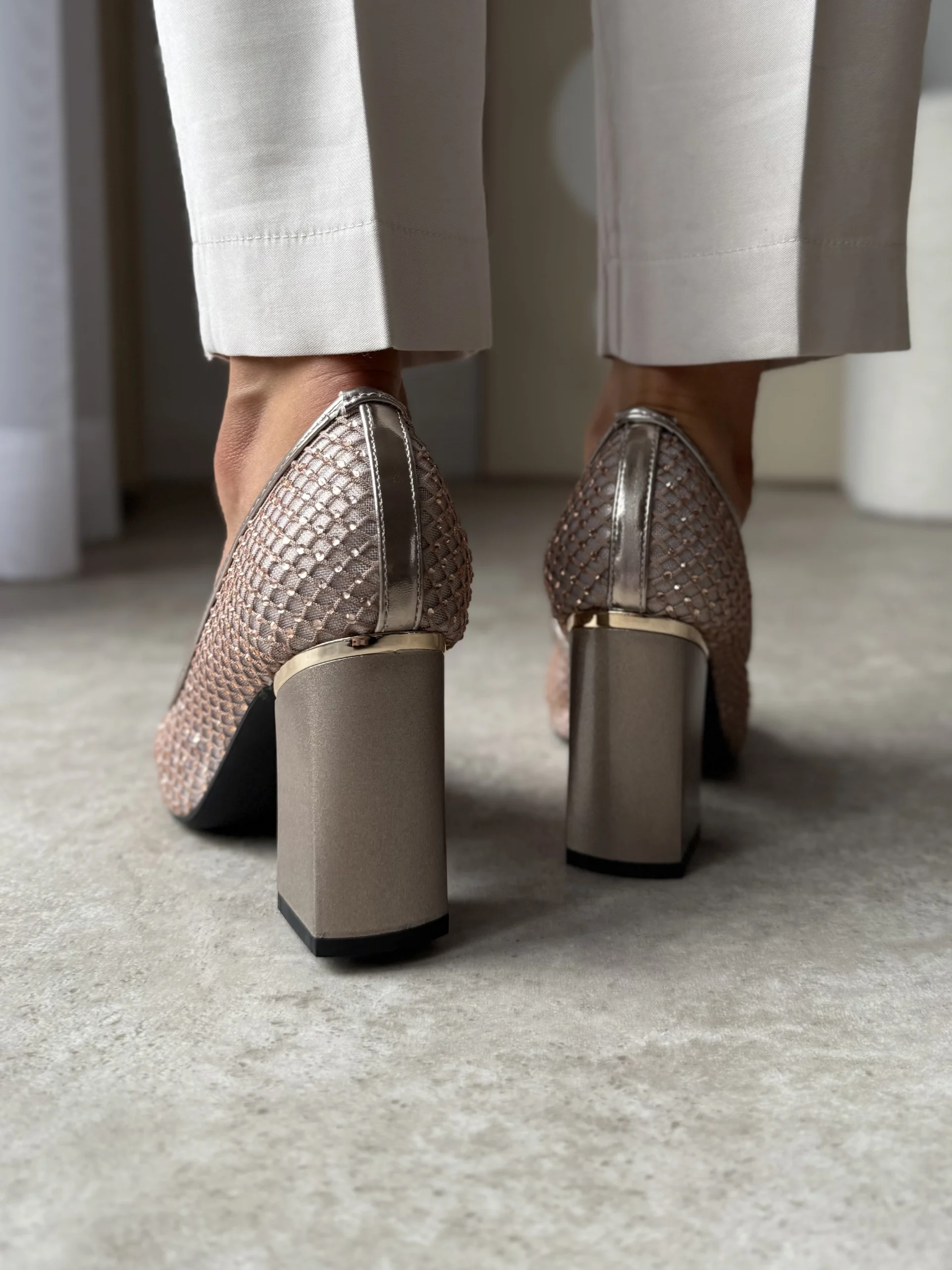 To ponadczasowy model na wiosnę / lato oraz wyjątkowe okazje. Idealnie sprawdzą się na co dzień do pracy, ale tak że na wesela czy inne uroczystości. Ich cekinowy designe doda smaku i wyjątkowości każdej stylizacji.