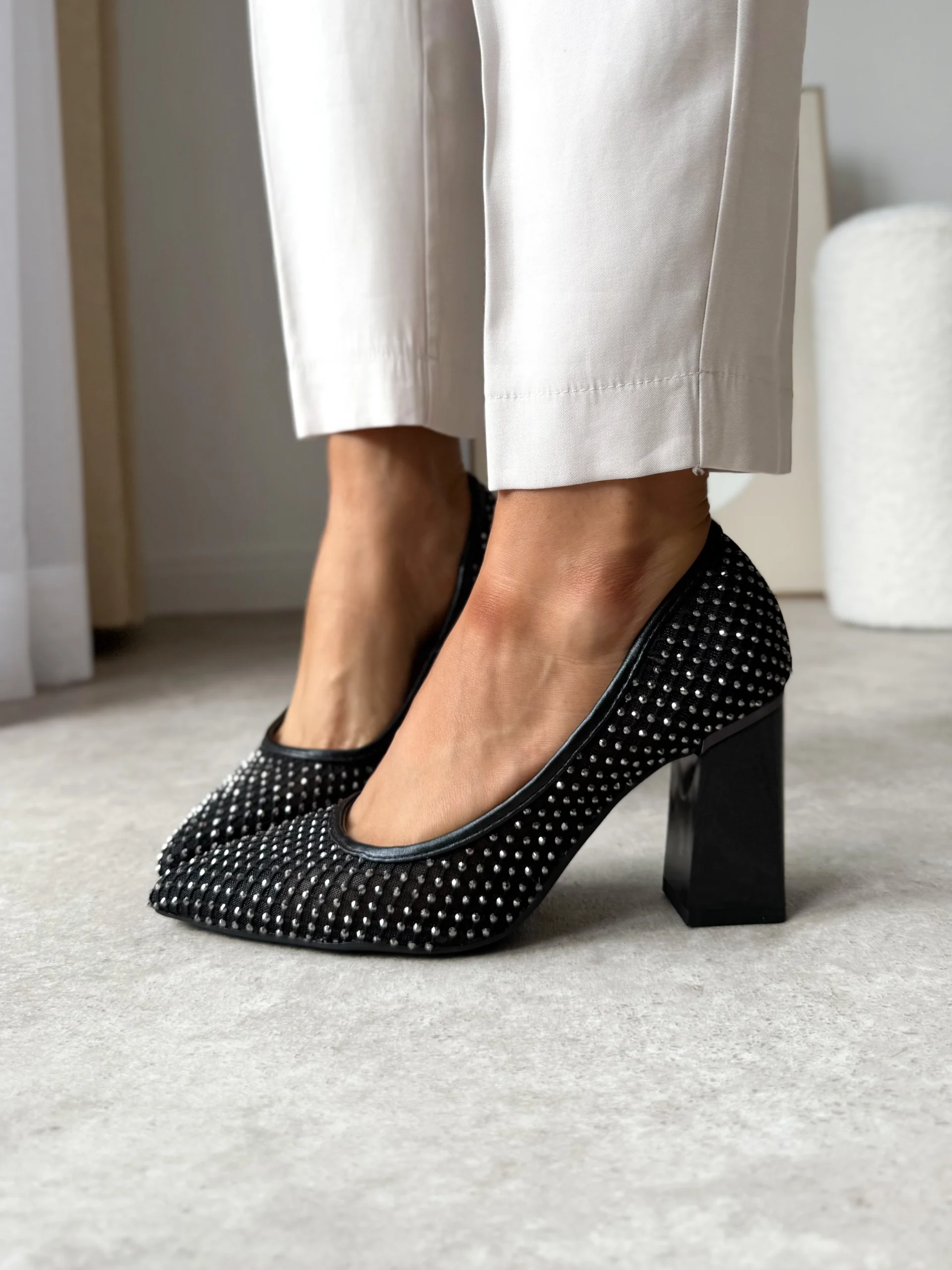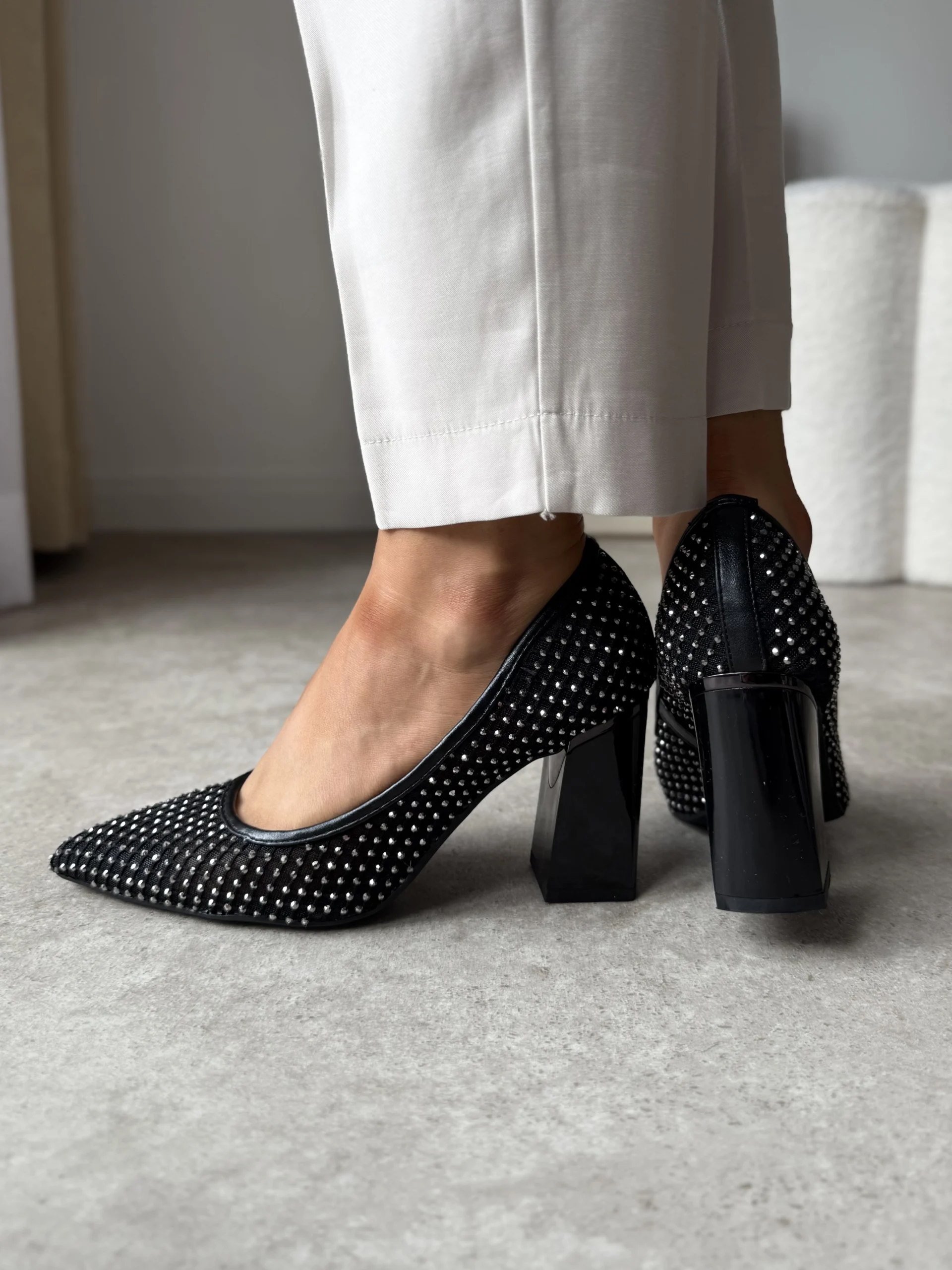 LULA 62 czarne cekinowe czółenka damskie na słupku