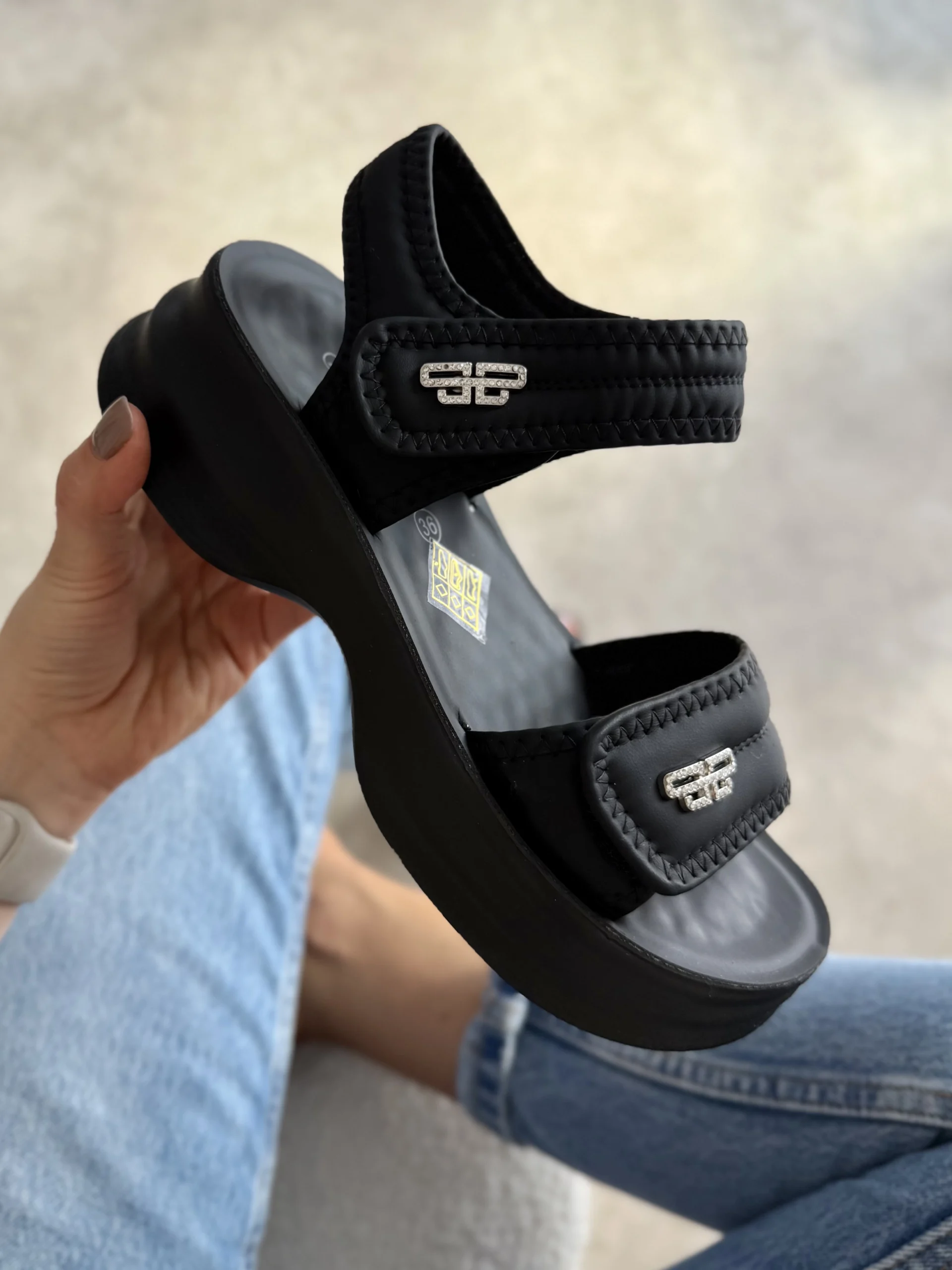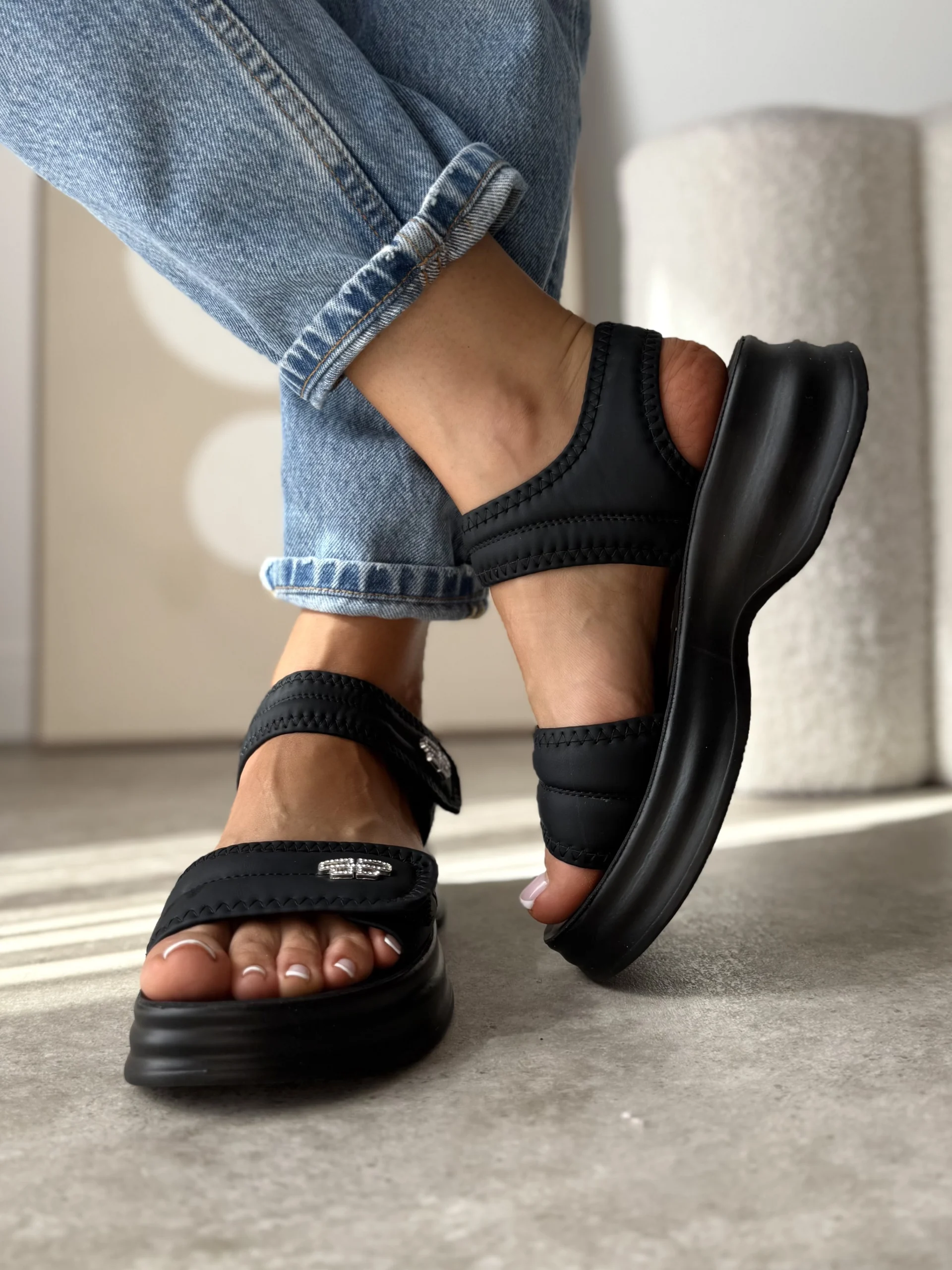 Sandały zostały osadzone na stabilnej podeszwie wykonanej metodą odlewu, która ma wysokość 2,5-4,5 cm.