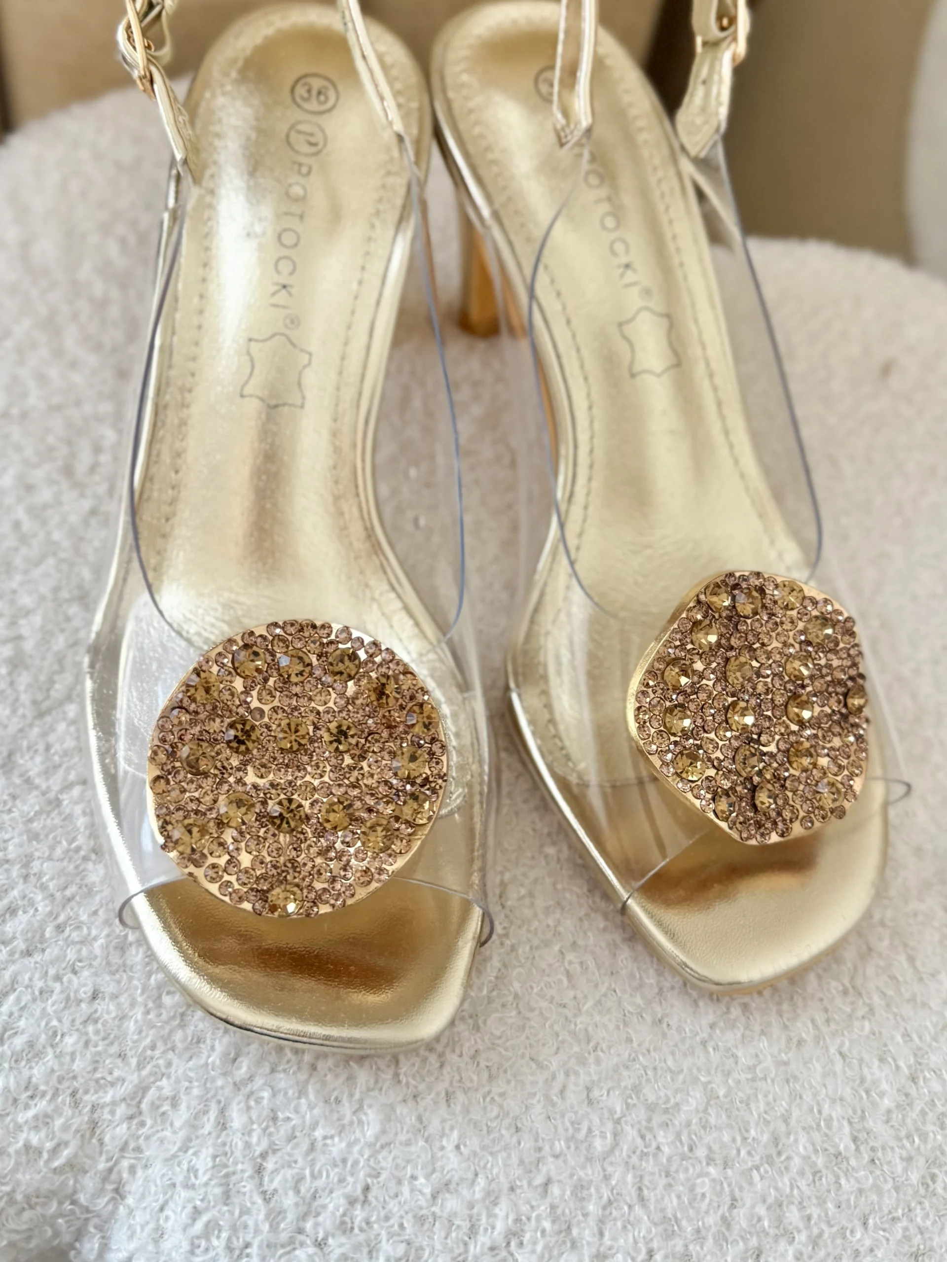 LULA 81 złote sylikonowe sandałki z ozdobą transparentne
