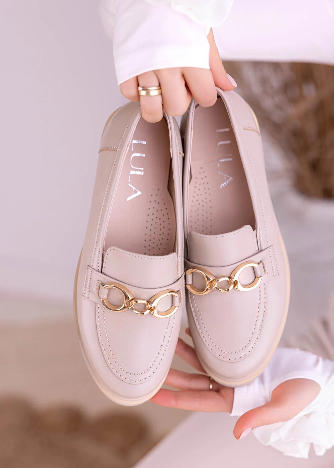 Obcas o wysokości 2,5 cm to idealny kompromis między elegancją a wygodą. Z jednej strony dodaje sylwetce lekkości, a z drugiej zapewnia stabilność. Elastyczna podeszwa sprawia, że chodzenie staje się przyjemniejsze, a każdy krok jest pewny i lekki. Dlatego mokasyny LULA 45 świetnie sprawdzają się zarówno podczas codziennych obowiązków, jak i podczas dłuższych spacerów.