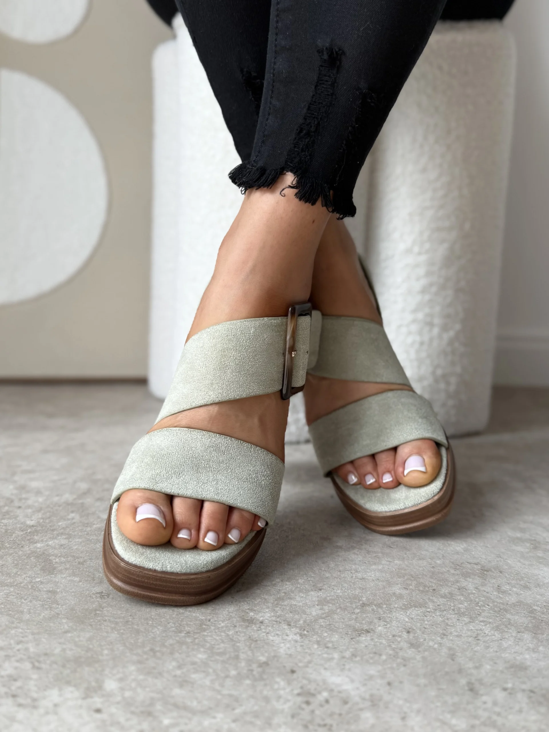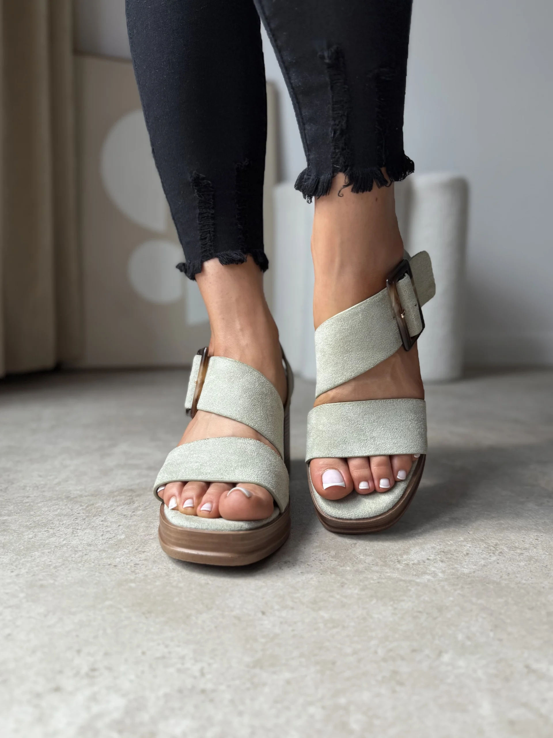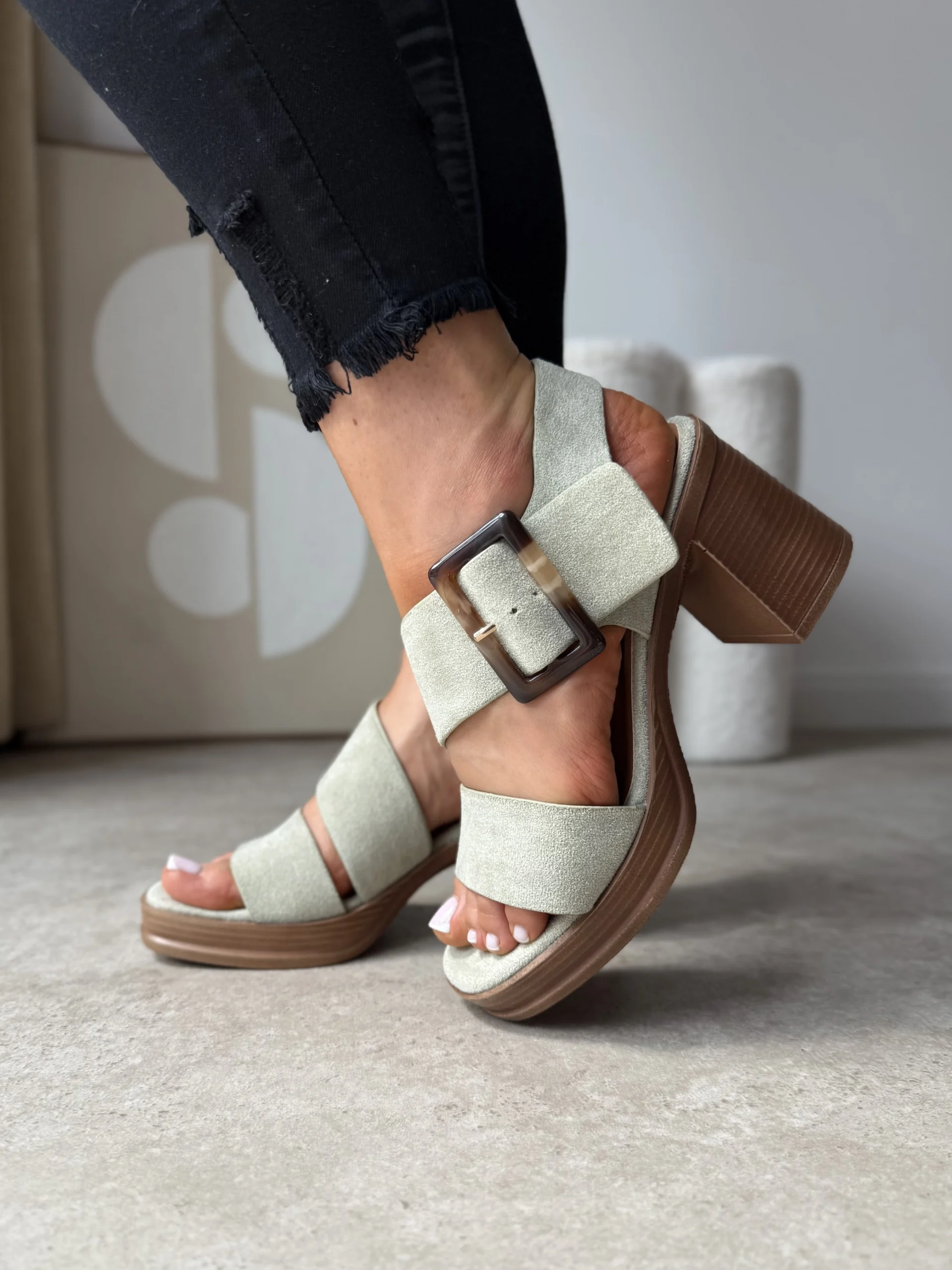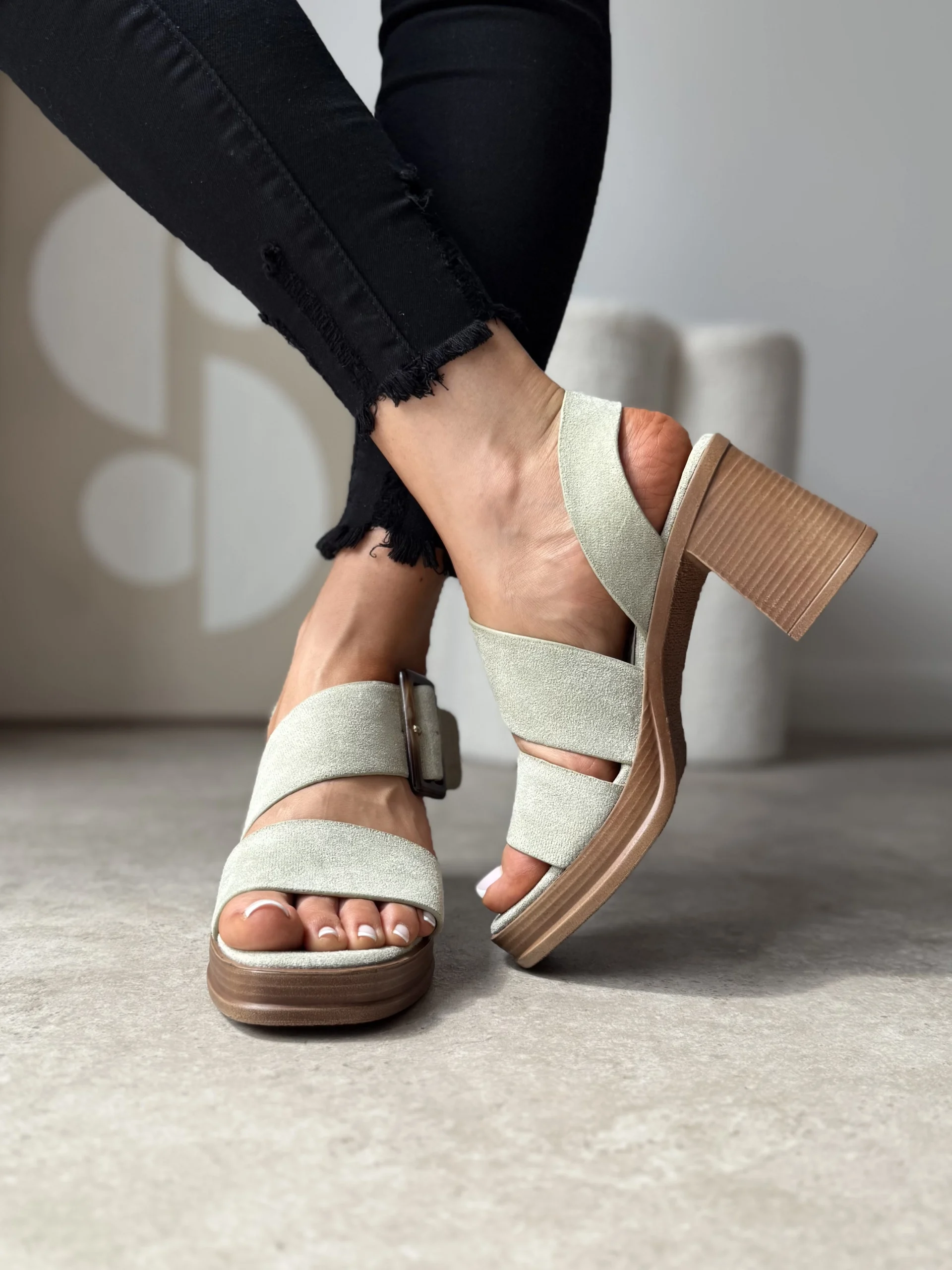 Pistacjowe sandały na słupku LULA 89 to doskonałe połączenie stylu i komfortu. Ich pastelowy kolor, solidna forma oraz lekkość sprawiają, że będą Twoim ulubionym wyborem na wiosnę i lato.