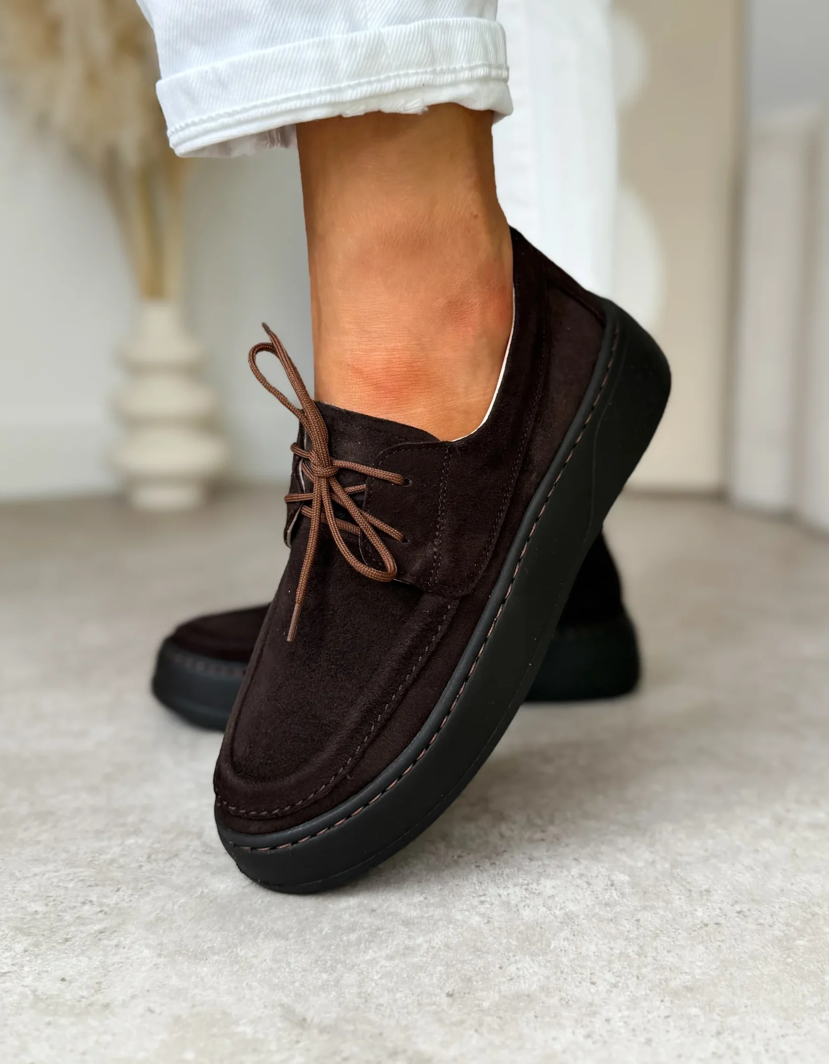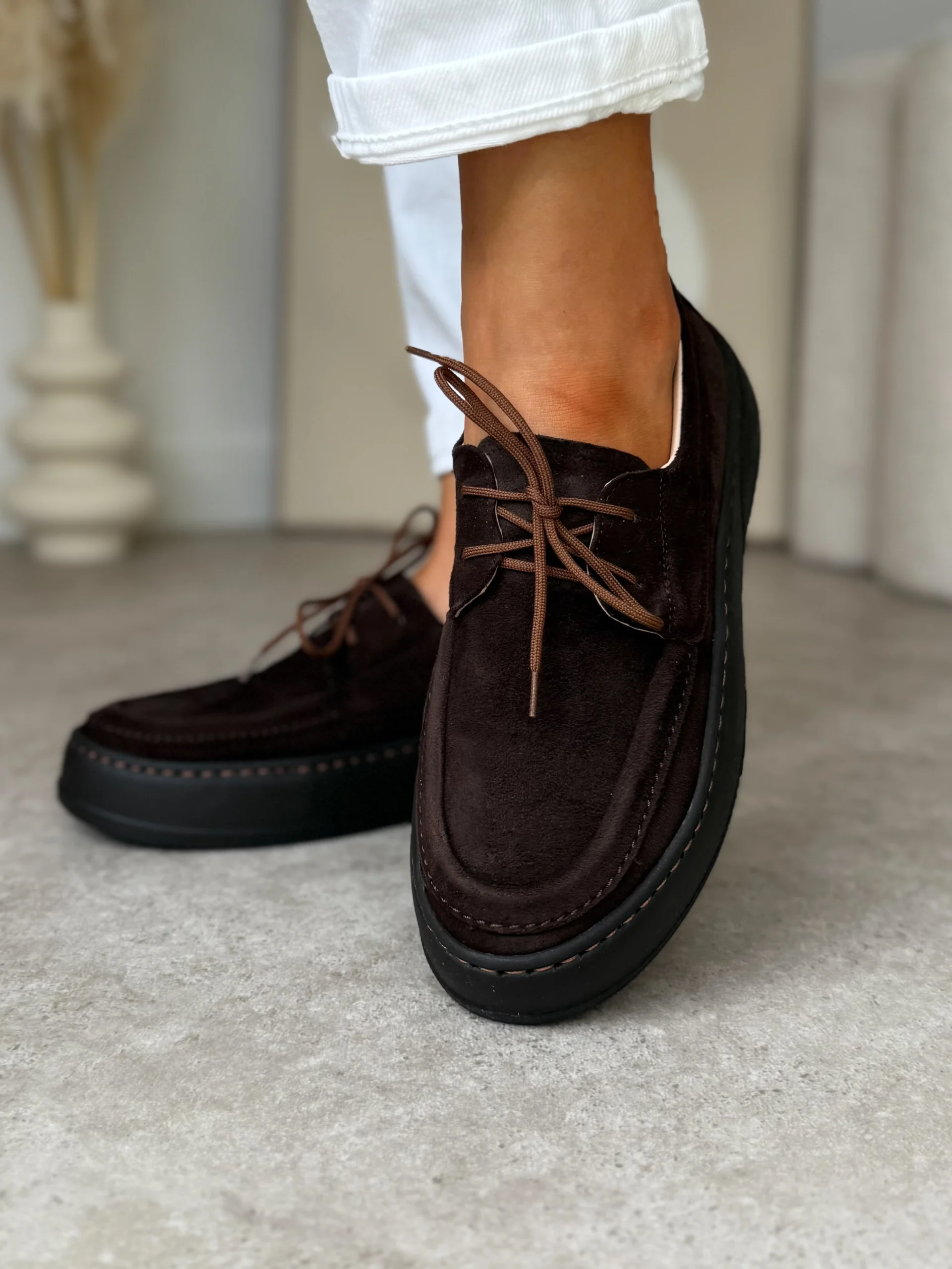 Te półbuty skórzane damskie wyróżniają się głębokim odcieniem brązu, który świetnie komponuje się z codziennymi i eleganckimi stylizacjami. Podeszwa jest lekka, a jednocześnie stabilna. Co więcej, zapewnia amortyzację przy każdym kroku. Dzięki temu buty sprawdzą się zarówno podczas długiego dnia w pracy, jak i spaceru po mieście.