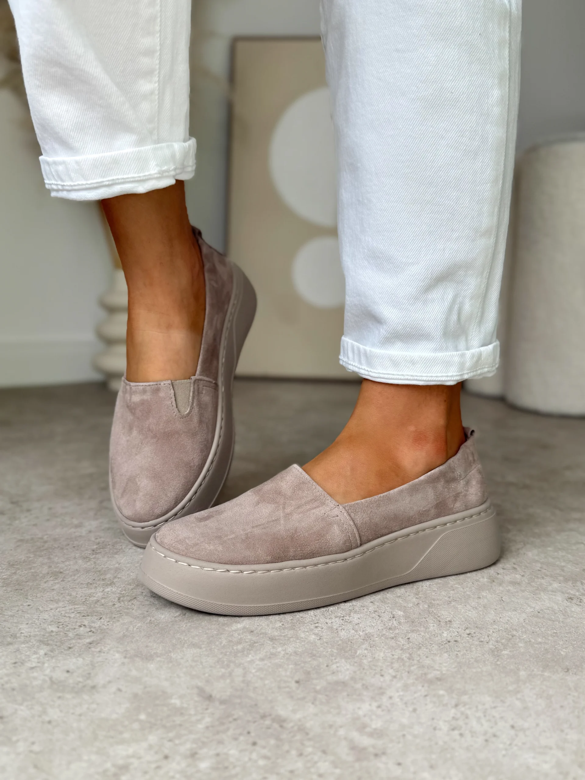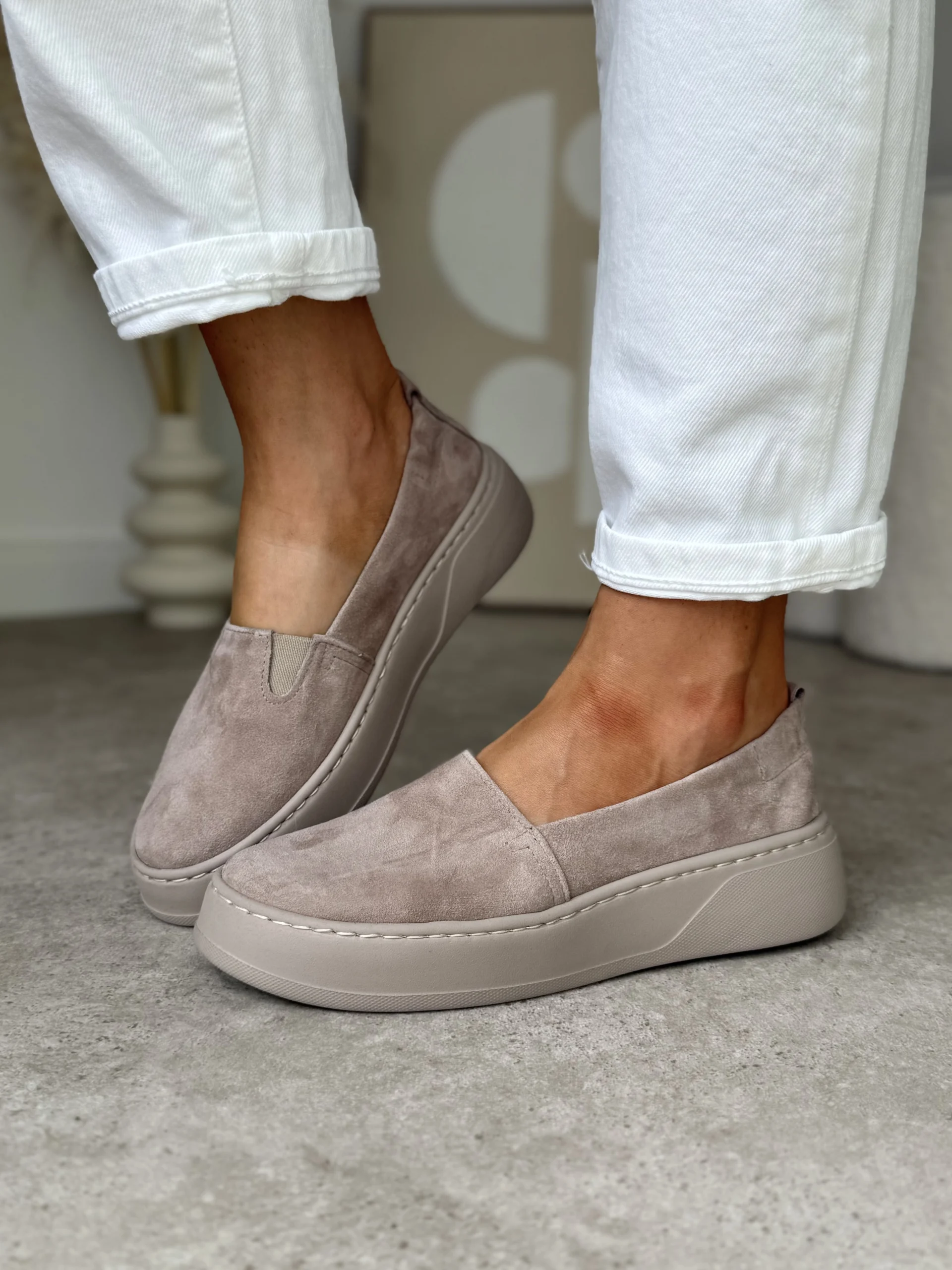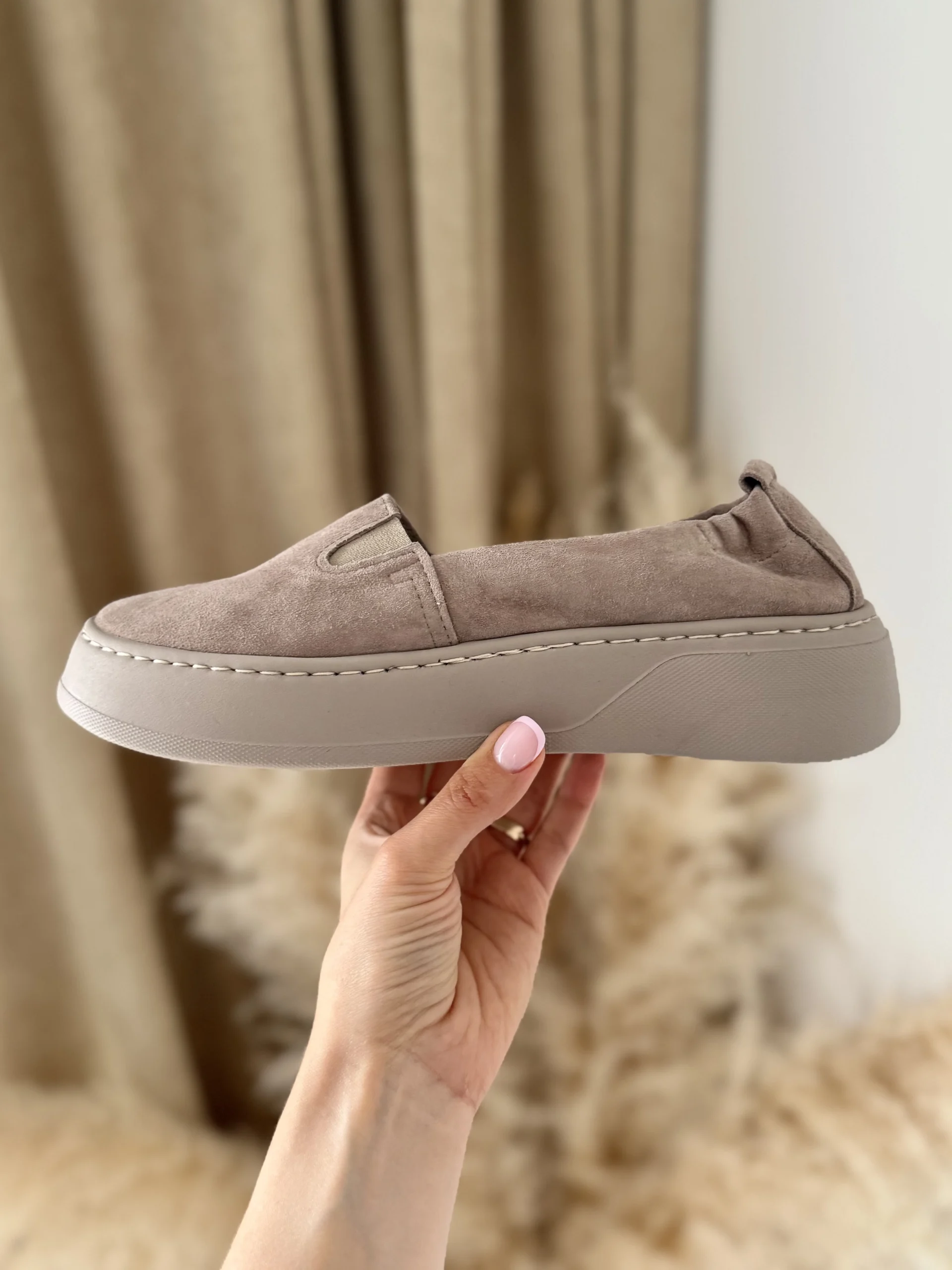 Kolor taupe to połączenie beżu i szarości, które pasuje praktycznie do wszystkiego. Slip’ony w tym odcieniu można nosić do jasnych jeansów, klasycznych spodni czy sukienek. W efekcie są one uniwersalne i ponadczasowe. Co ważne, taki kolor dodaje stylizacji elegancji, a jednocześnie nie przytłacza, dlatego świetnie uzupełnia garderobę każdej kobiety.