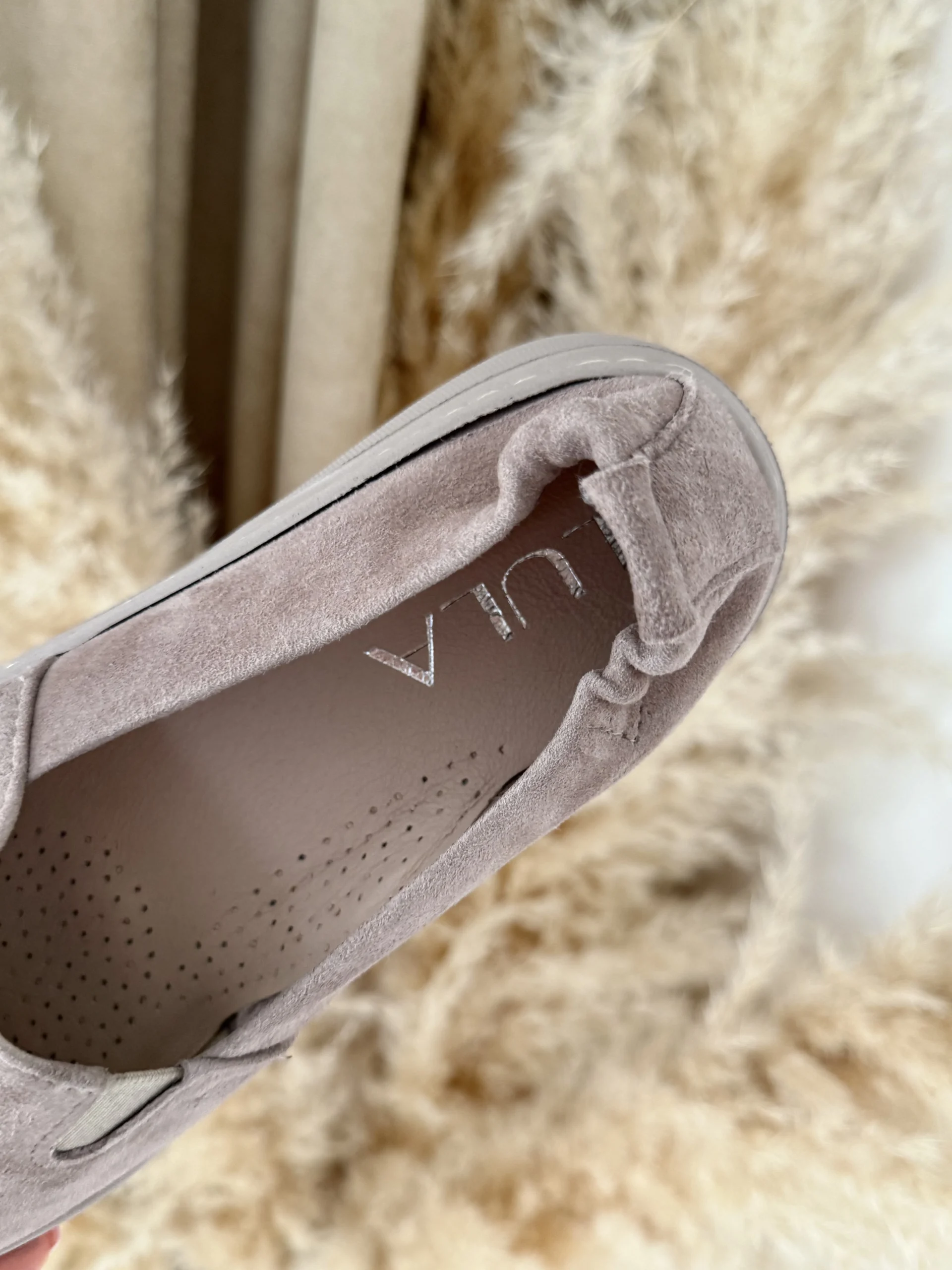 Model LULA 114 to połączenie wygody i elegancji, dlatego sprawdzi się zarówno na co dzień, jak i podczas wyjątkowych okazji. Te skórzane slip’ony damskie wykonano w polskiej manufakturze z naturalnej skóry welurowej (kozina), co zapewnia nie tylko trwałość, ale również lekkość i miękkość. Już od pierwszego kroku można poczuć różnicę, ponieważ buty dopasowują się do stopy i niemal nie czuć ich podczas noszenia.