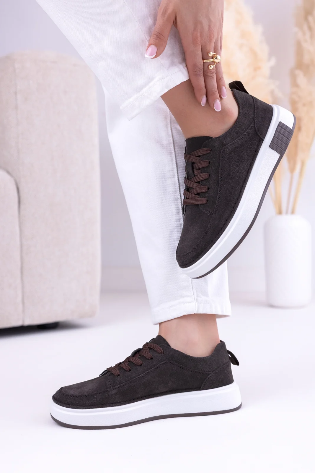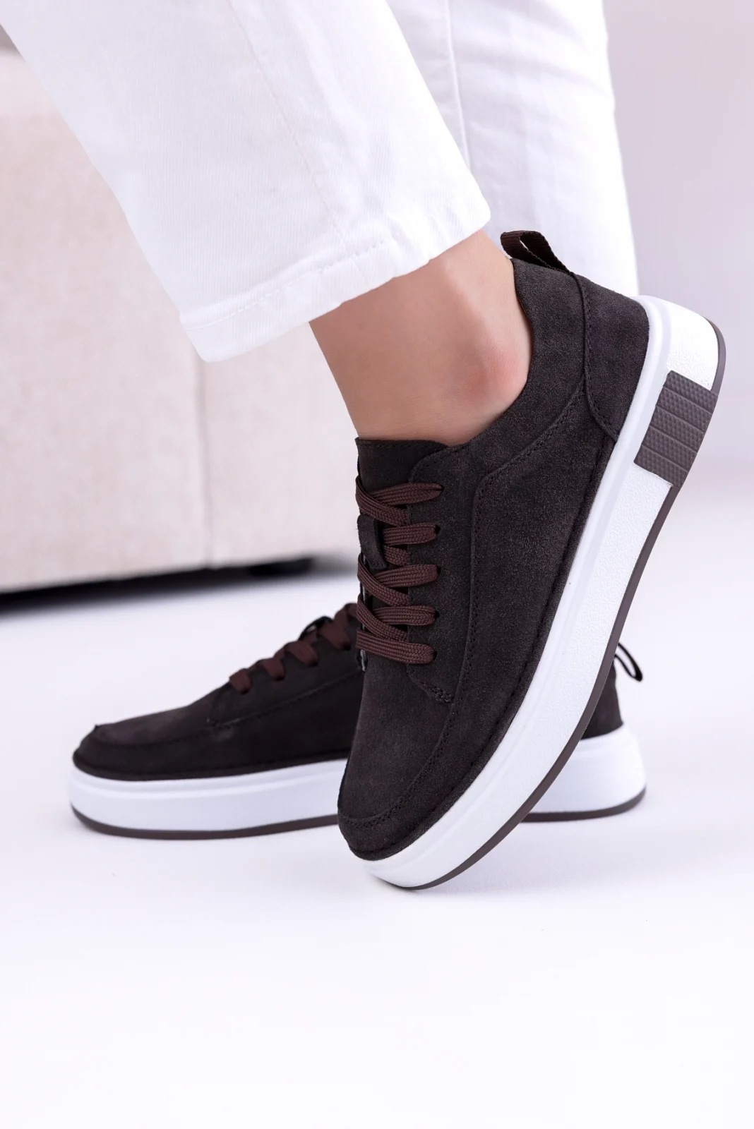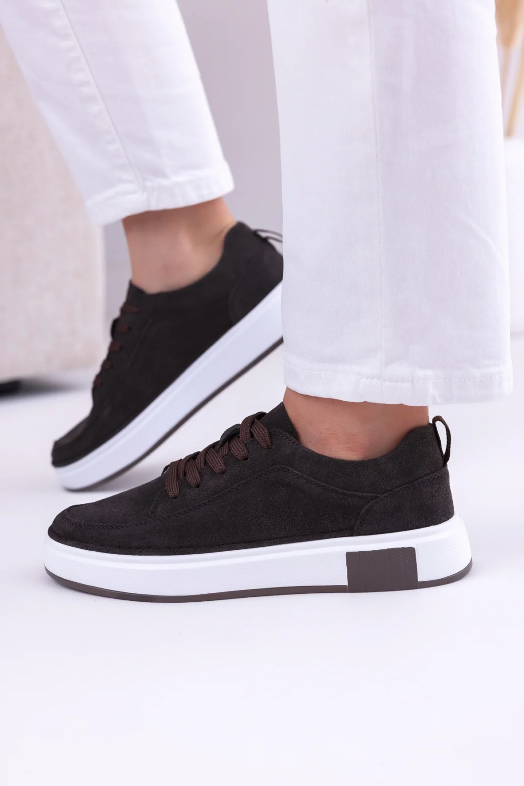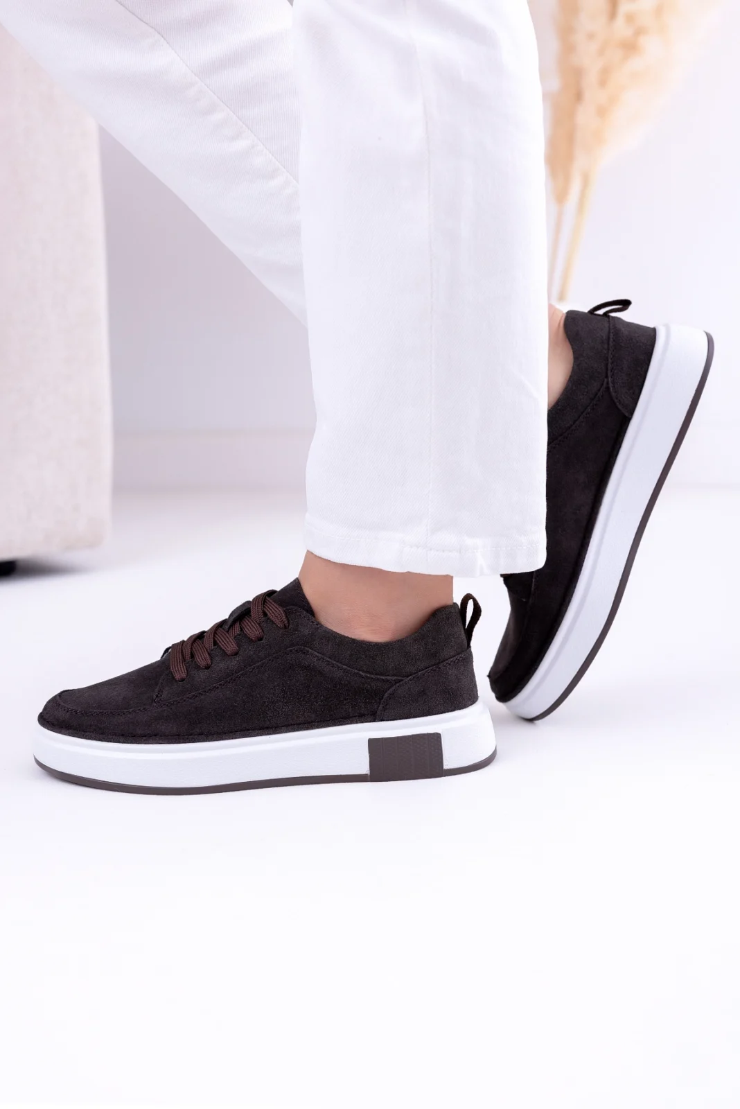 Wykonaliśmy te sneakersy z wysokiej jakości skóry naturalnej zamszowej. Dzięki temu buty świetnie dopasowują się do stopy i wyglądają stylowo.