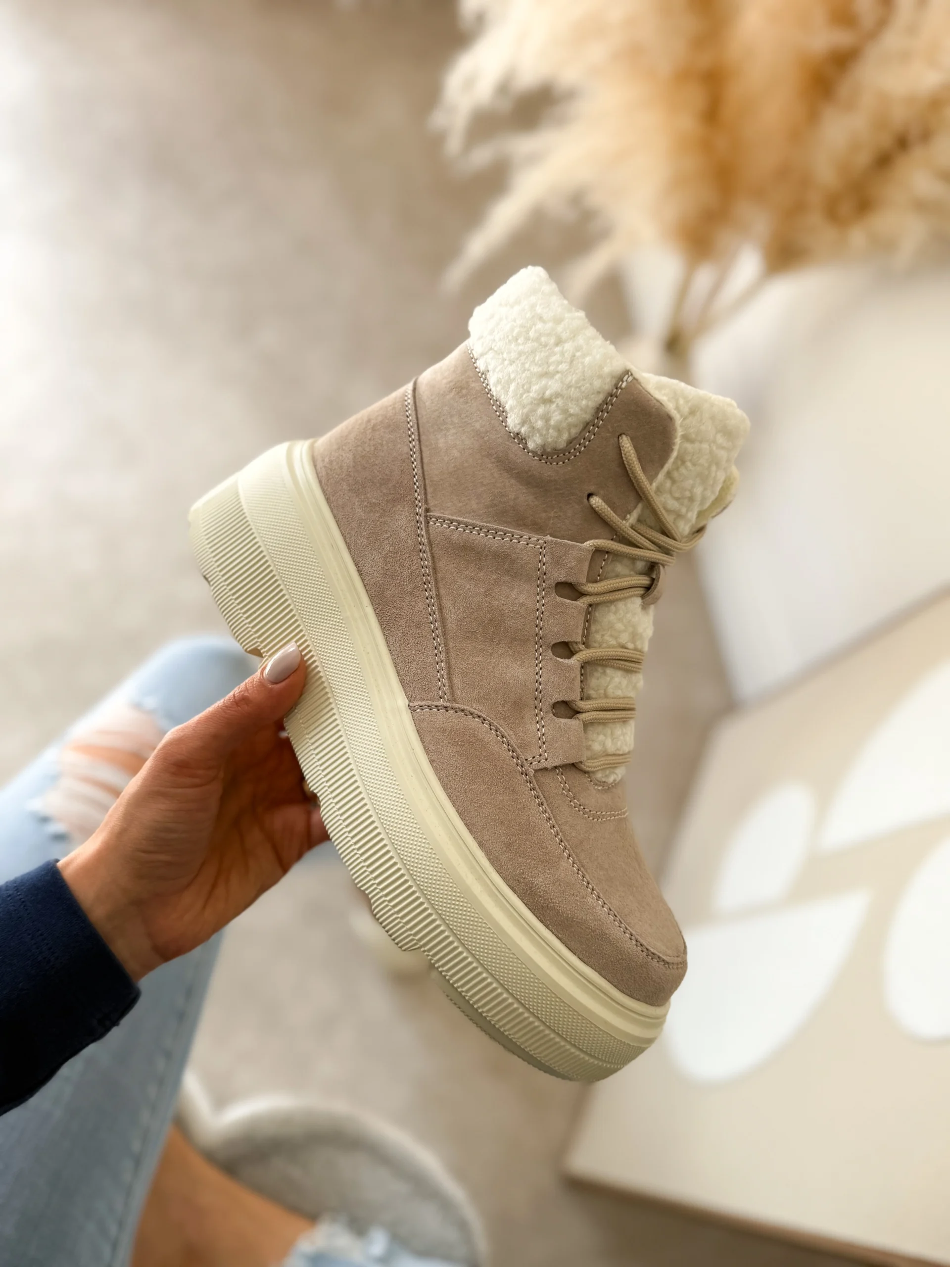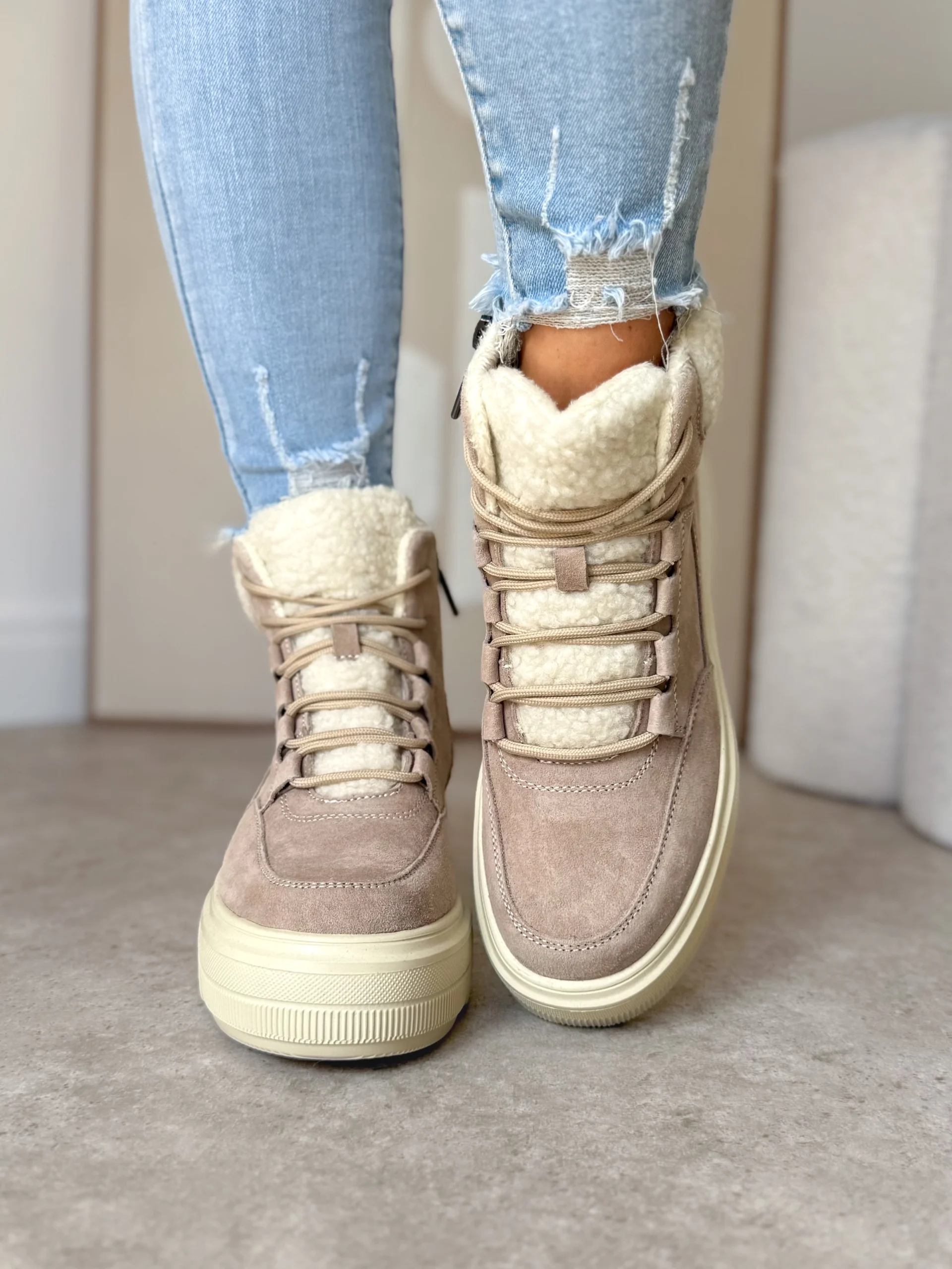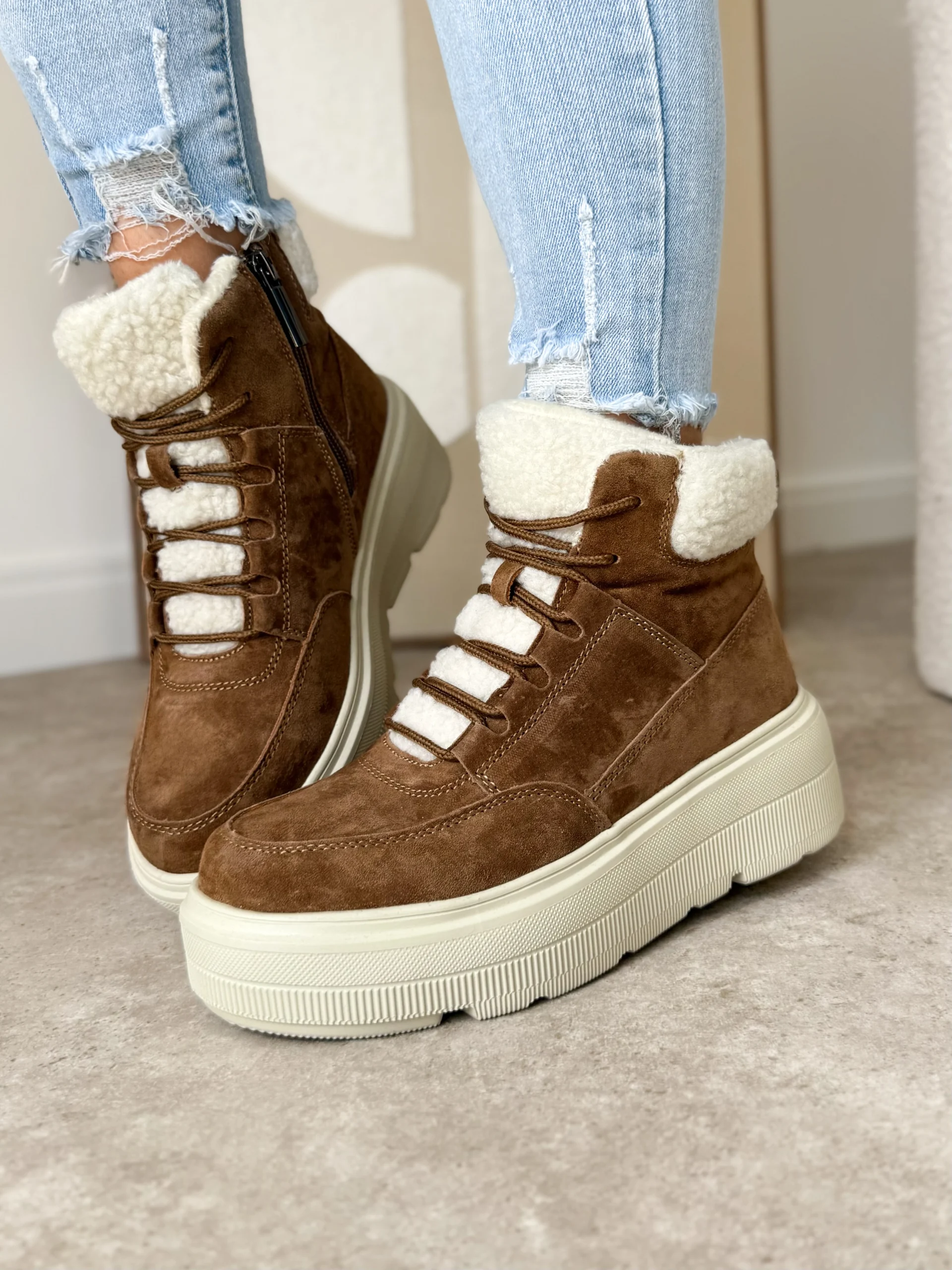 Beżowe zimowe sneakersy LULA 105 to doskonałe połączenie nowoczesnego designu oraz praktycznych rozwiązań. Wykonane zostały z wysokiej jakości skóry naturalnej zamszowej, dzięki czemu wyglądają elegancko i ponadczasowo. Co więcej, delikatny beżowy odcień sprawia, że idealnie komponują się z zimowymi stylizacjami – zarówno tymi codziennymi, jak i bardziej casualowymi.