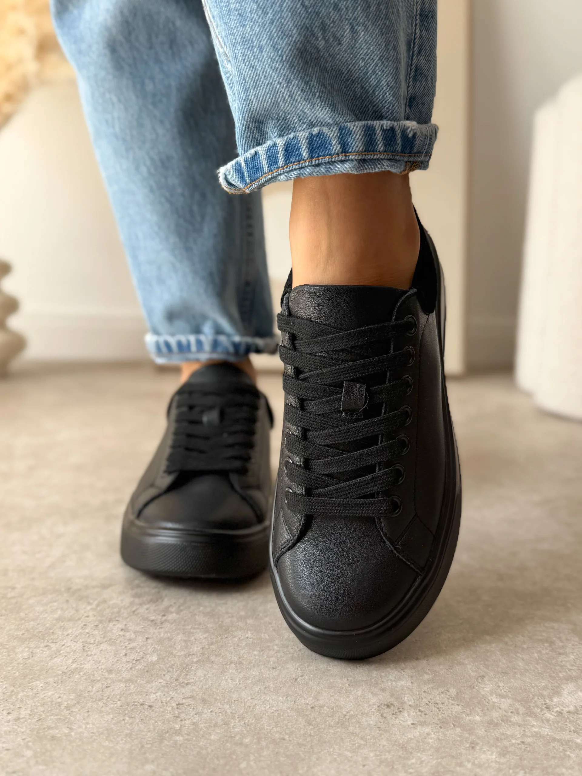 Minimalistyczny wygląd sprawia, że czarne sneakersy skórzane z łatwością dopasujesz do różnych stylizacji. Świetnie wyglądają zarówno z jeansami, legginsami, jak i z casualowymi sukienkami czy spódnicami. To buty, które sprawdzą się przez cały rok i w wielu sytuacjach – od codziennych wyjść po weekendowe spotkania z przyjaciółmi.