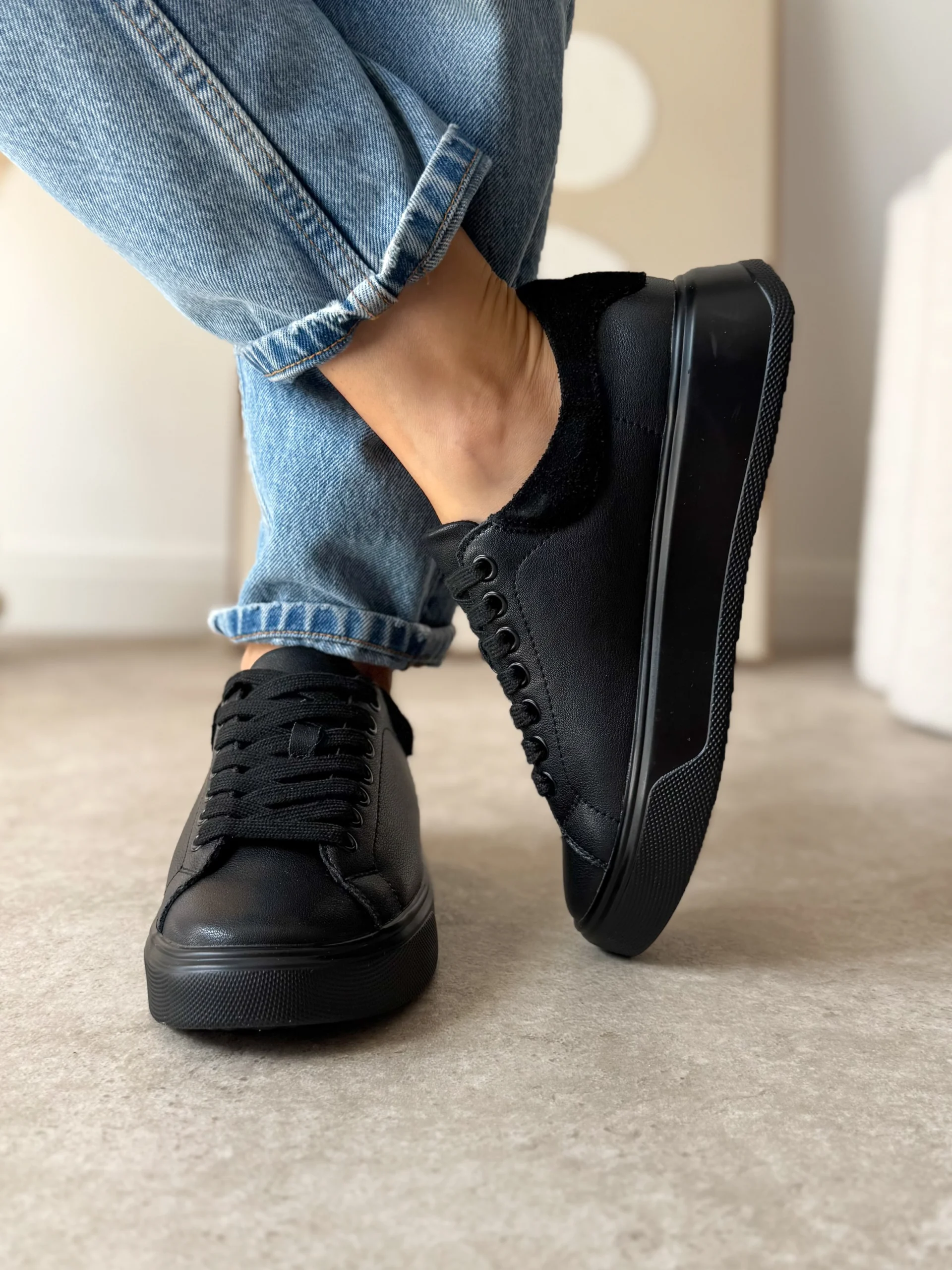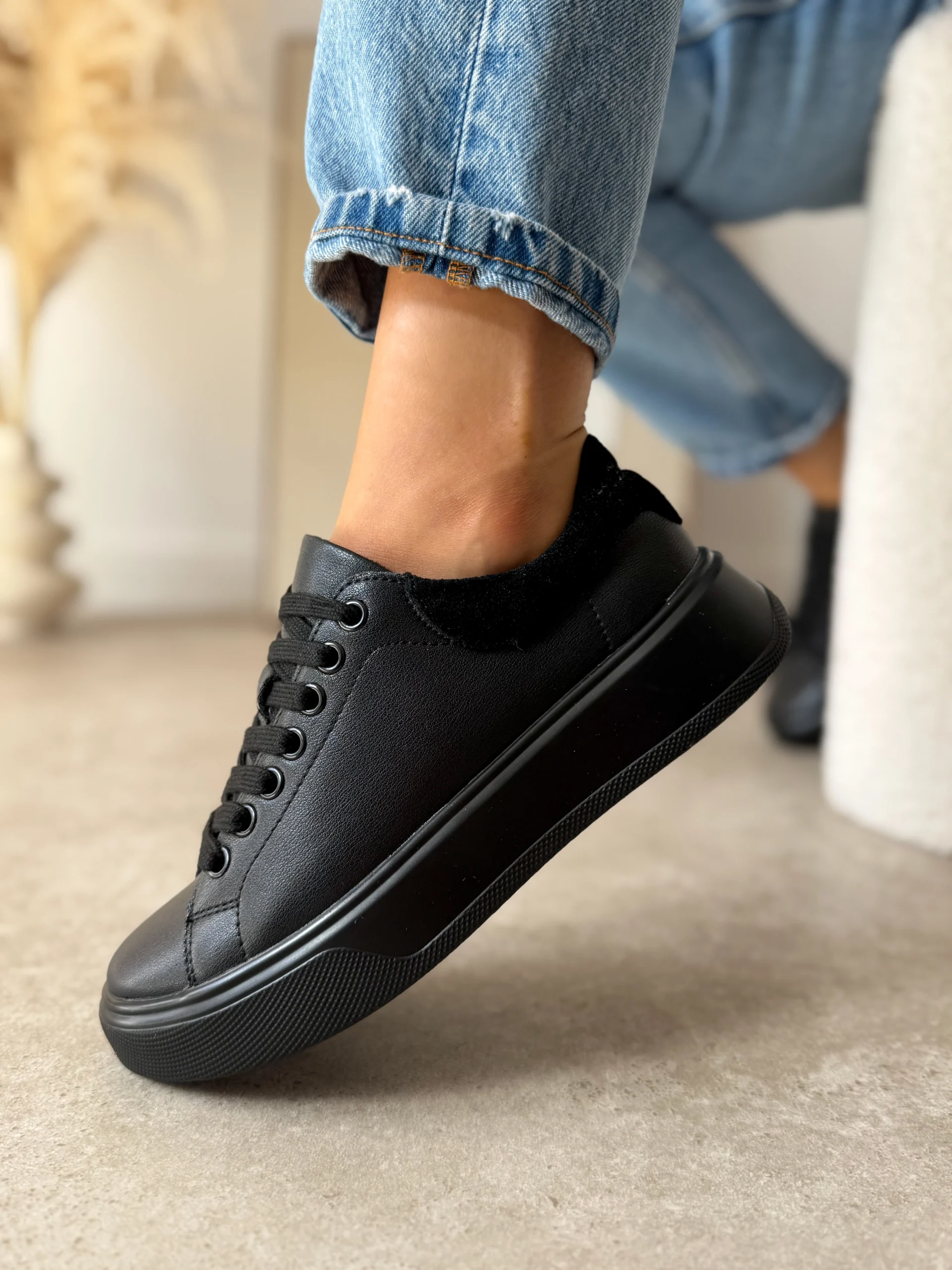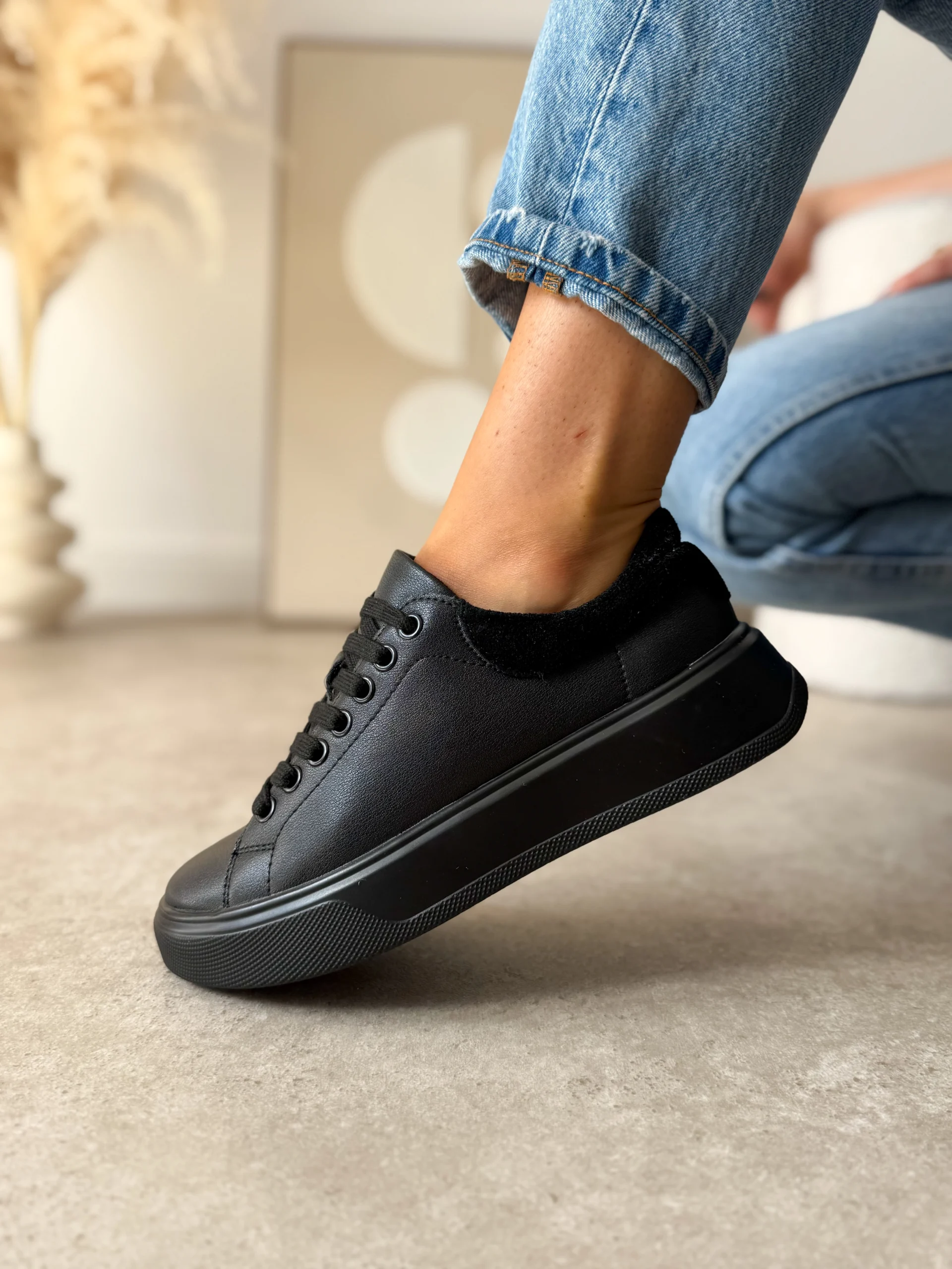 Poza czernią, sneakersy dostępne są także w kolorze beżowym i białym, co pozwala dopasować je do Twojego indywidualnego stylu.