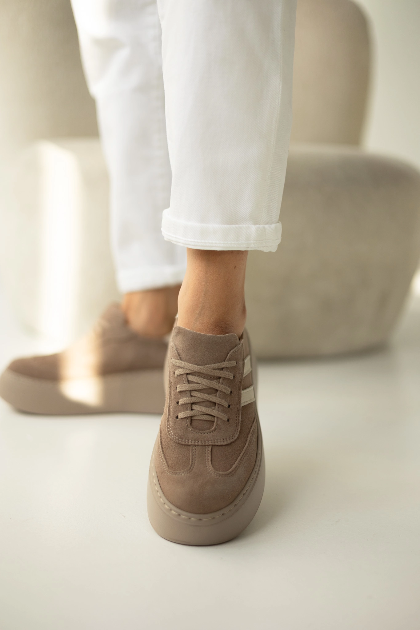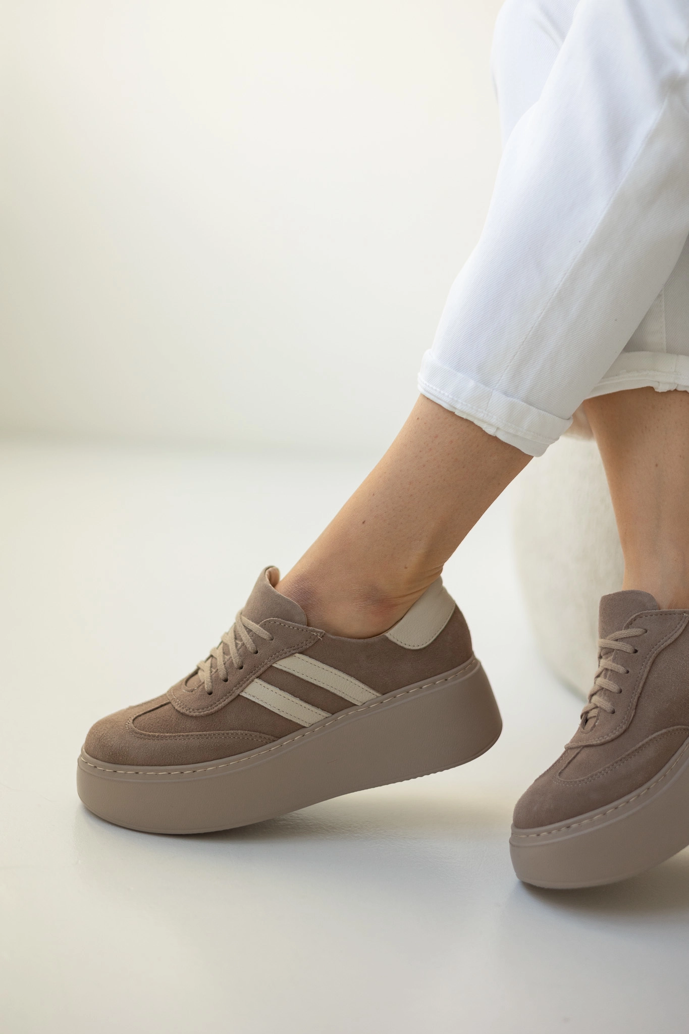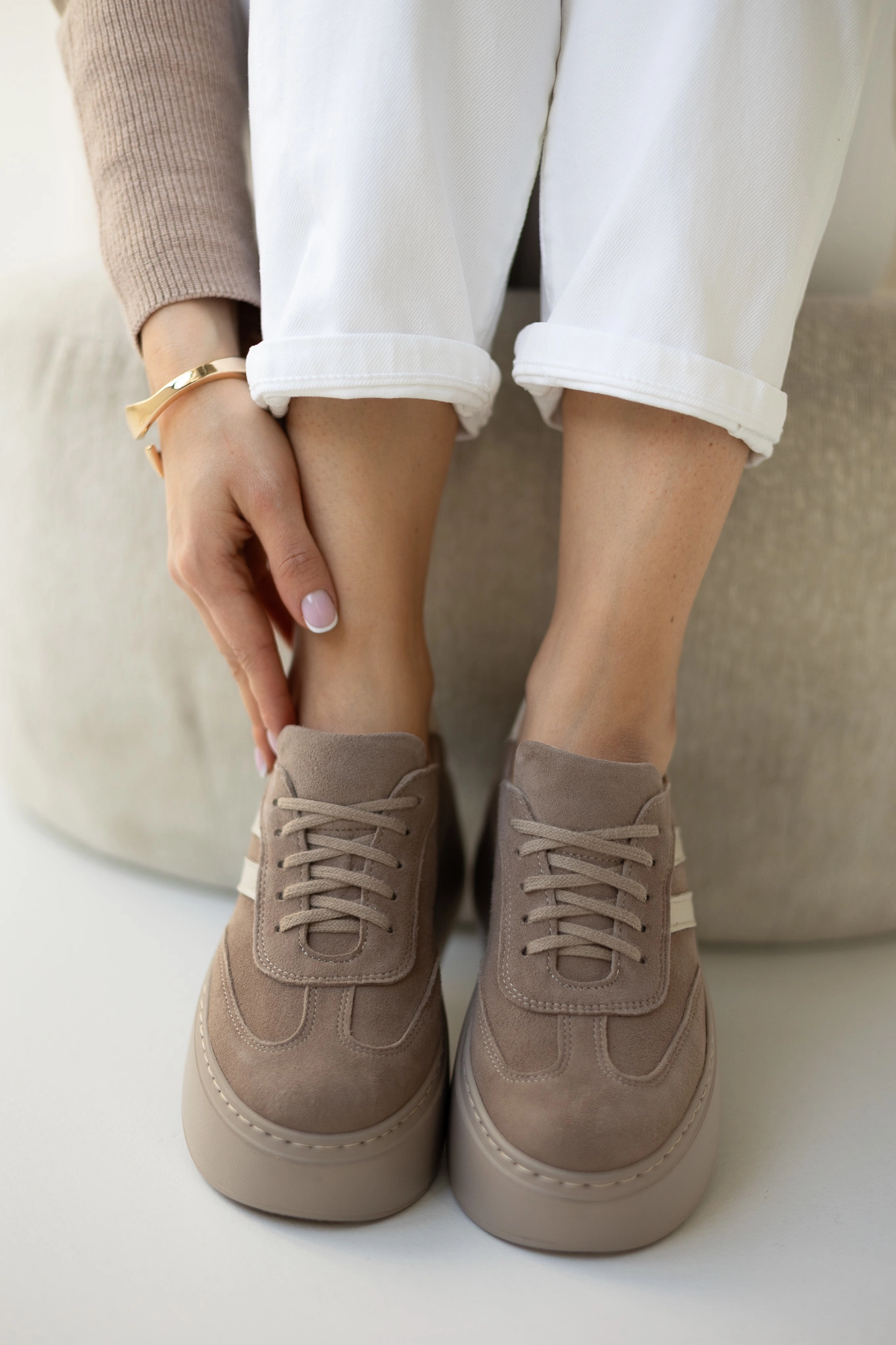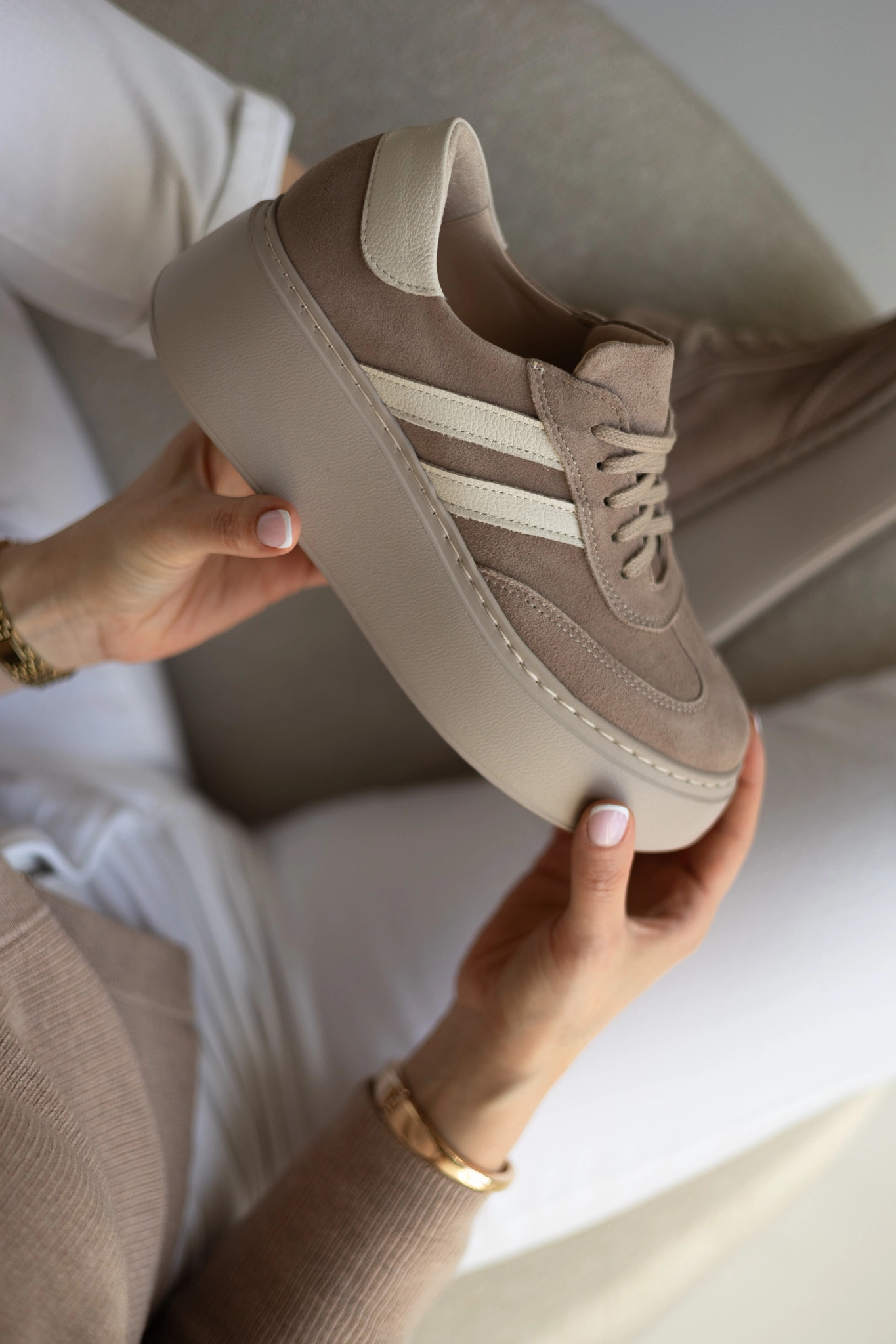 Kolor taupe łączy w sobie szarość, beż i cappuccino, dlatego z łatwością dopasujesz go do większości stylizacji. Świetnie współgra z jeansami, eleganckimi spodniami czy zwiewnymi sukienkami. Co więcej, neutralny ton sprawia, że sneakersy idealnie wpisują się w minimalistyczne i klasyczne stylizacje.