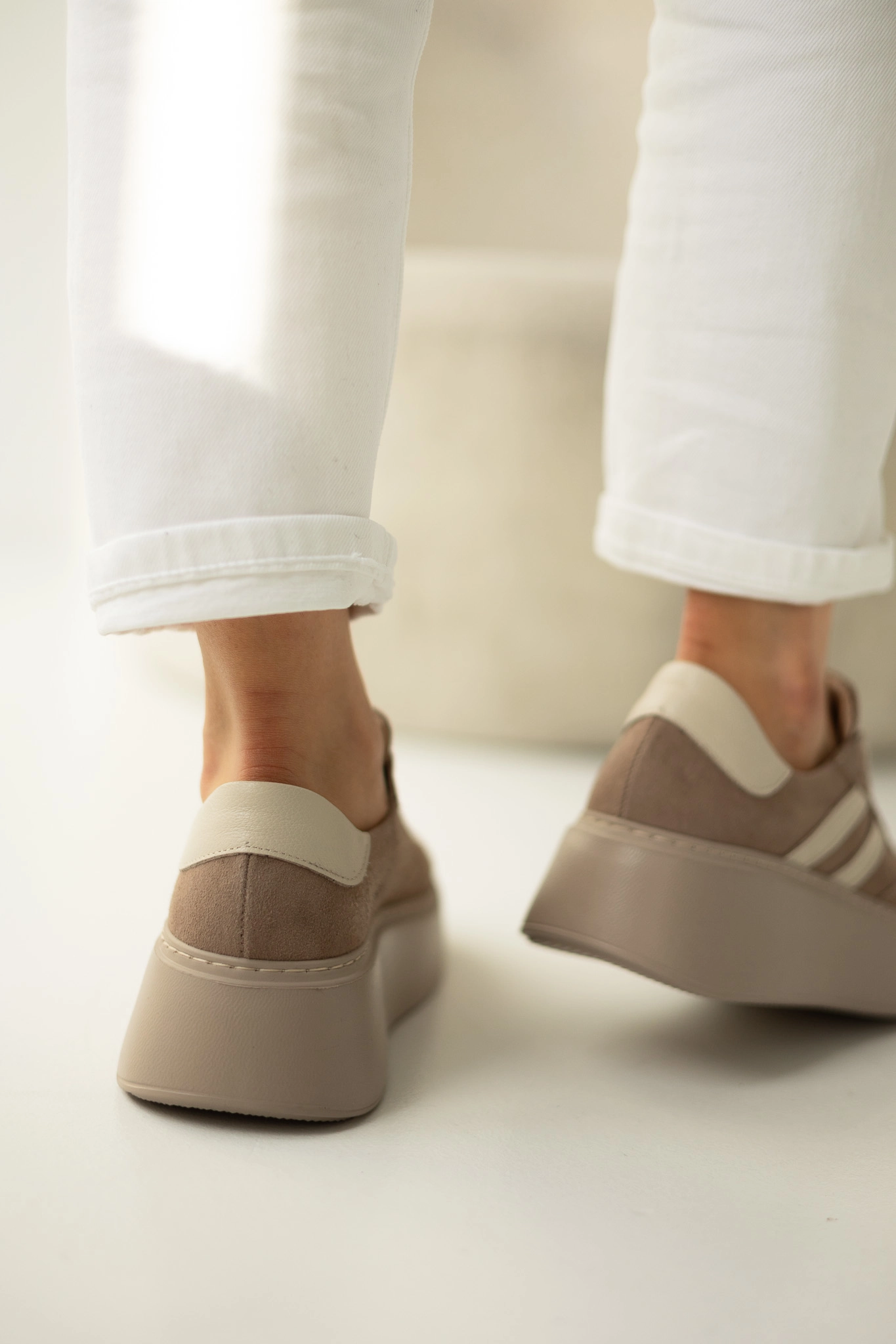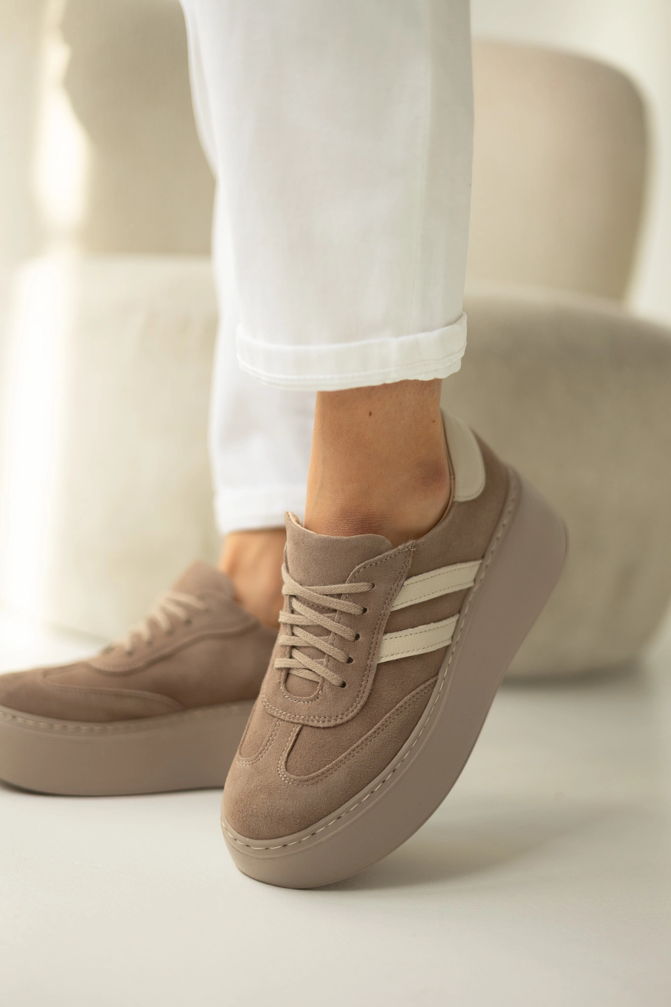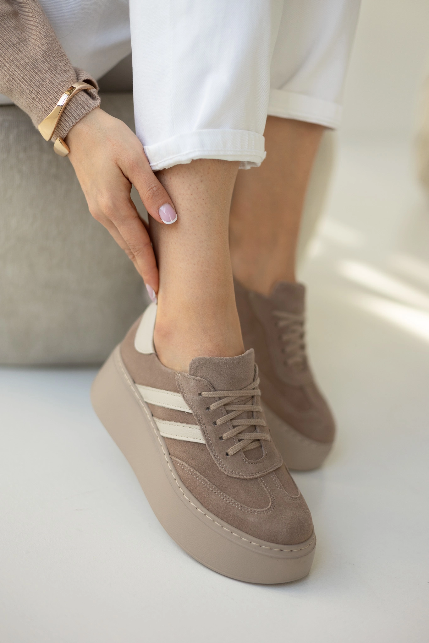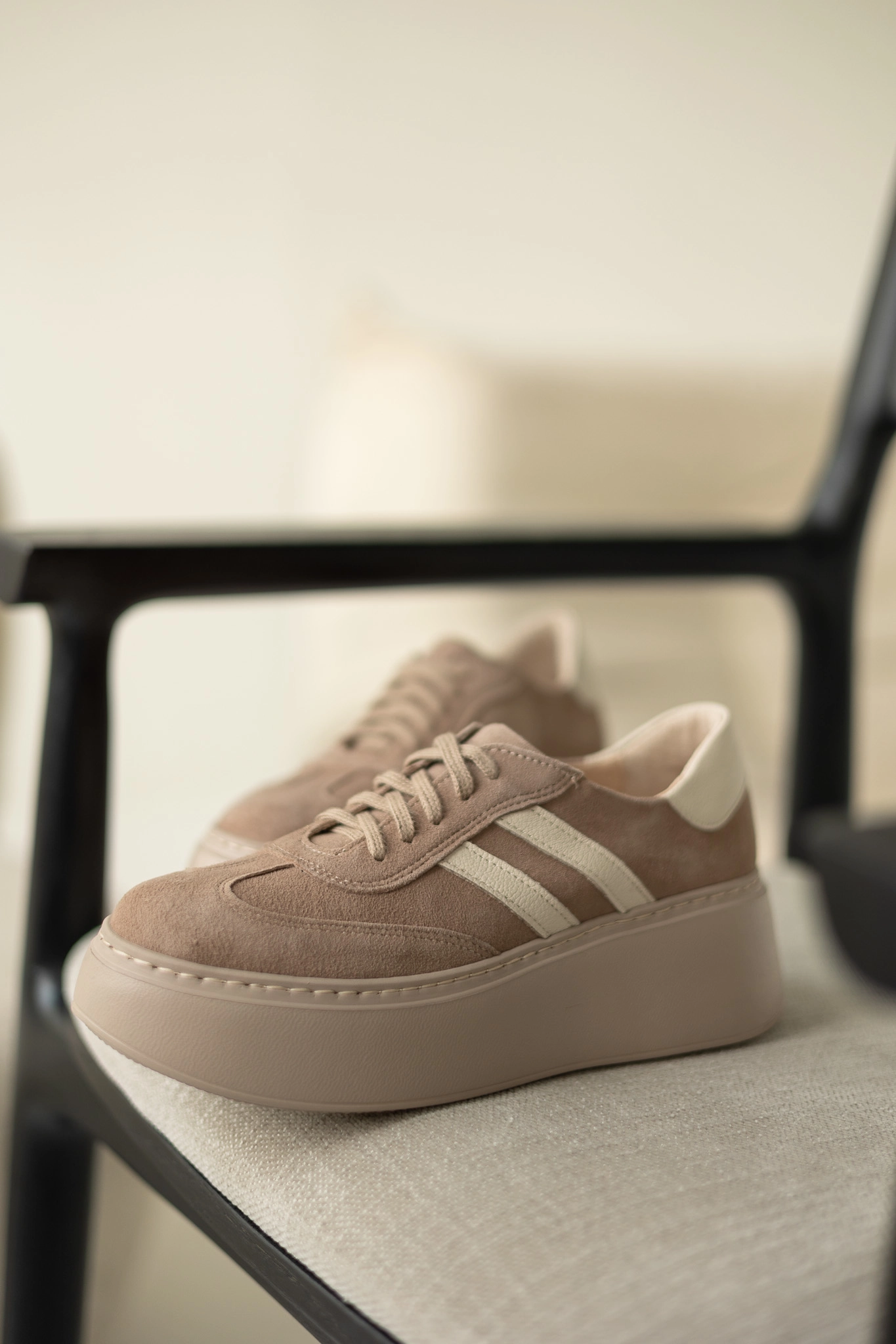 Kolor taupe łączy w sobie szarość, beż i cappuccino, dlatego z łatwością dopasujesz go do większości stylizacji. Świetnie współgra z jeansami, eleganckimi spodniami czy zwiewnymi sukienkami. Co więcej, neutralny ton sprawia, że sneakersy idealnie wpisują się w minimalistyczne i klasyczne stylizacje.