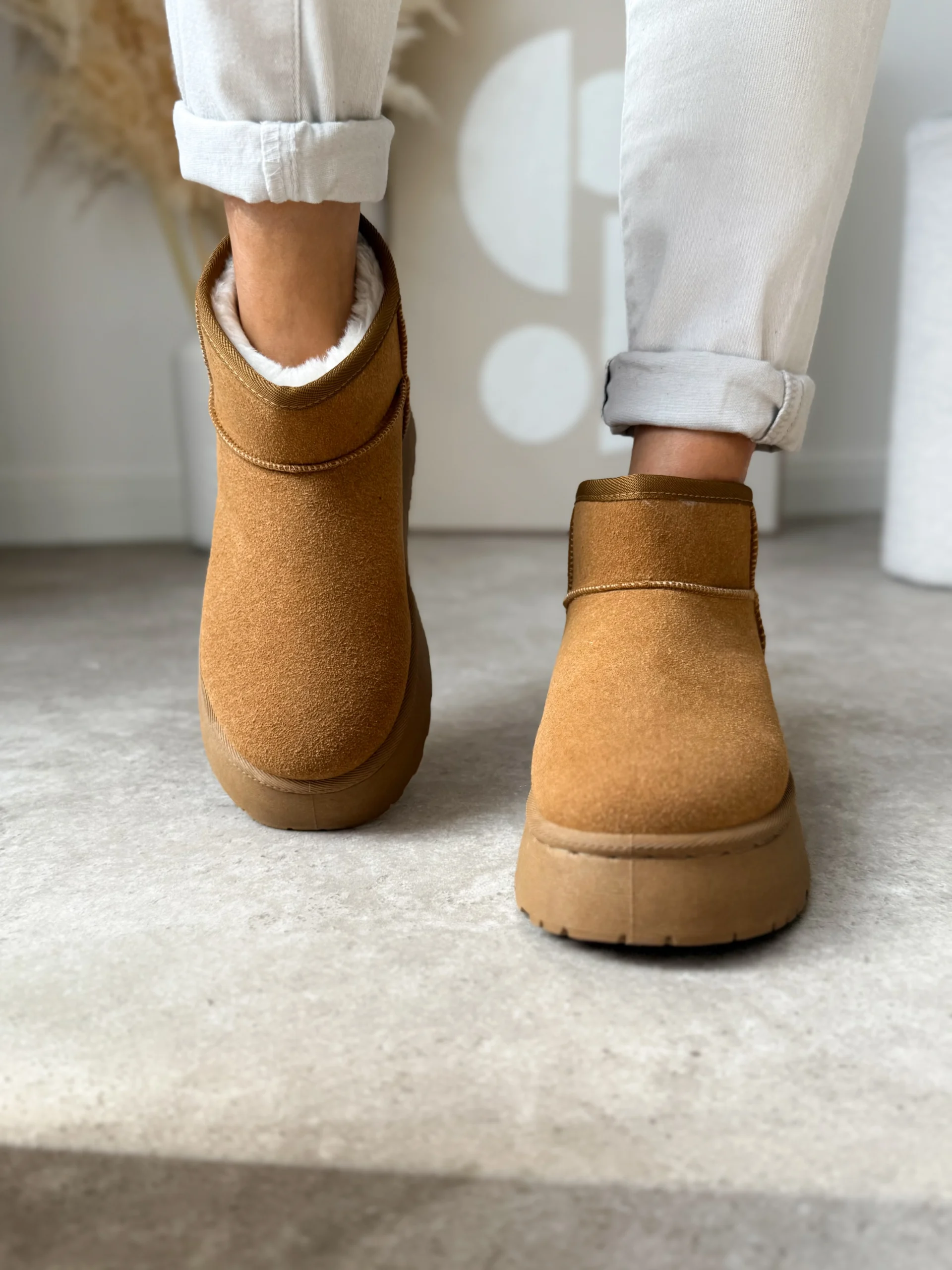 Śniegowce zostały osadzone na grubej platformie o wysokości 5 cm, która świetnie izoluje stopy od zimnego podłoża i dodaje kilku centymetrów wzrostu. Antypoślizgowa podeszwa gwarantuje stabilność i bezpieczeństwo nawet na śliskich nawierzchniach. Dzięki temu buty sprawdzają się idealnie w miejskich warunkach oraz w czasie zimowych spacerów.