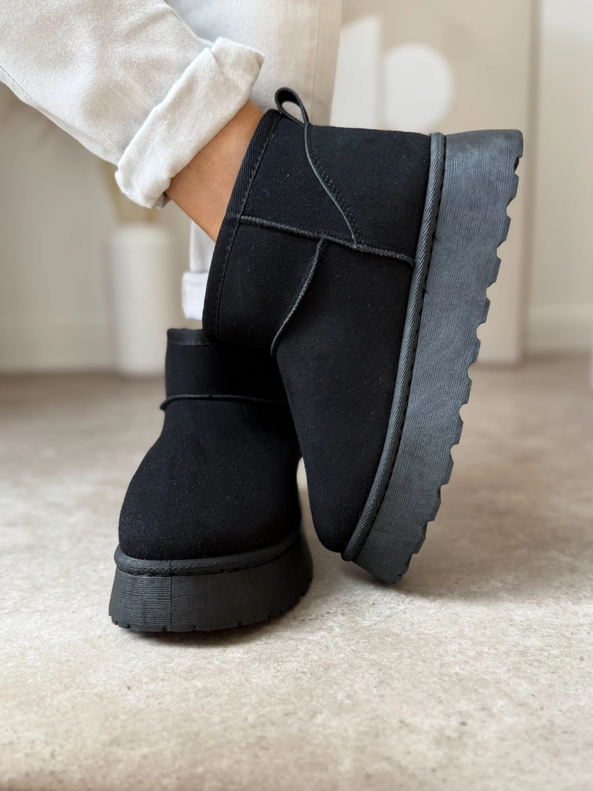 Model osadzony jest na grubej platformie o wysokości 5 cm, co nie tylko dodaje centymetrów, ale również zapewnia doskonałą izolację od zimnego podłoża. Podeszwa wykonana z trwałego tworzywa posiada właściwości antypoślizgowe, dzięki czemu buty sprawdzają się także podczas spacerów po oblodzonych chodnikach.