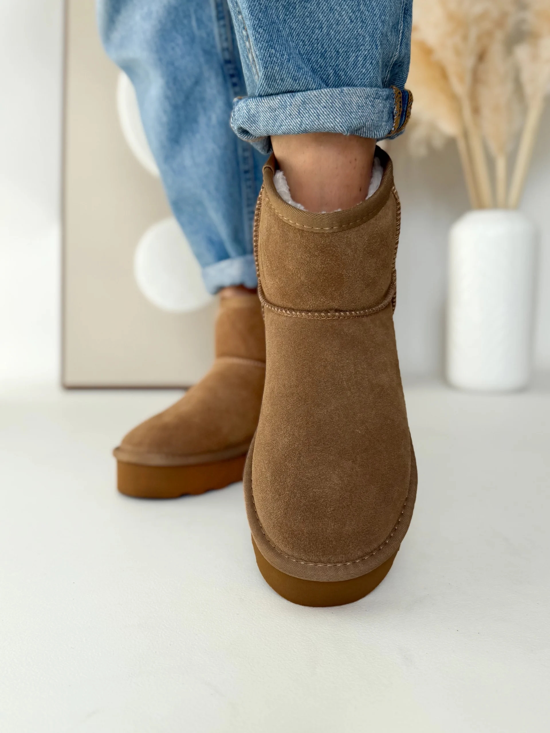 Model LULA 155 w kolorze camel to idealne połączenie klasyki i nowoczesności. Te camel śniegowce damskie wykonano z najwyższej jakości naturalnej skóry, dlatego są niezwykle miękkie, wygodne i trwałe. Ciepły, karmelowy odcień dodaje im przytulności, dzięki czemu świetnie wpisują się w zimowe trendy. To model, który każdej stylizacji doda naturalnego uroku – niezależnie od tego, czy wybierasz jeansy, legginsy, czy długą kurtkę puchową.