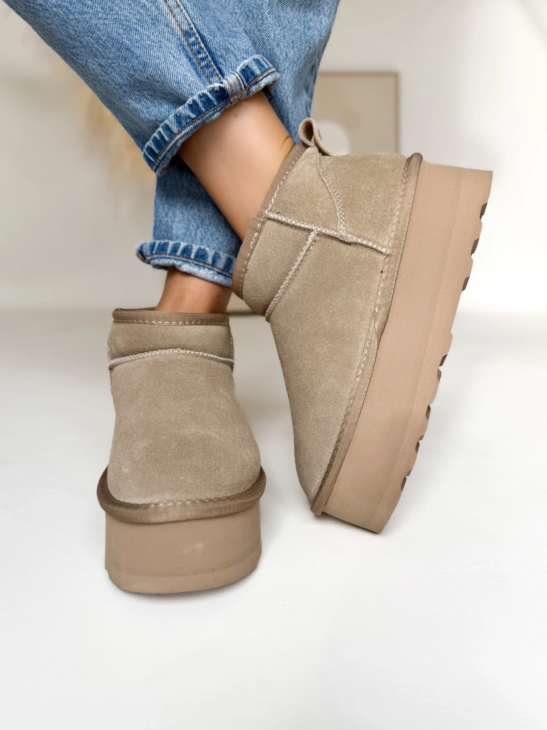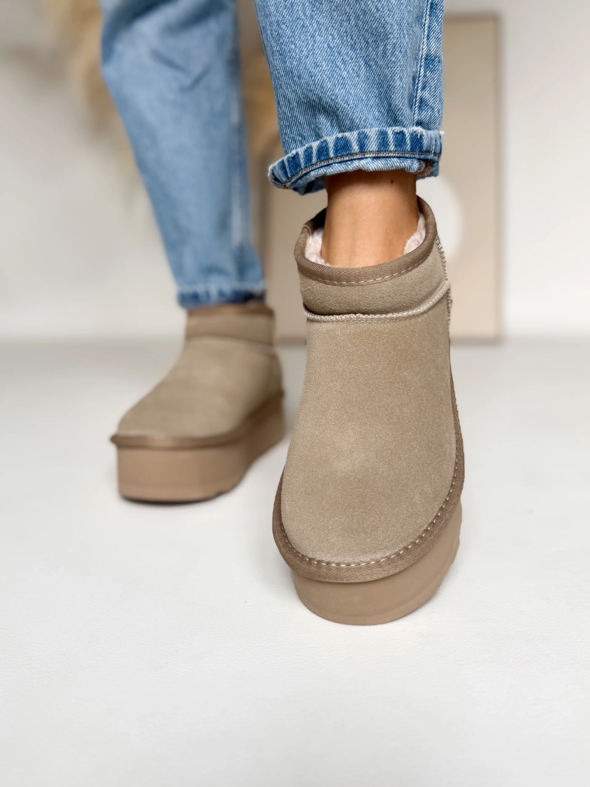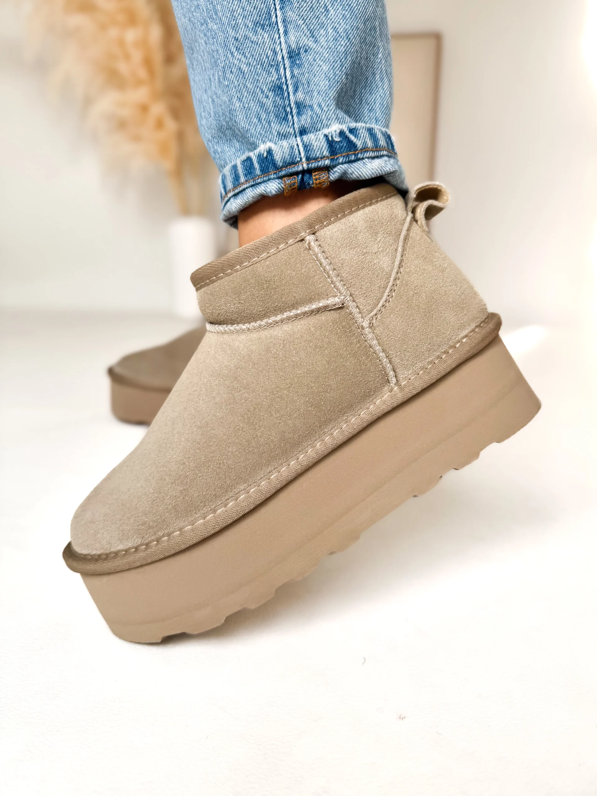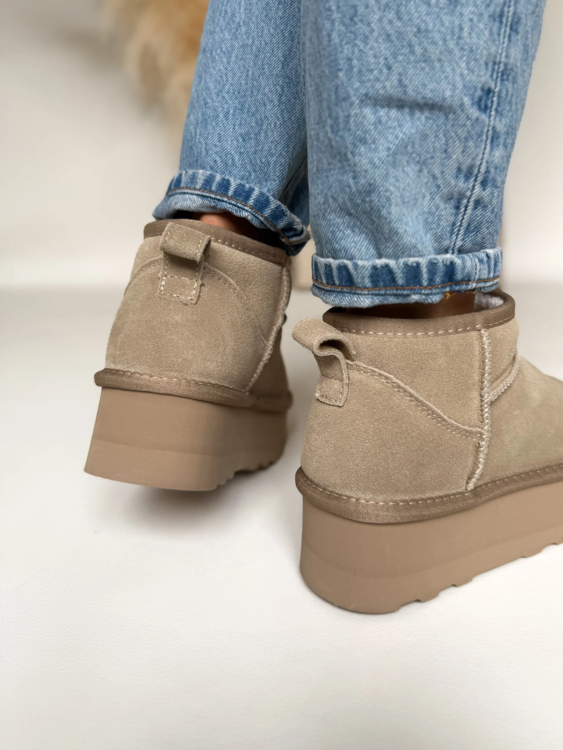 Wnętrze butów zostało w całości ocieplone puszystym futerkiem, dzięki czemu zapewniają przyjemne ciepło nawet podczas mroźnych dni. Co więcej, zastosowana podeszwa o wysokości 5 cm nie tylko dodaje kilku centymetrów wzrostu, ale również świetnie amortyzuje każdy krok. Dzięki temu chodzenie w nich jest niezwykle komfortowe, nawet przez wiele godzin.