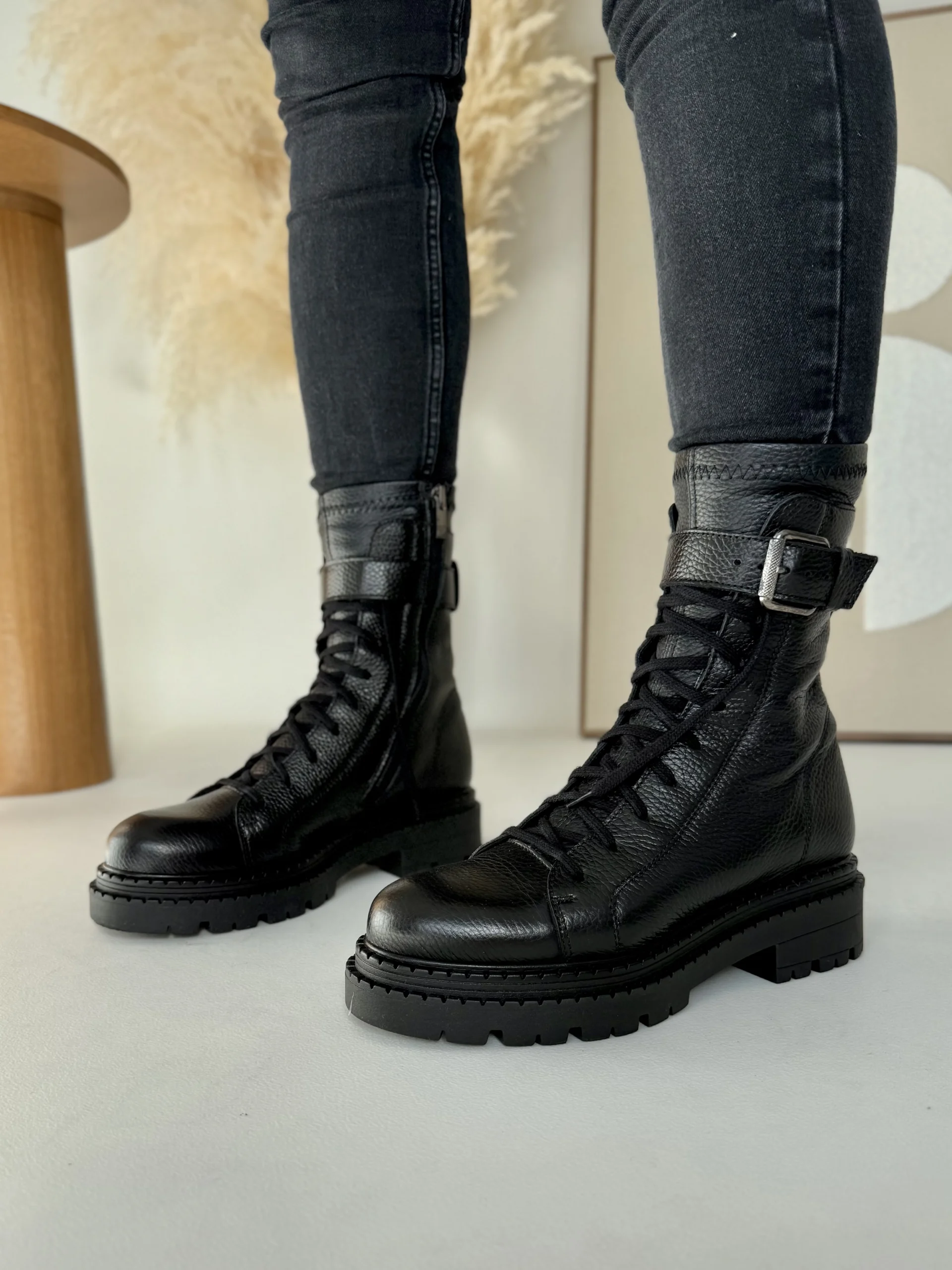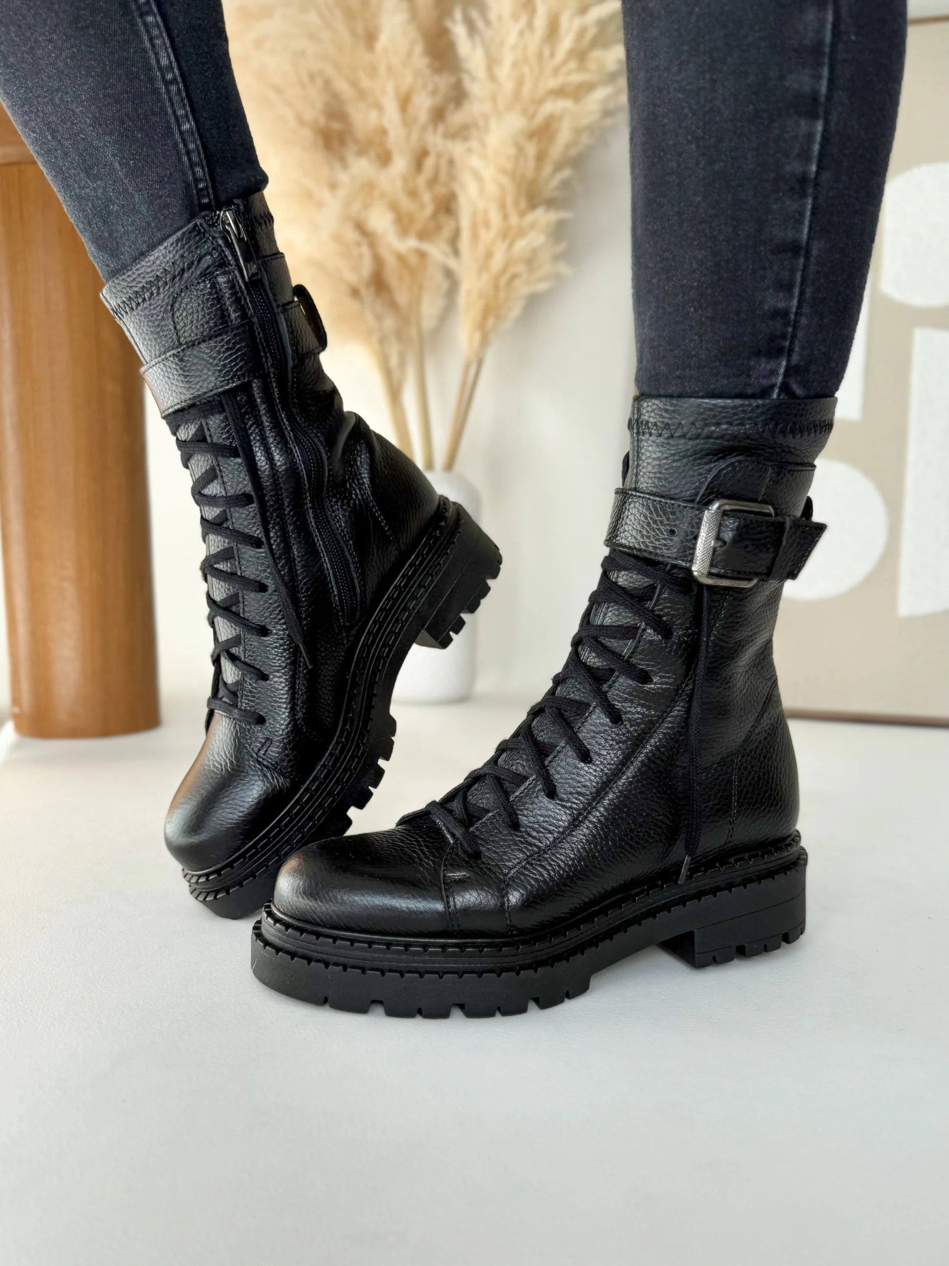 Model LULA 141 to wyjątkowe trapery skórzane na obcasie, które łączą elegancję z praktycznością. Dzięki swojej uniwersalnej formie doskonale pasują zarówno do codziennych, jak i bardziej eleganckich stylizacji. Co więcej, czarny kolor i klasyczny kształt sprawiają, że buty te nigdy nie wychodzą z mody.